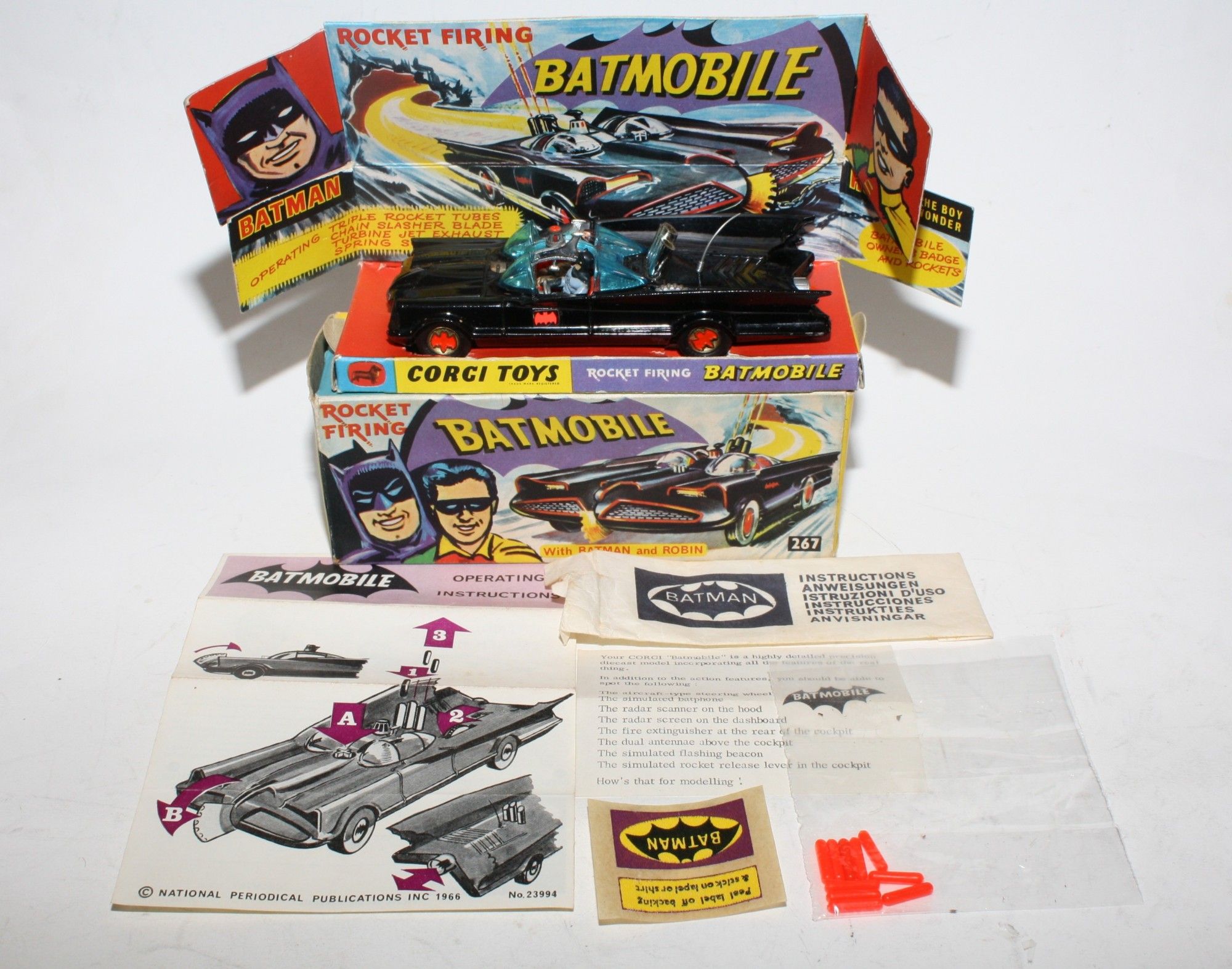 Comes in its original illustrated carded box which is in poor/fair condition, one endflap missing and general wear and creasing. Original inner plinth also with wear and creasing. Please study the photos.