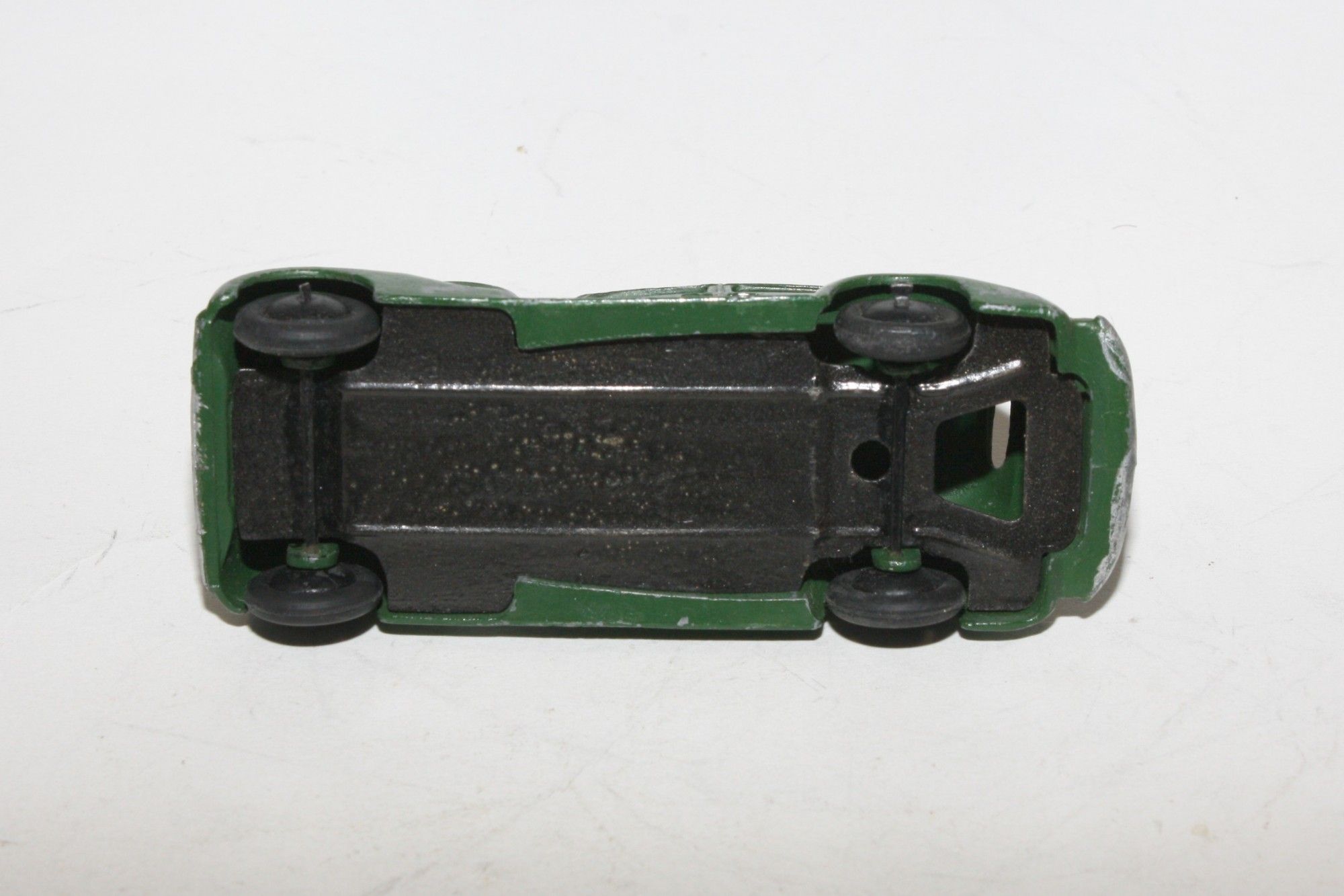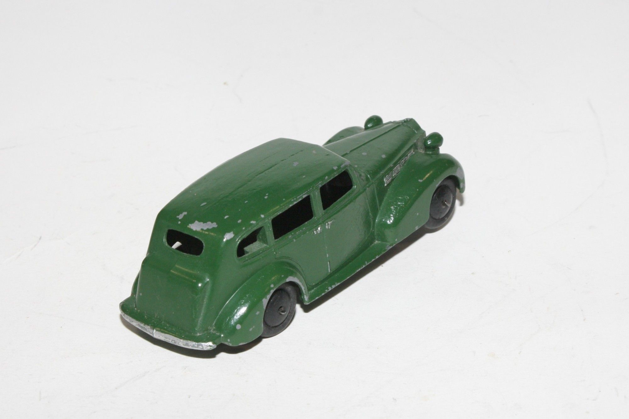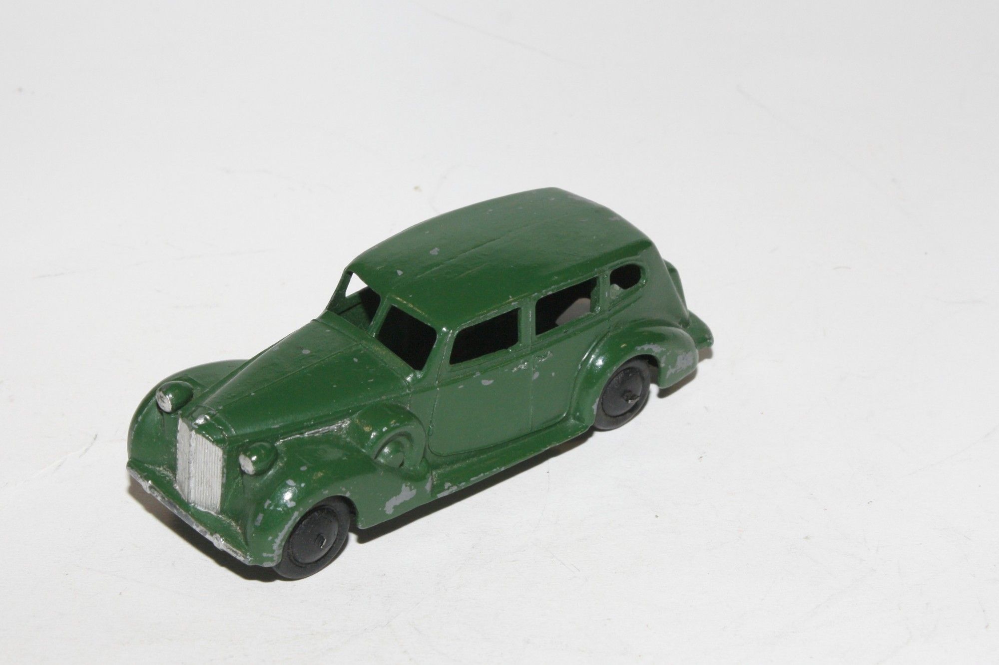 A good example of this very early Dinky. Good paintwork, may have been refinished at some point with a few chips/paint loss, please study photos for exact condition. All good tyres (not original) on smooth hubs, straight axles, headlamps present tin baseplate. Smooth hubs and lacquered would indicate that it dates to prewar (1939-1941) although smooth hubs were introduced again after the war just for 1946. 1947 onwards will be fitted with ridges hubs.