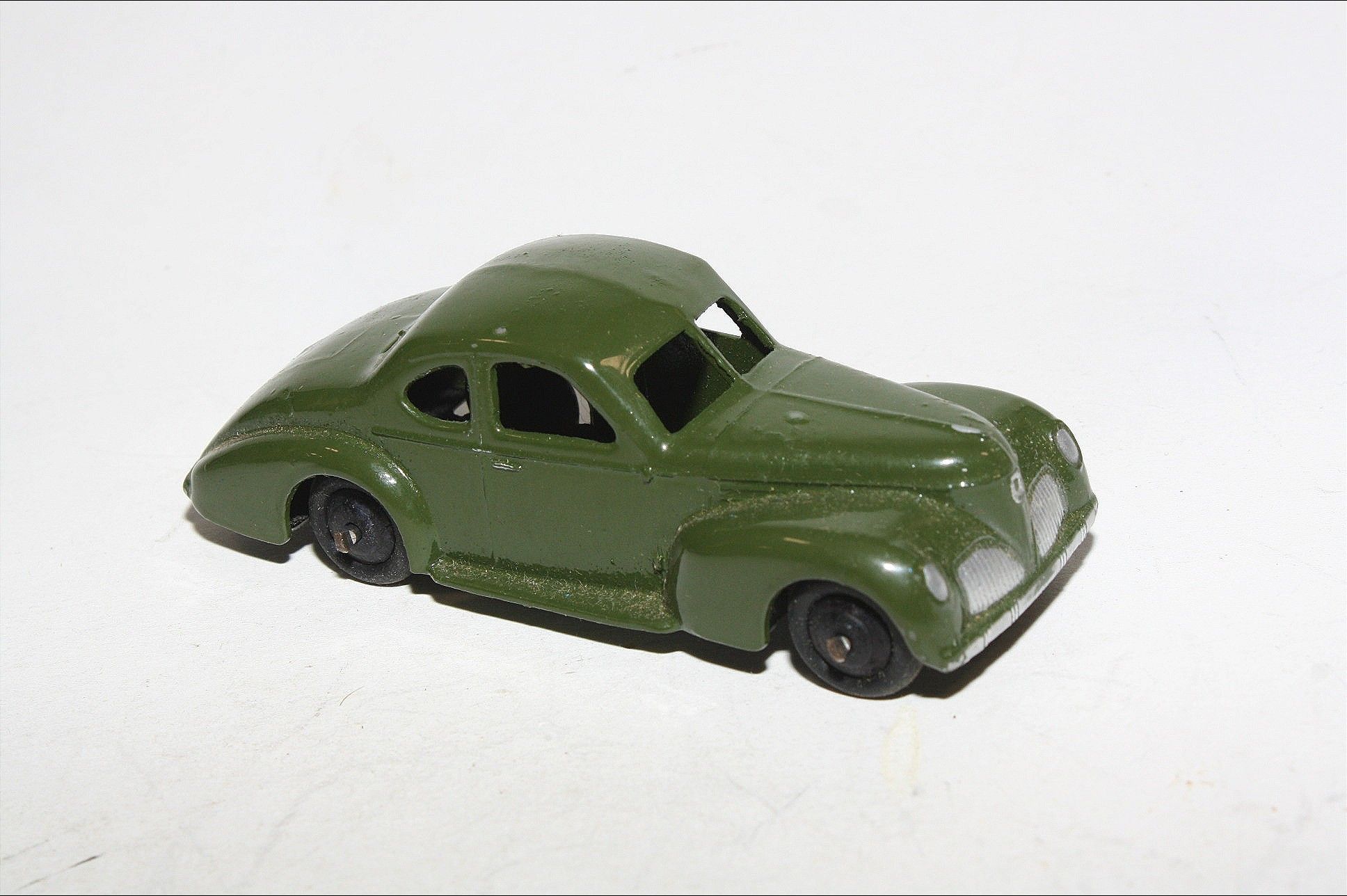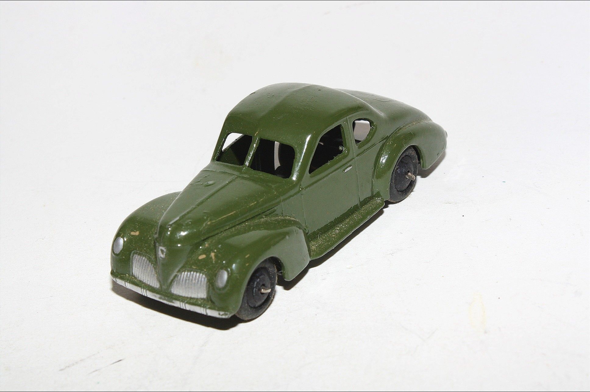 This stunning Dinky 39f Studebaker in gleaming olive with black ridged hubs is virtually mint condition, just a couple tiny storage chips. There are a lot of reflections in the photos from the flash. Must be one of the best available. Perfect tin baseplate. Please study the photos.