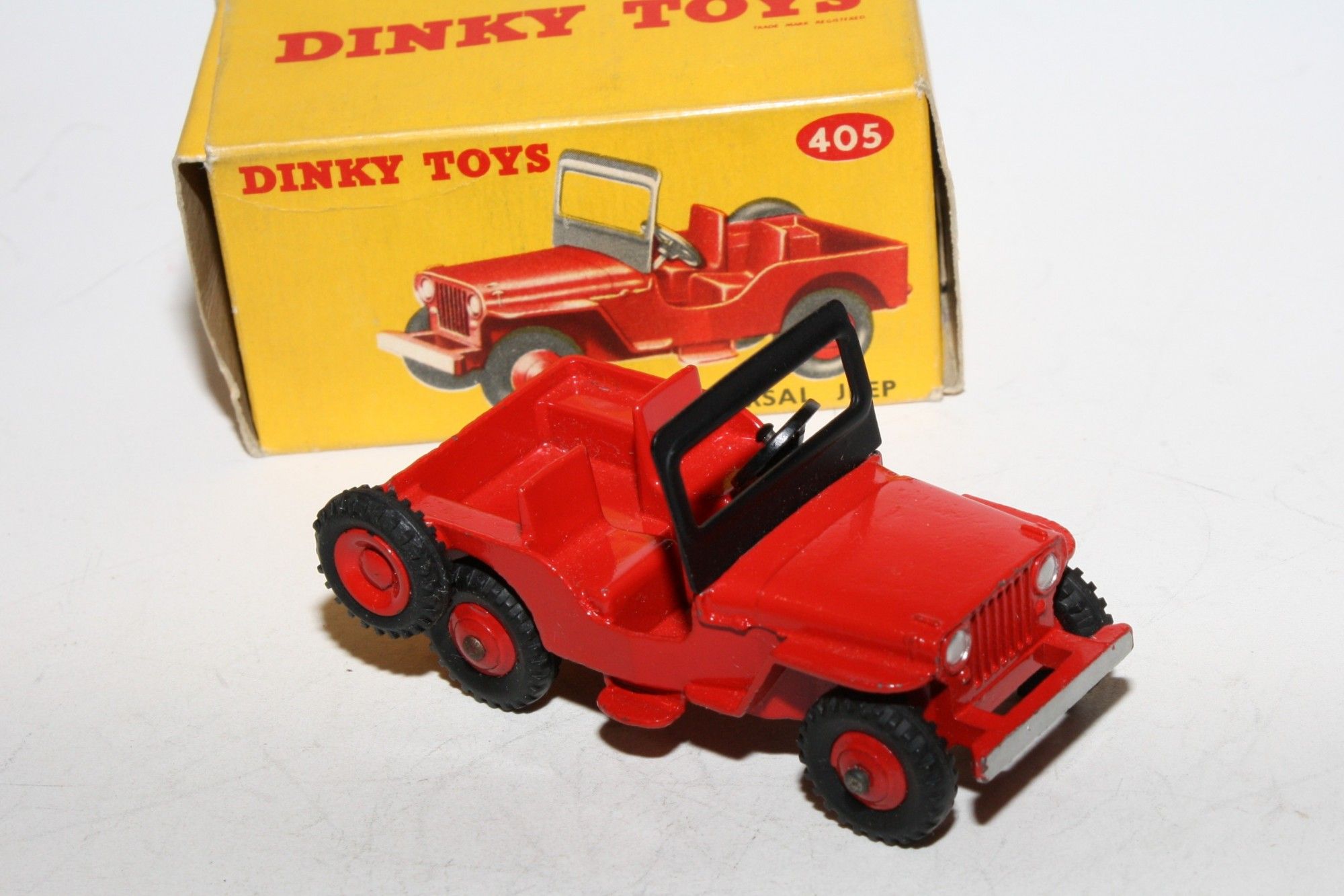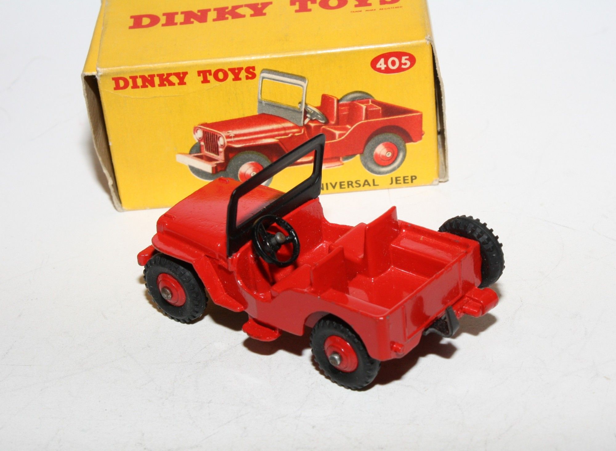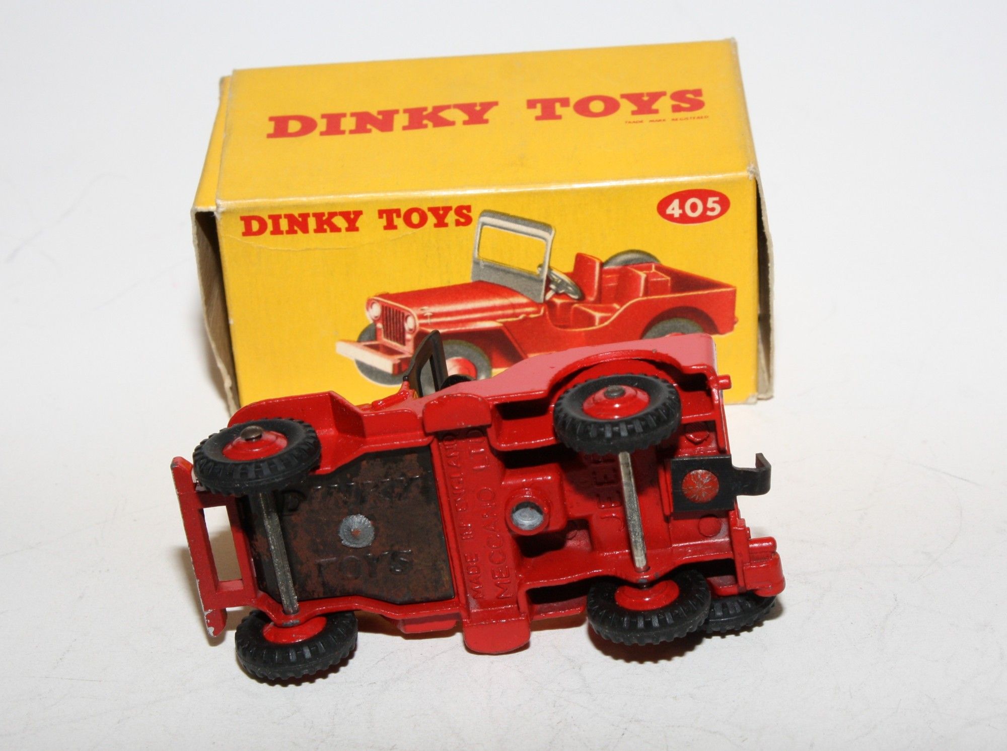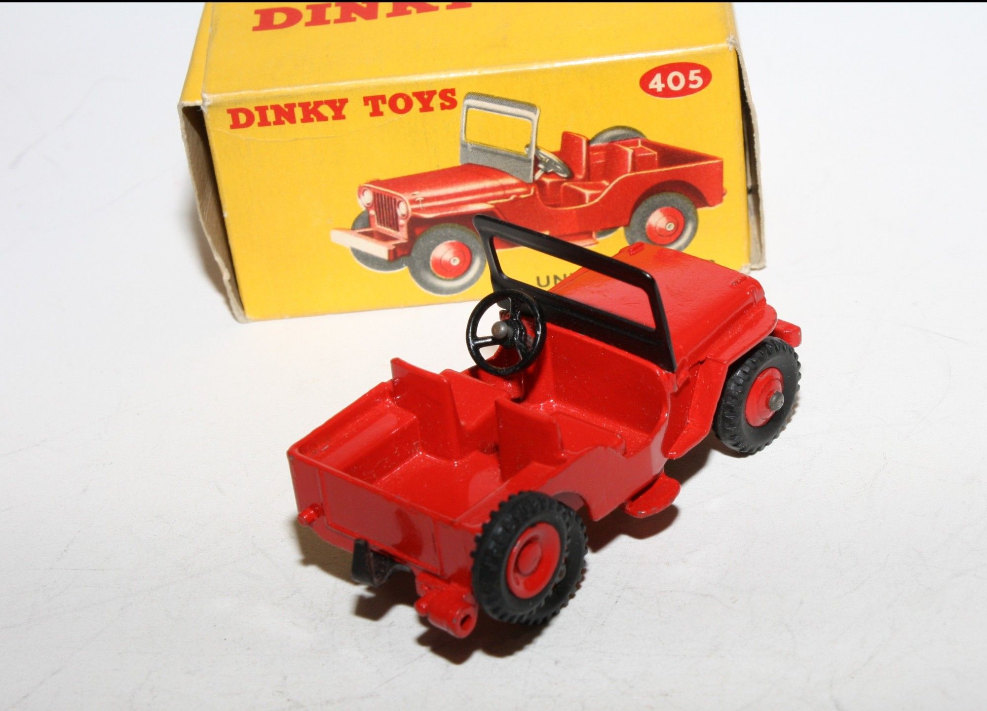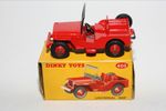 A superb example of this lovely vintage Dinky model. Gleaming original red paintwork is virtually mint, please study the photos for exact condition. Perfect original treaded tyres red ridged hubs with straight axles, good windscreen frame, tow hook and steering wheel . Very good underside with light surface rust to tinplate section.