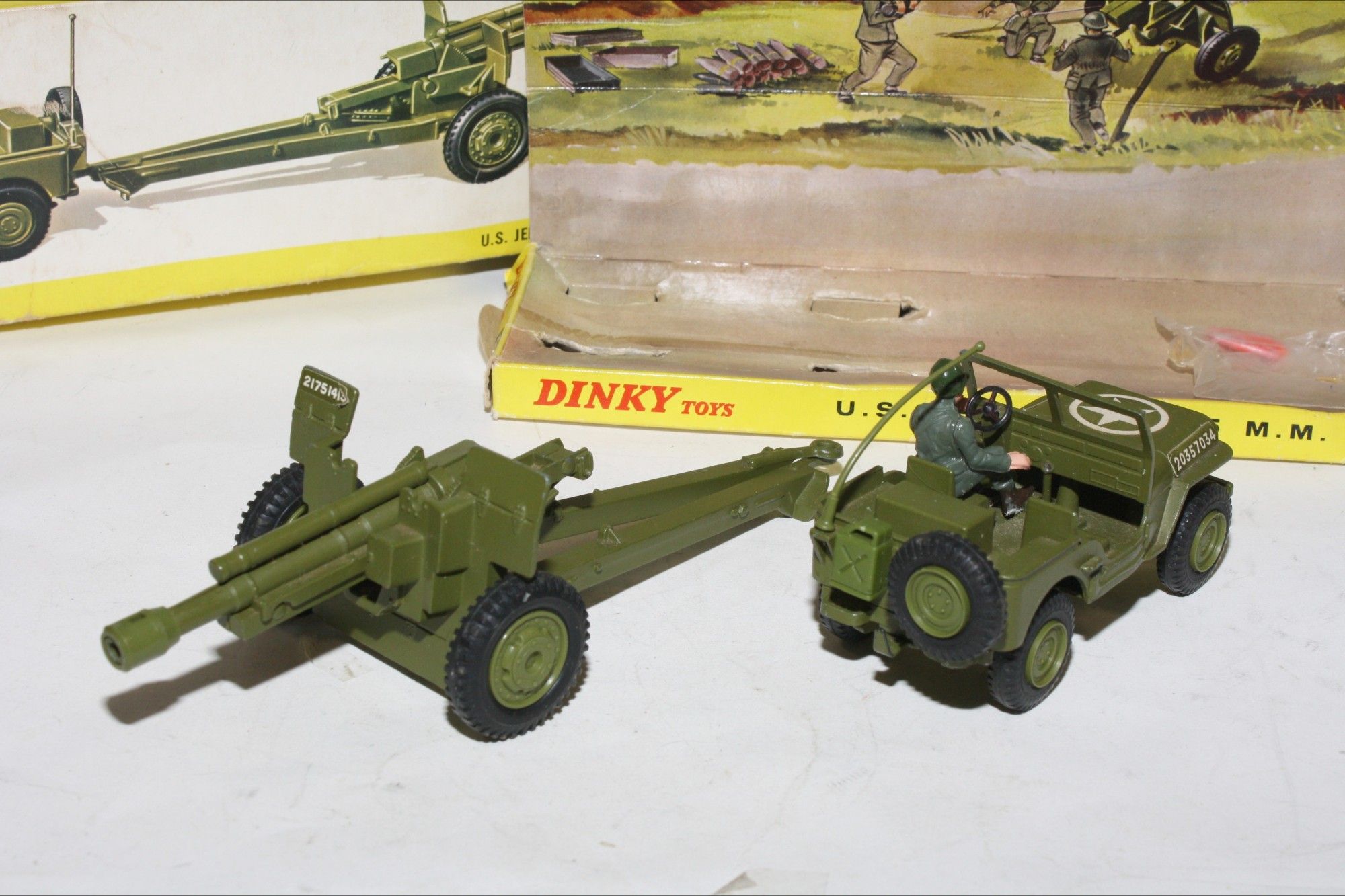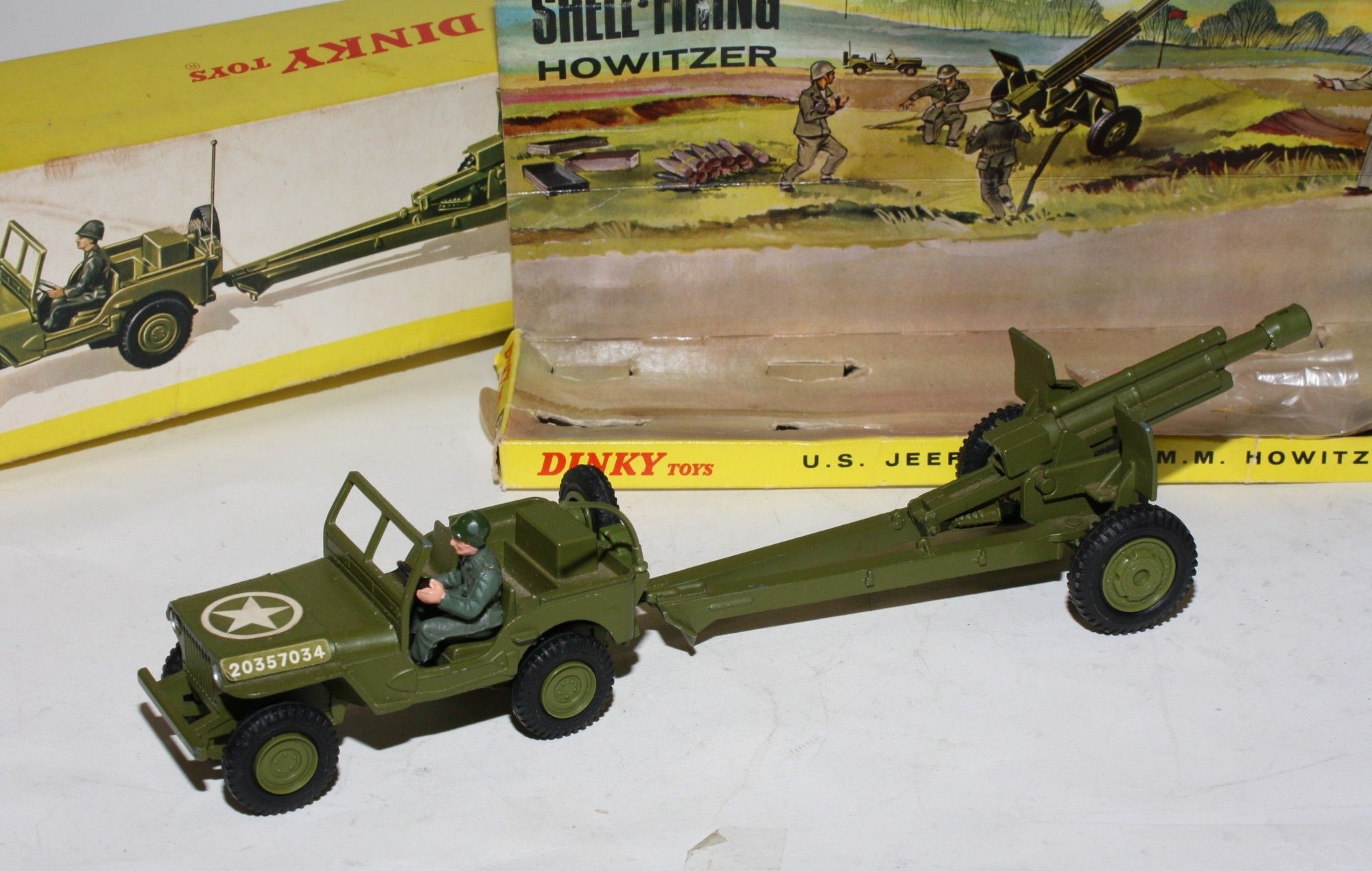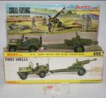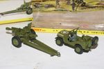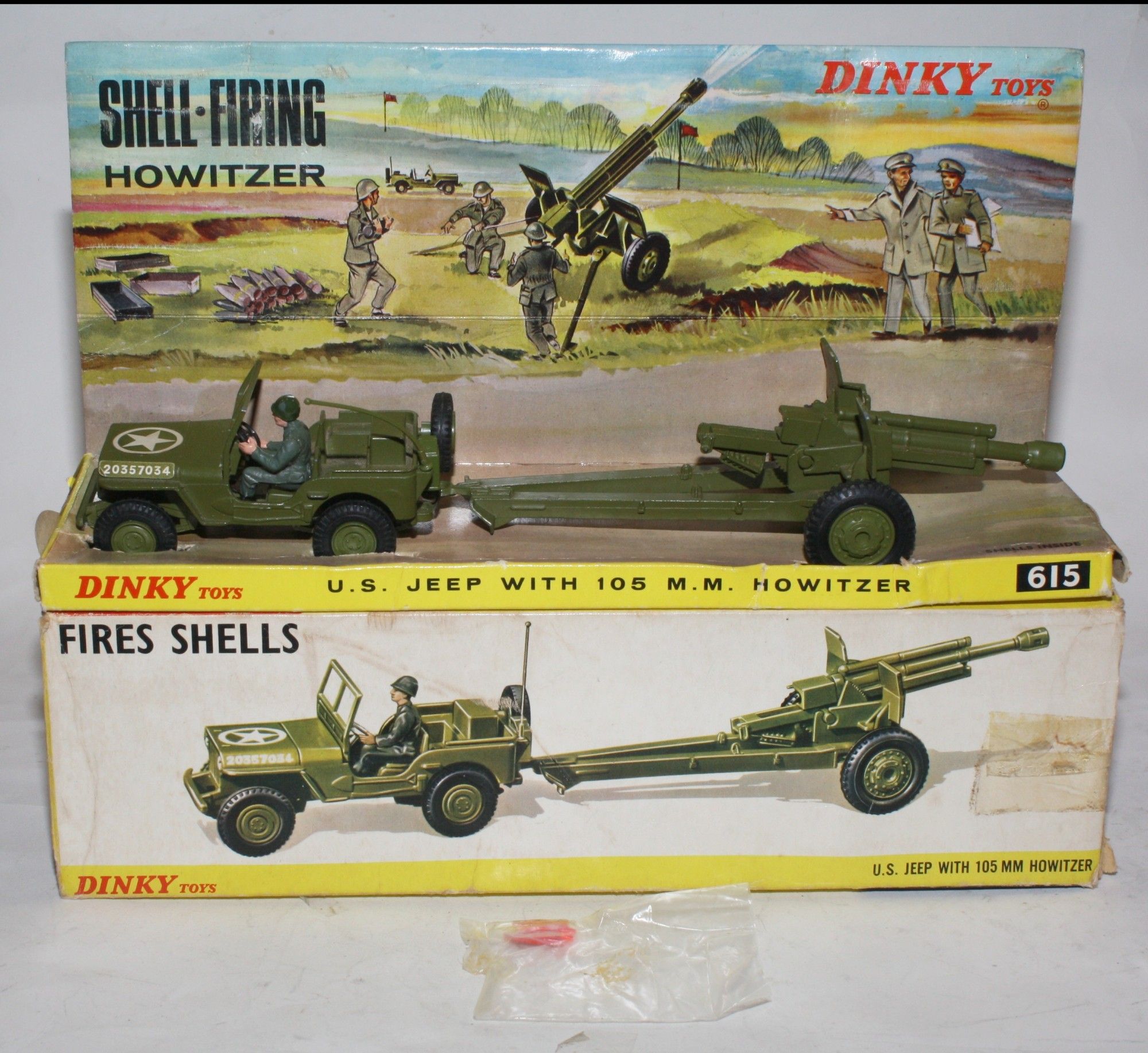 A nice example of these great military models. Original olive drab paintwork on both models is excellent, please study the photos for exact condition. Excellent original tyres on cast hubs, driver figure and 4 x original shells present. Mint underside