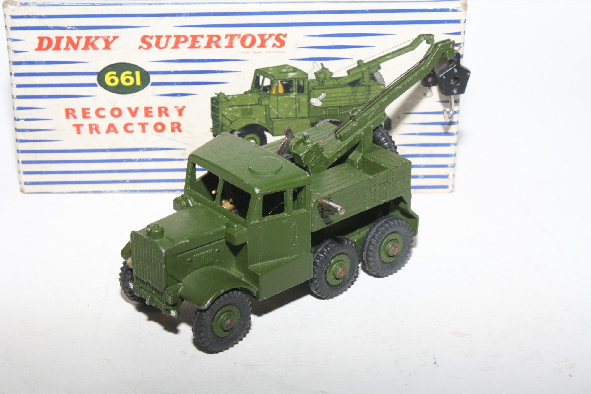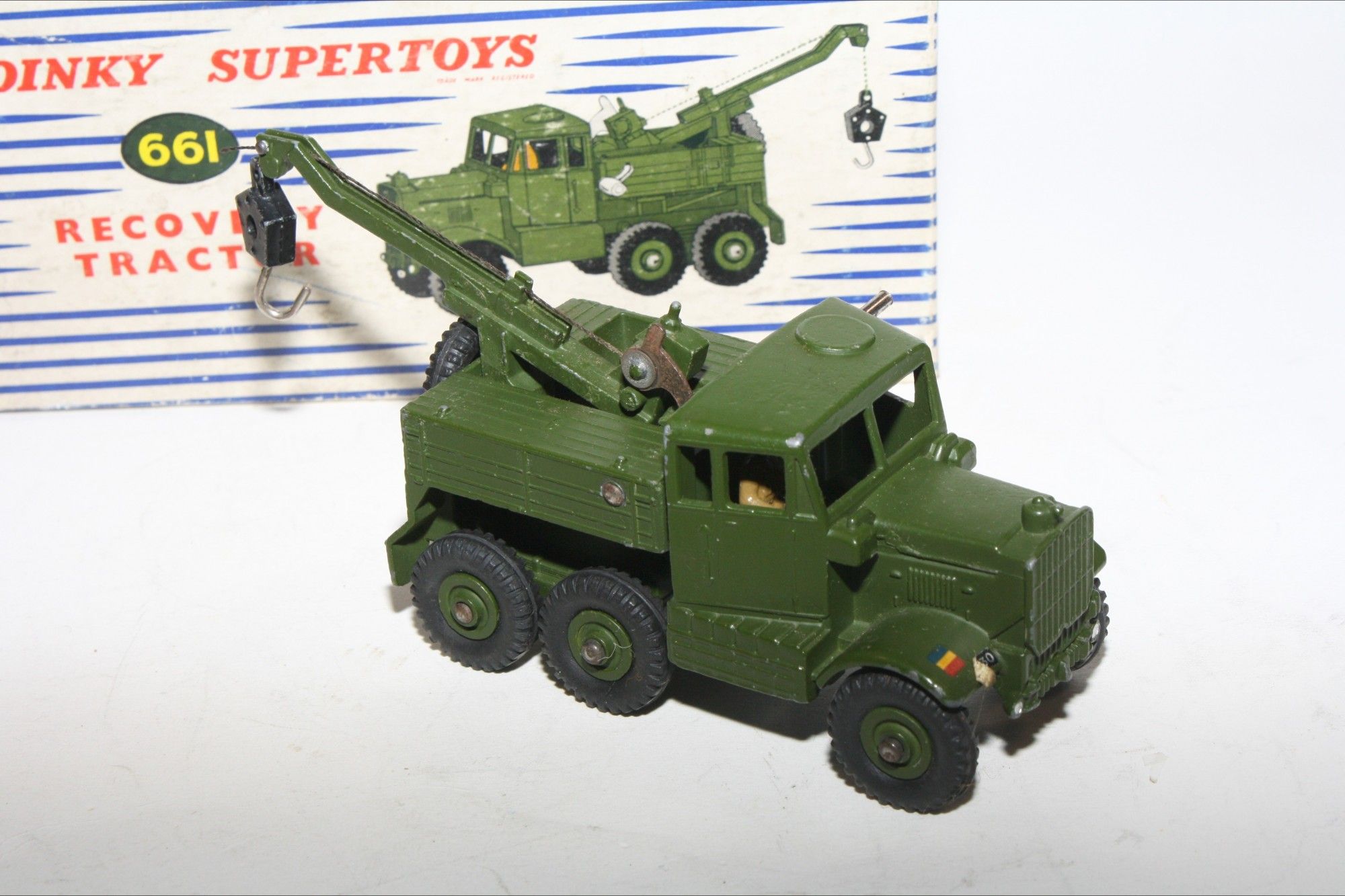 A nice example of this early issue Dinky military truck. Original paintwork is excellent, just a few small chips, please study the photos for exact condition. Excellent original tyres on metal hubs, free rolling axles, perfect crane, hook and mechanism, driver present and original decals. Excellent tin baseplate.