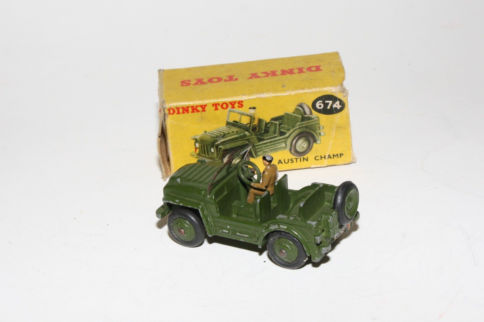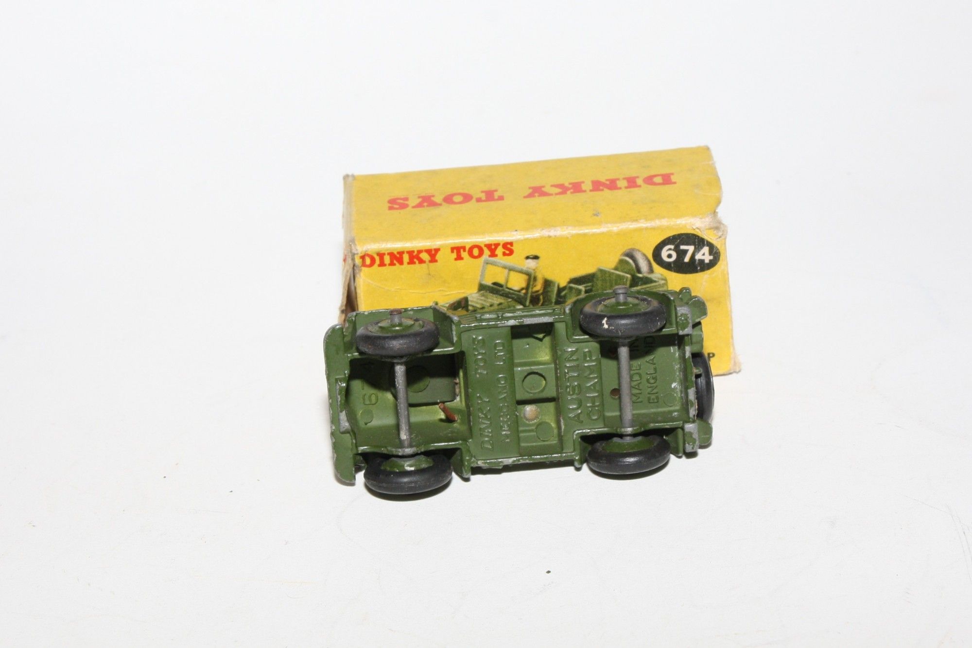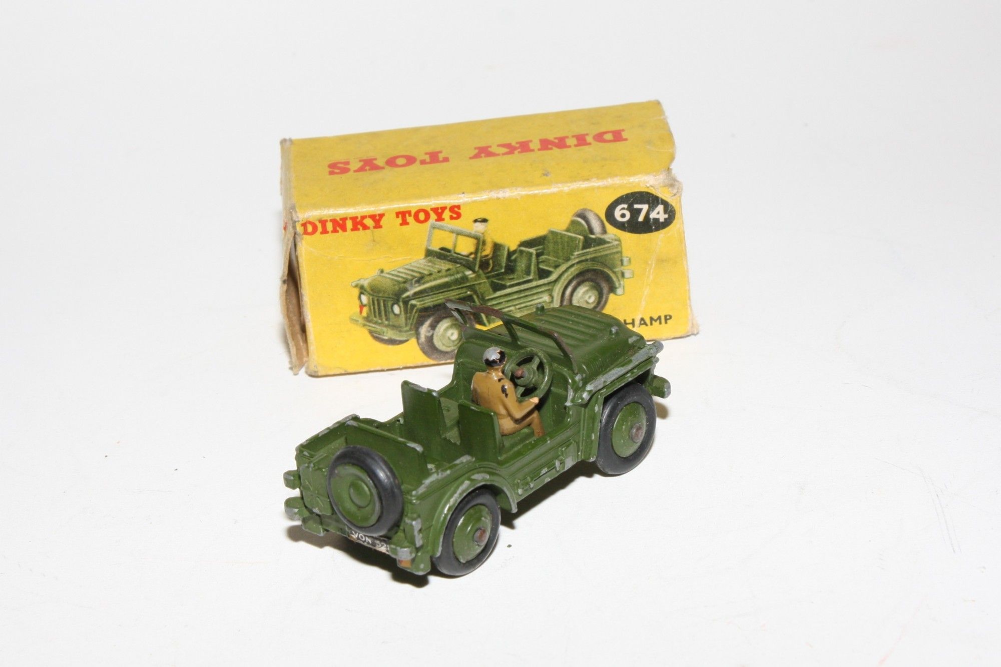 A good example of this 1950's vintage military model. Original olive drab paintwork is good with playwear, please study the photos for exact condition. Excellent original tyres on ridges hubs, straight axles, driver figure, original decals. Good underside