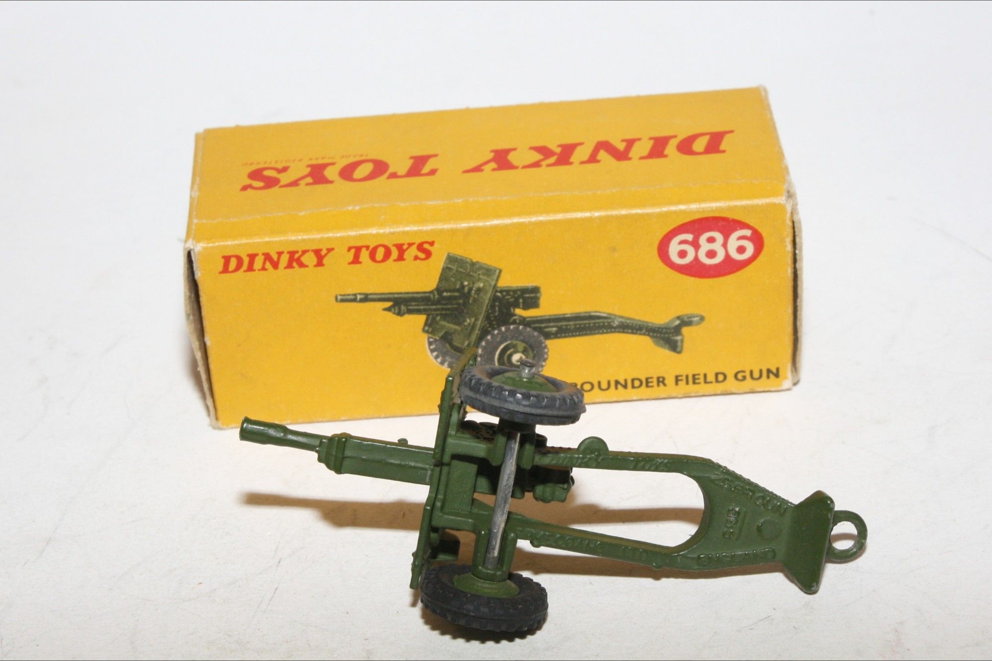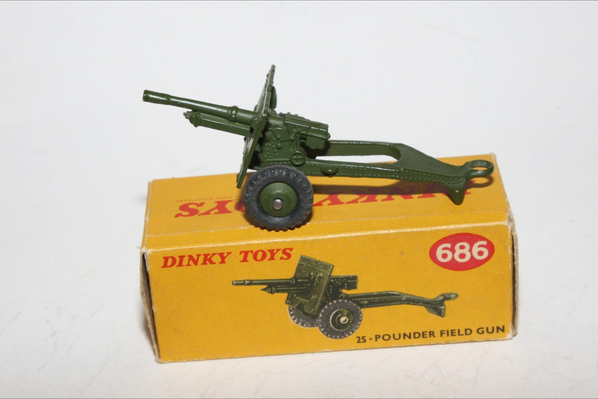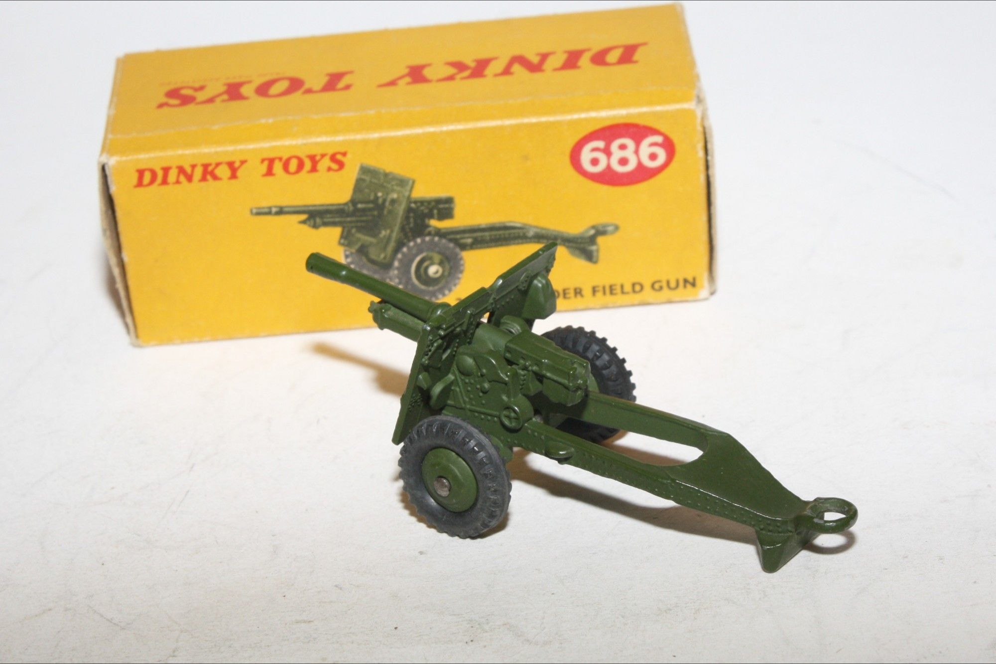 A superb example of this vintage Dinky military model. Original paintwork is virtually mint, please study the photos for exact condition. Good original tyres on metal hubs, elevating gun and good towing eye. Underside excellent.