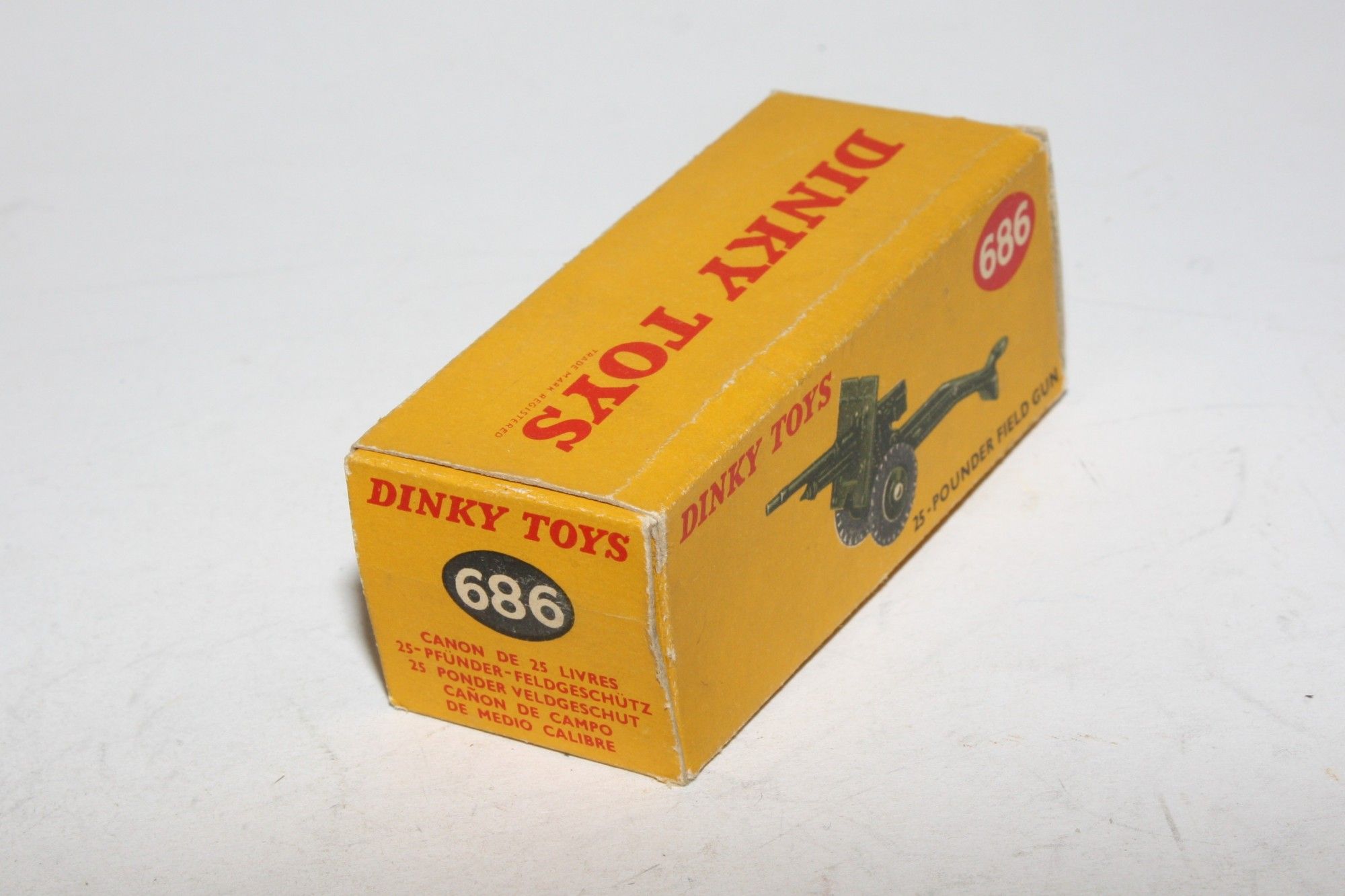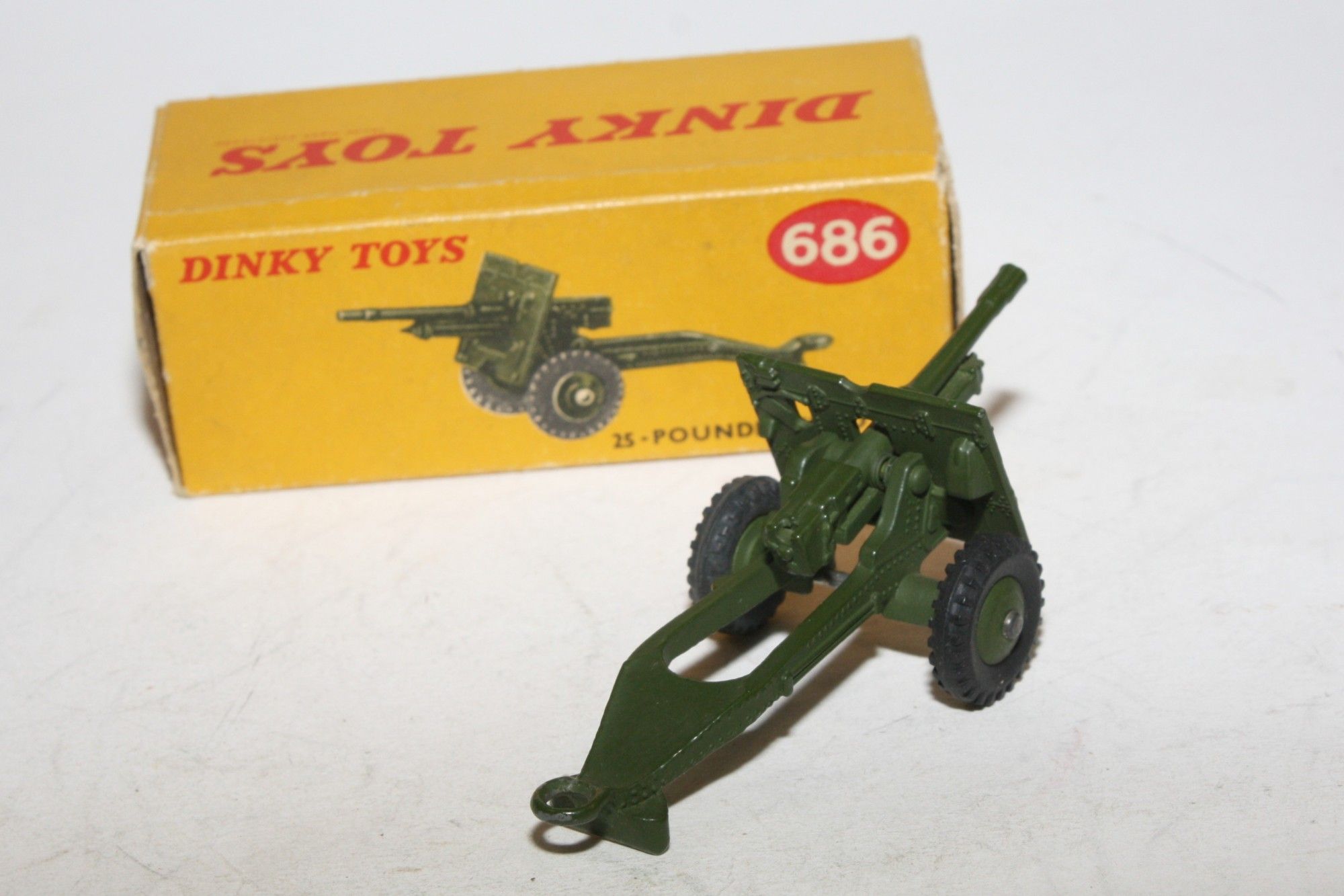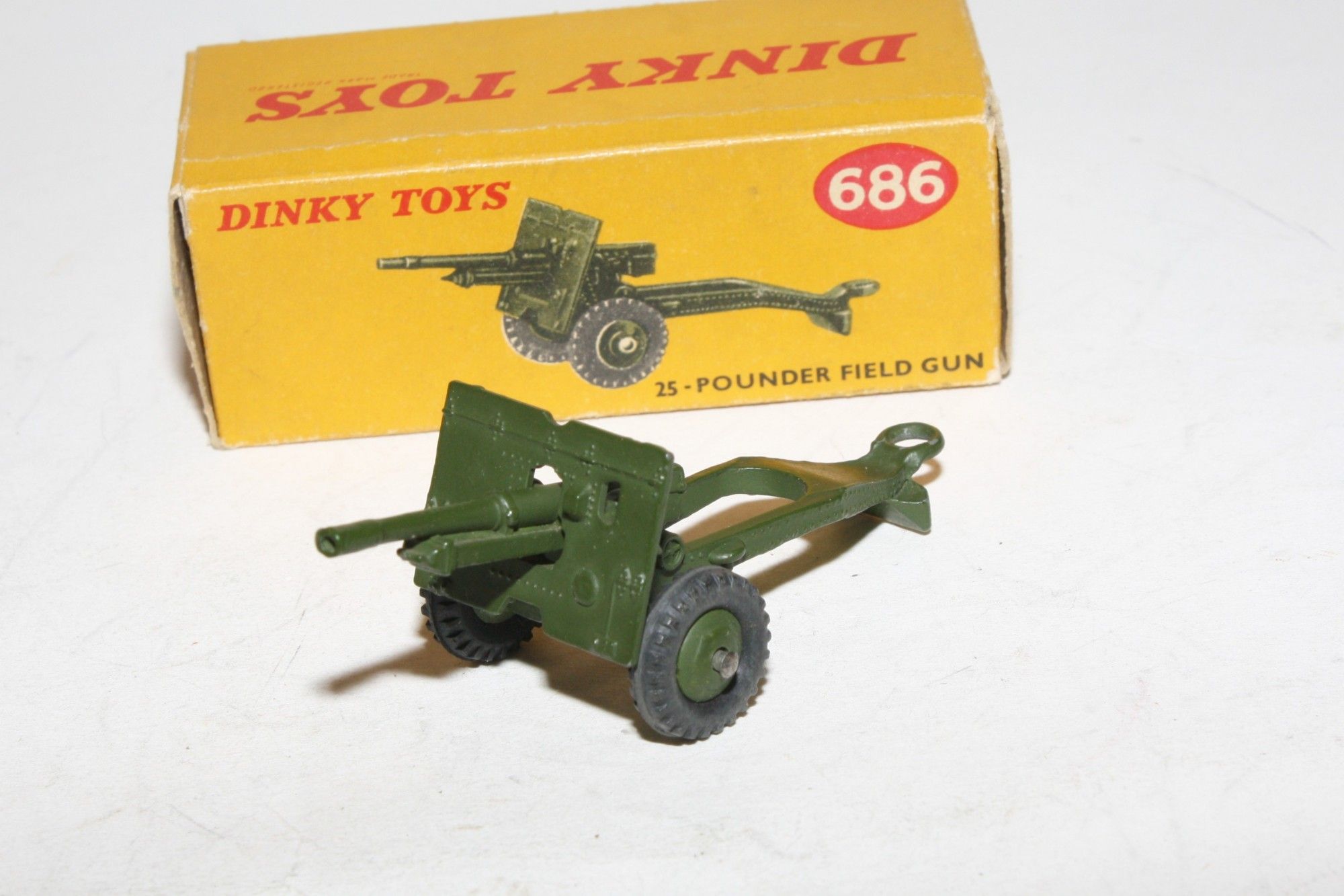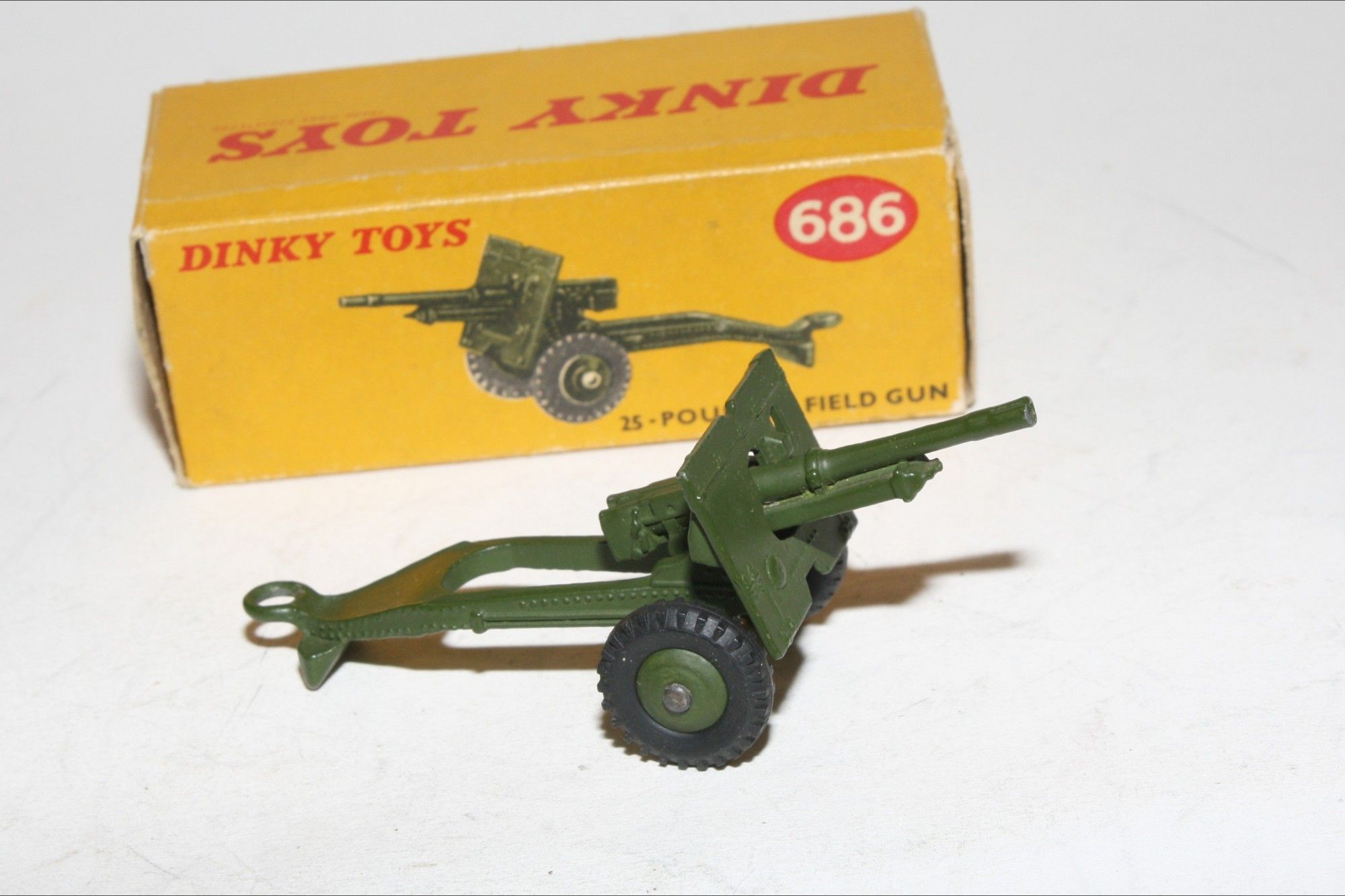 A superb example of this vintage Dinky military model. Original paintwork is virtually mint, please study the photos for exact condition. Good original tyres on metal hubs, elevating gun and good towing eye. Underside excellent.