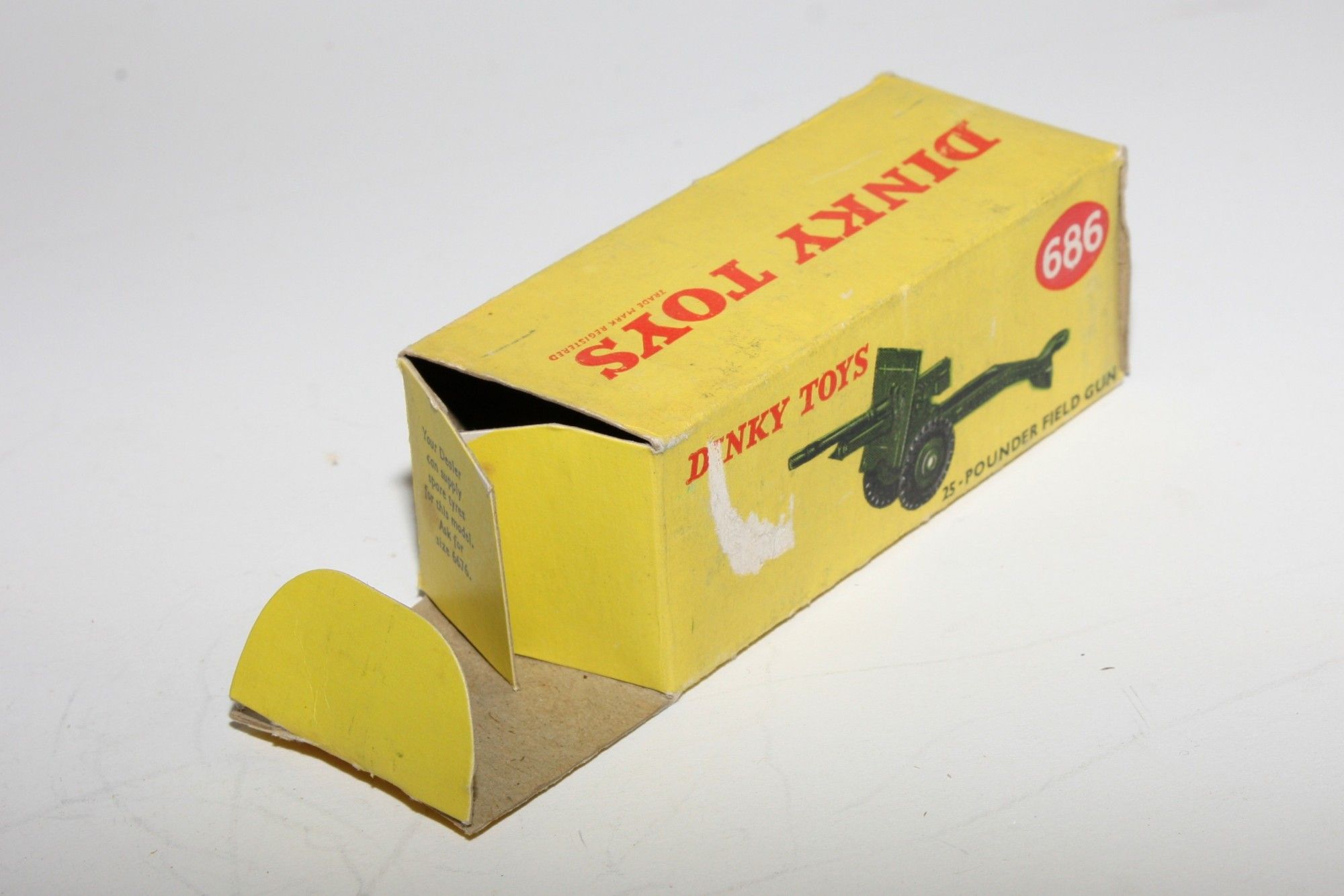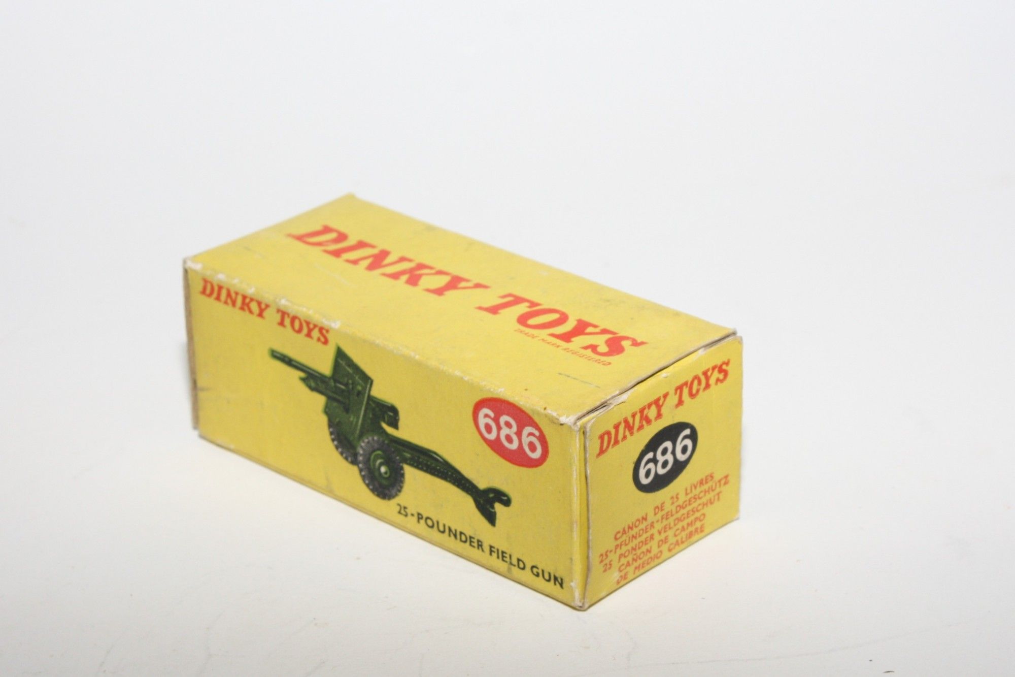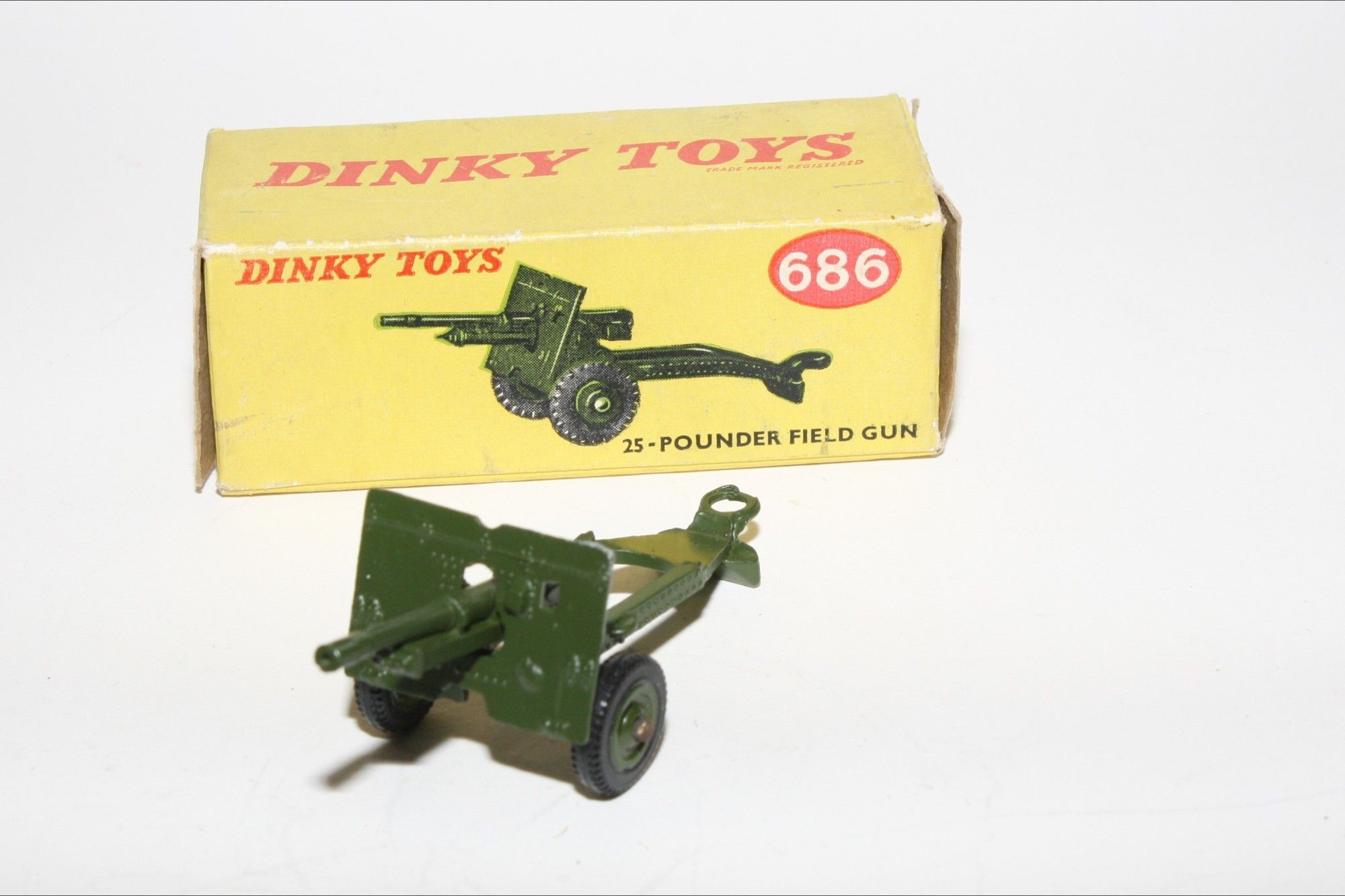 A superb example of this vintage Dinky military model. Original paintwork is virtually mint, please study the photos for exact condition. Good original tyres on later plastic hubs, elevating gun and good towing eye. Underside excellent.