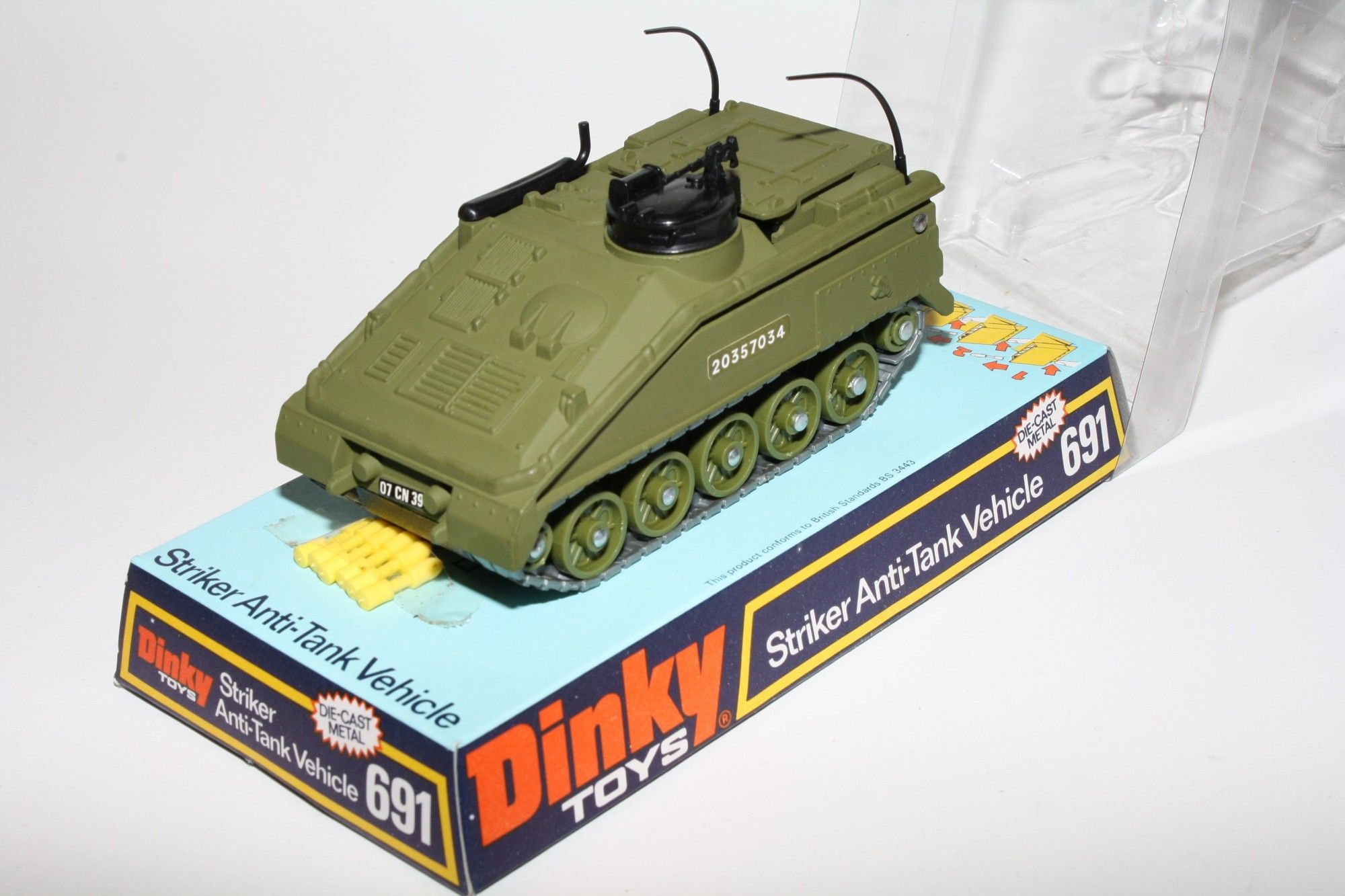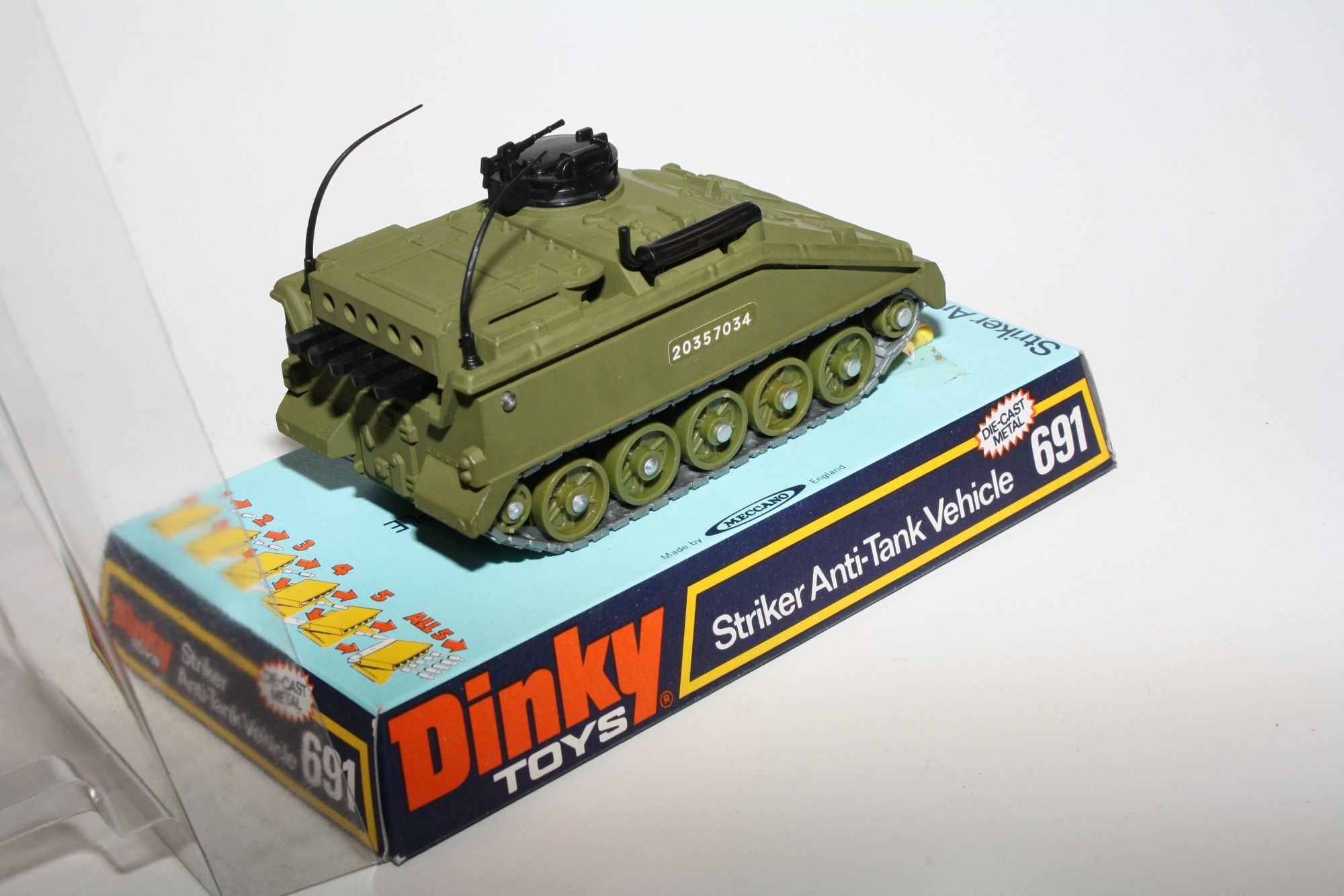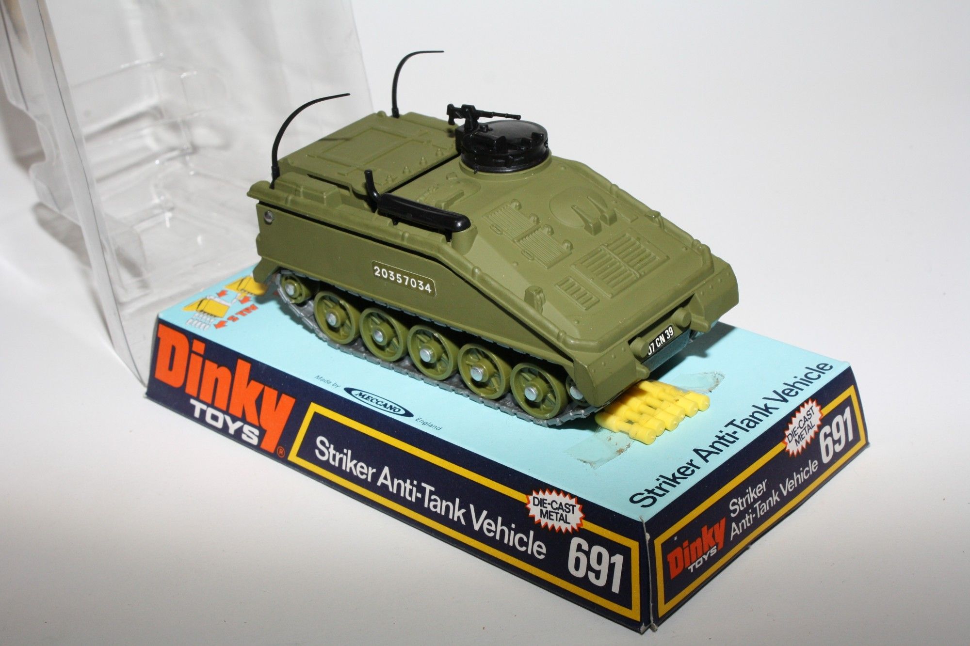 A superb example of this earlier issue 1970's military model. Part of a lovely military collection recently acquired. Original paintwork is mint and unused as not been out of the packaging until now, please study the photos for exact condition. Original tracks on green plastic hubs, aerials present, mint stickers, 6 x original shells. Mint underside