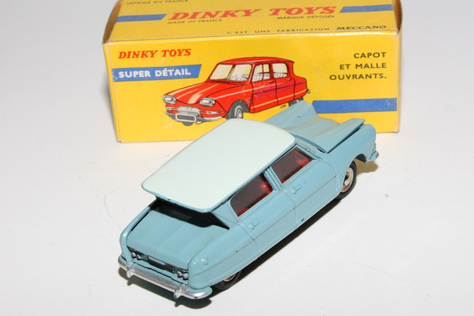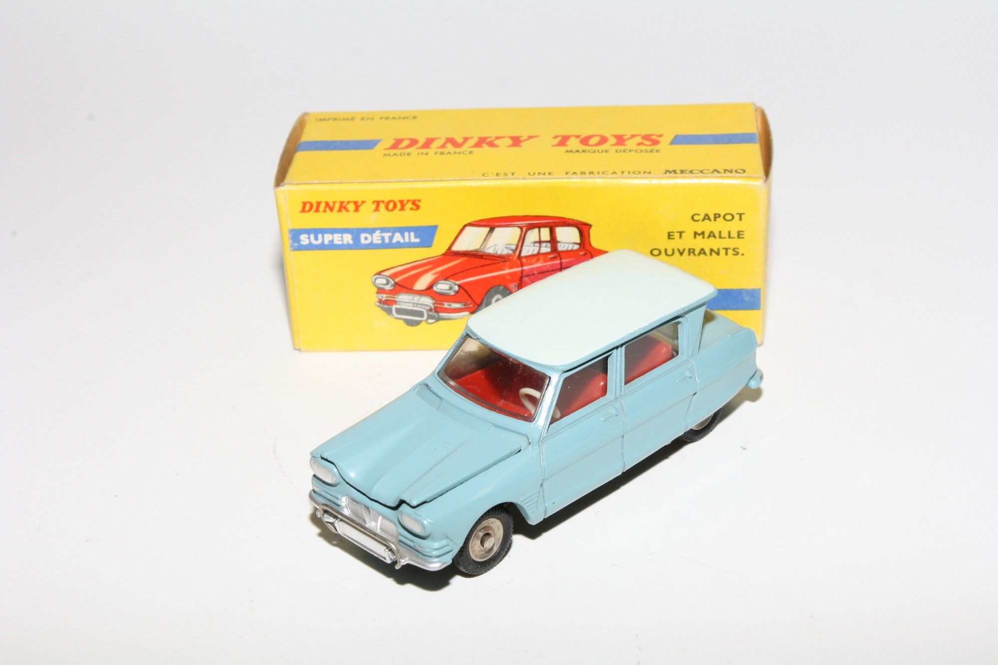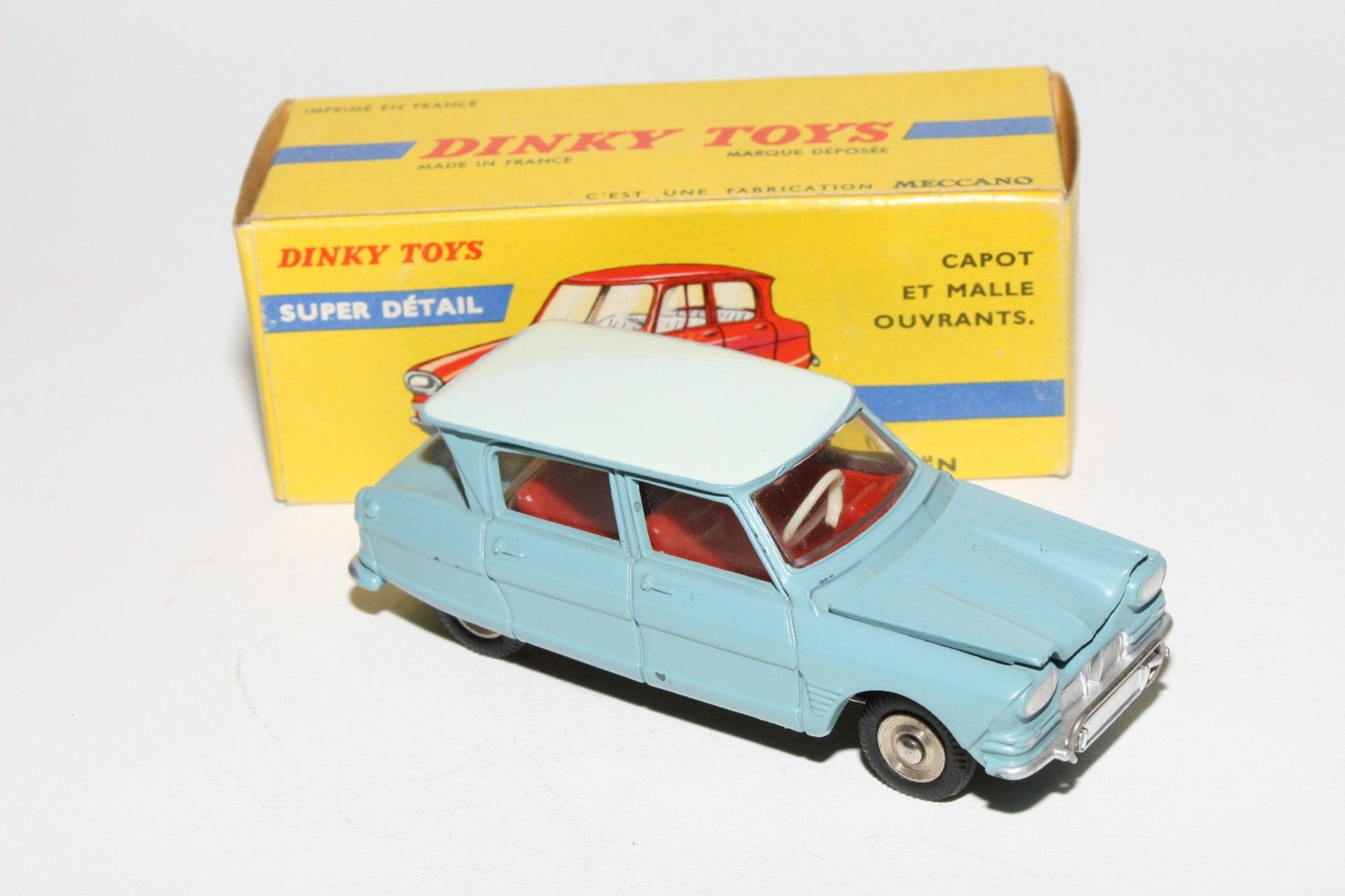 A superb example of this lovely 1960's Dinky (1st type with spare under bonnet). Part of a lovely collection recently acquired from a client in Italy, Never used. Gleaming original pale blue over light blue paintwork is virtually mint, just a couple of nicks, please study the high resolution photos for exact condition. Perfect original tyres on steel hubs, free rolling axles, steering and suspension perfect, crystal clear windows, red interior mint tin baseplate.
