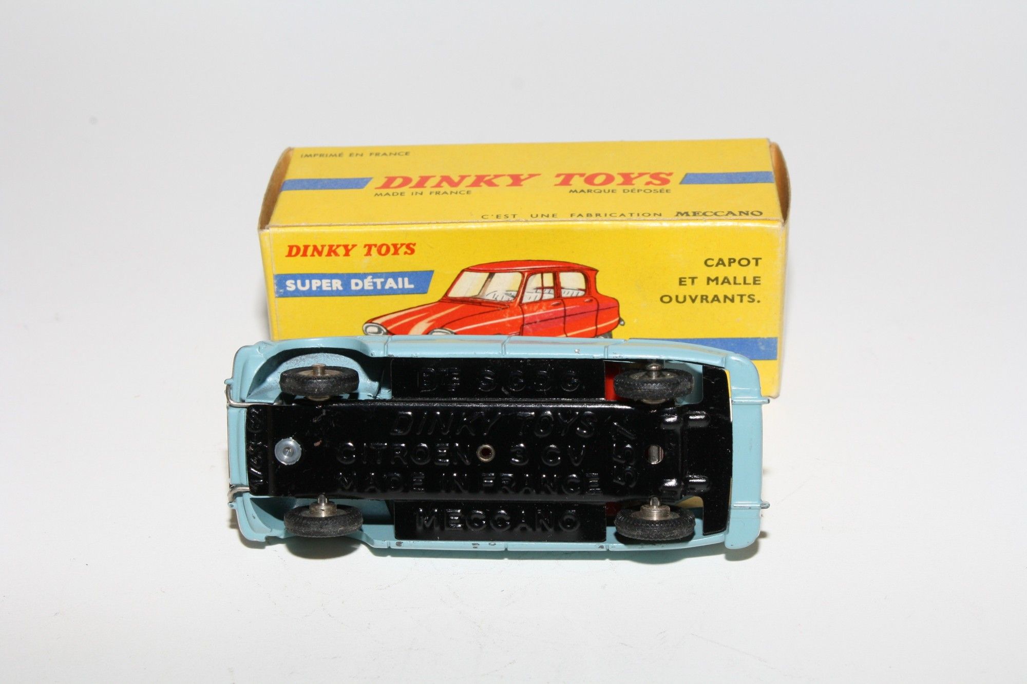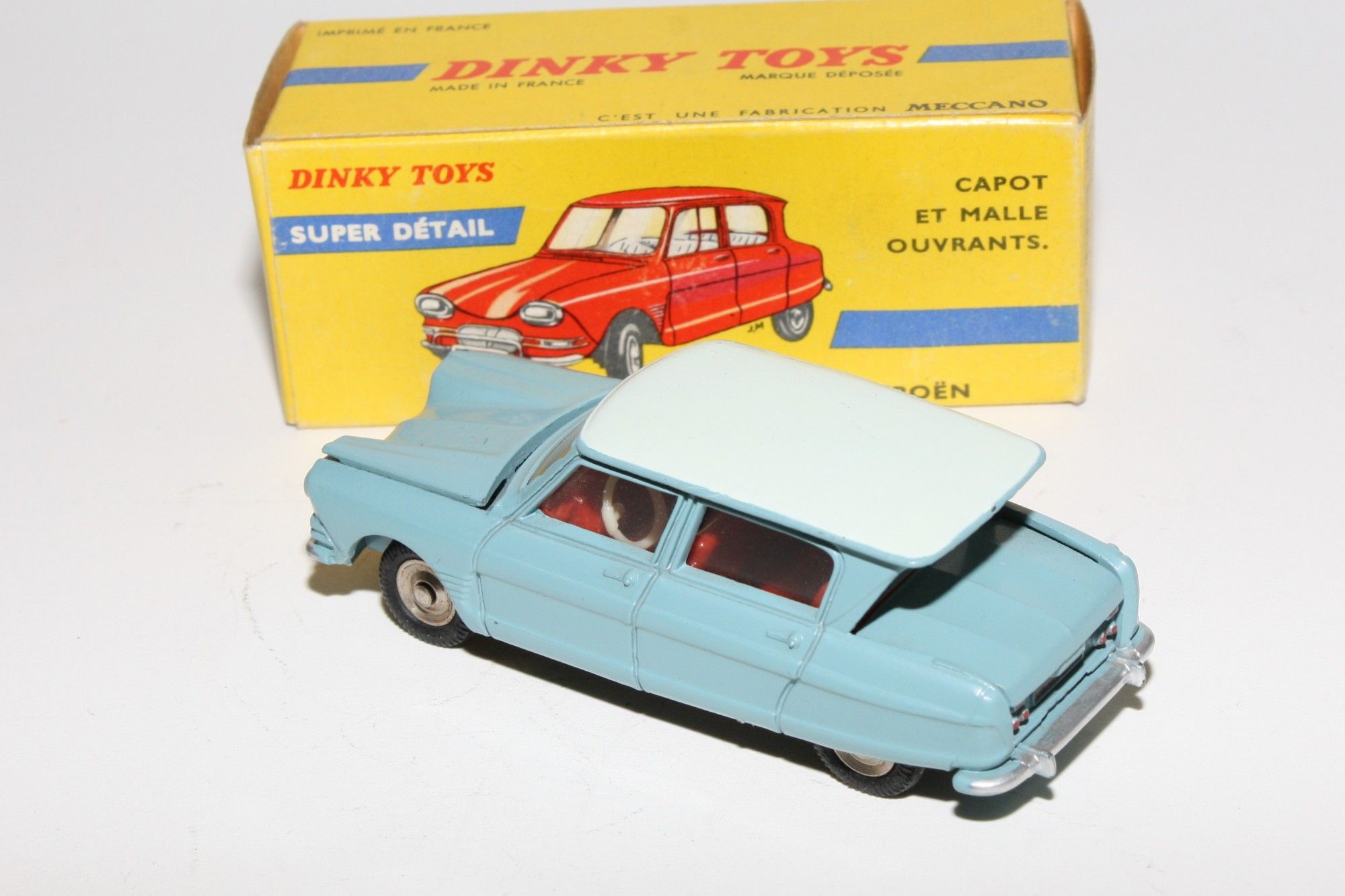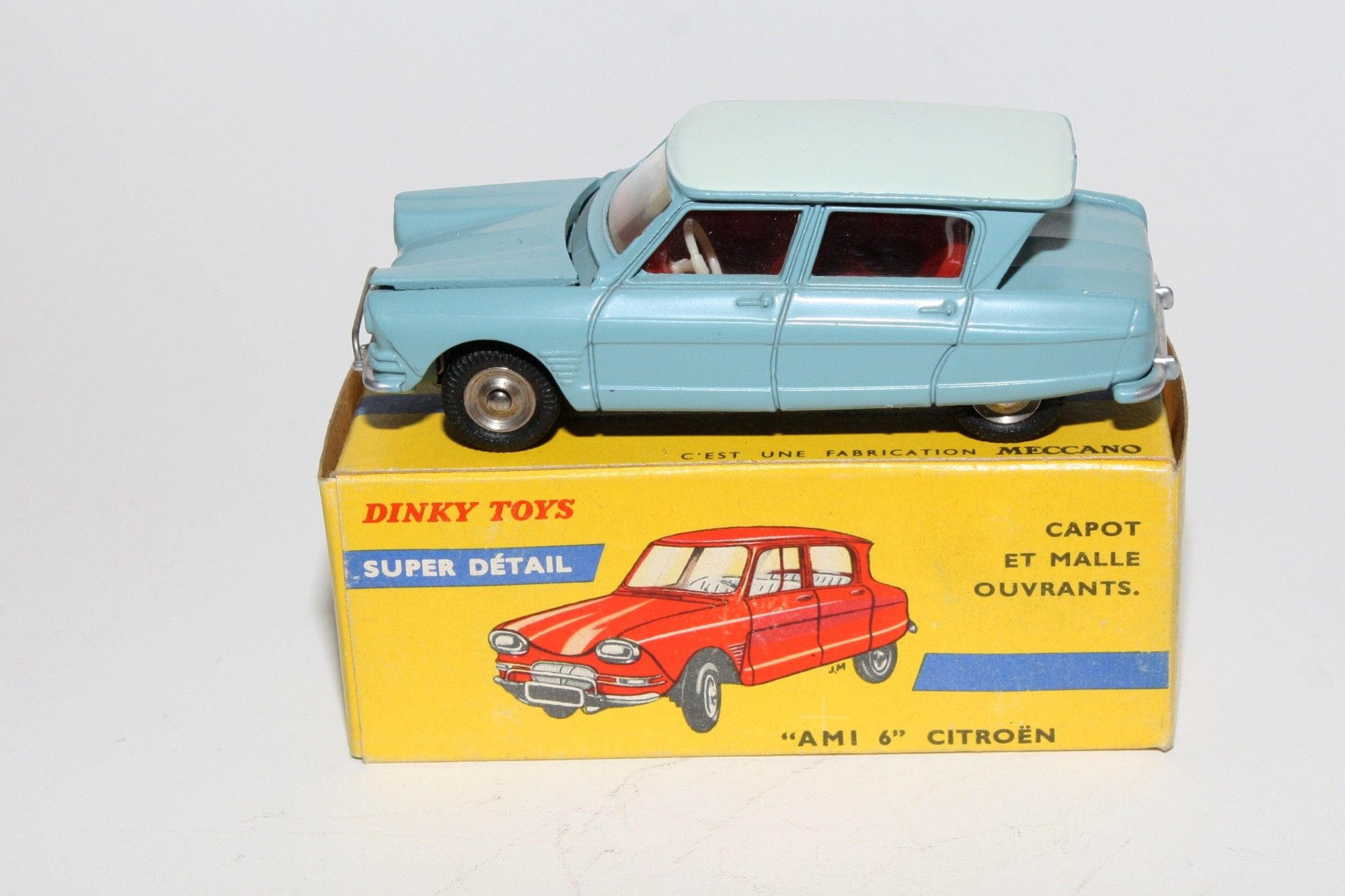 A superb example of this lovely 1960's Dinky (1st type with spare under bonnet). Part of a lovely collection recently acquired from a client in Italy, Never used. Gleaming original pale blue over light blue paintwork is virtually mint, just a couple of nicks, please study the high resolution photos for exact condition. Perfect original tyres on steel hubs, free rolling axles, steering and suspension perfect, crystal clear windows, red interior mint tin baseplate.