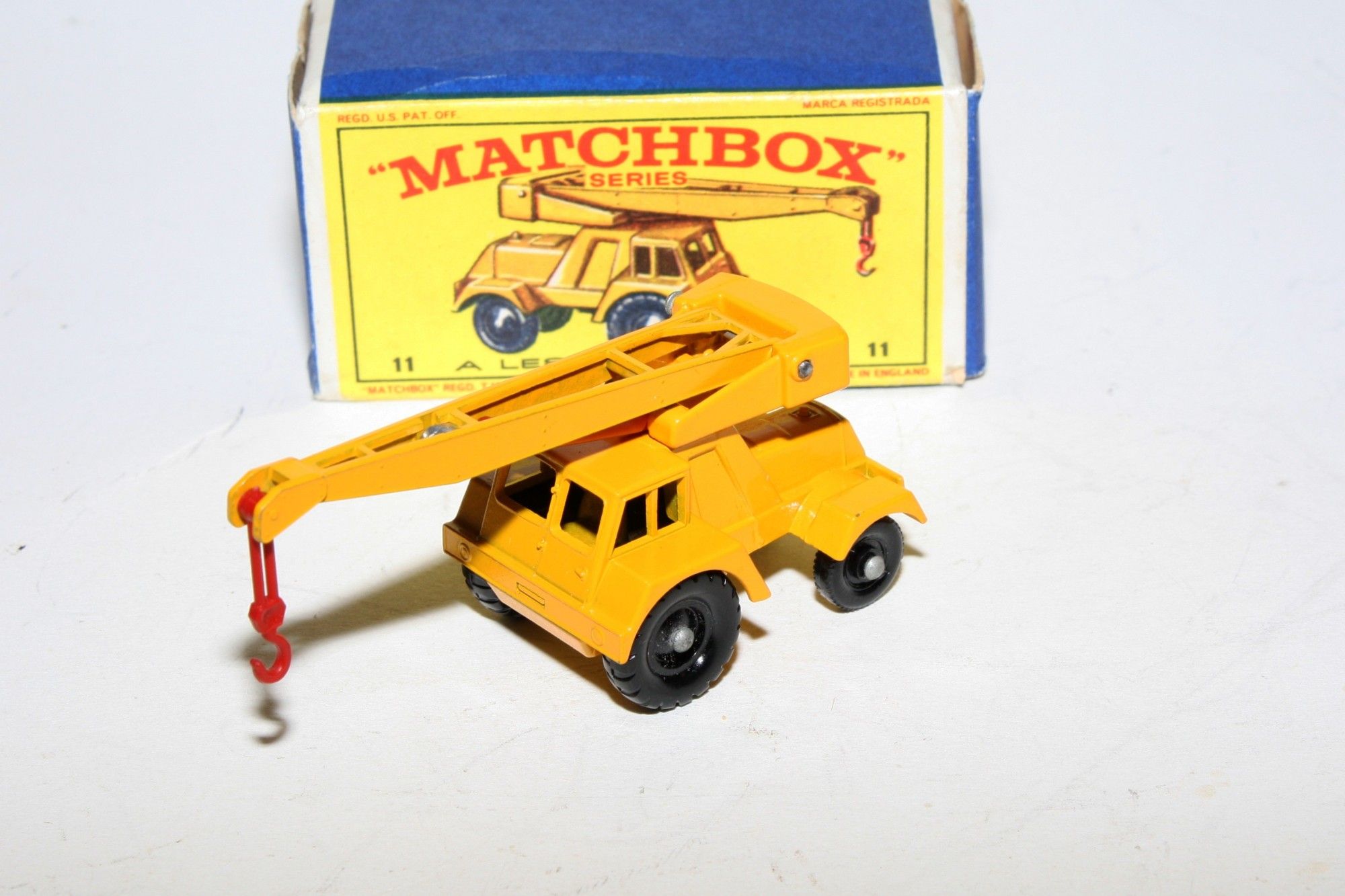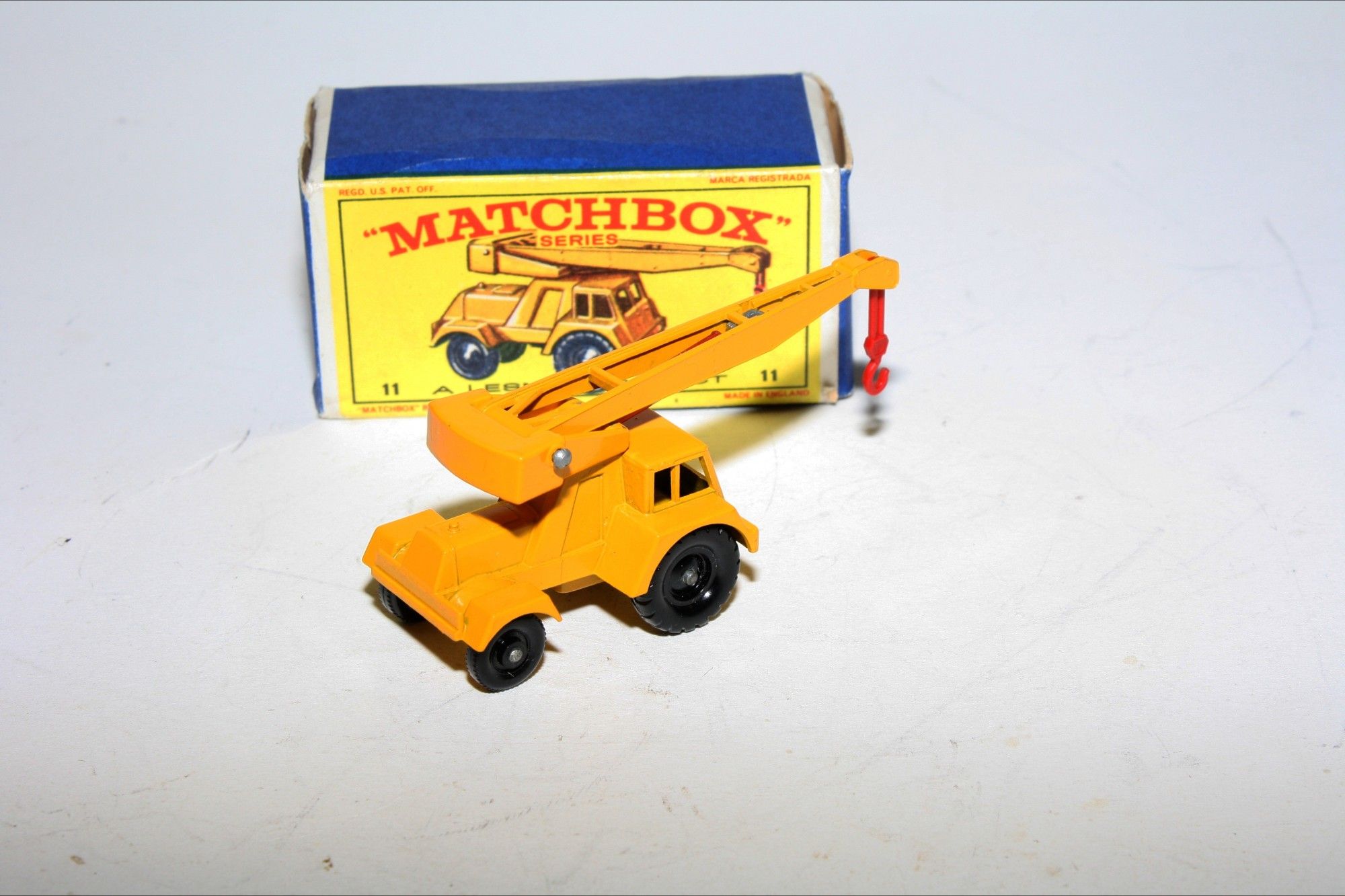 A superb example of this 1960's Matchbox model. Gleaming original paintwork is mint, please study the photos for exact condition. Perfect BPW, all free rolling, nice strong hydraulic crane with plastic hook, mint underside. Mint underside
