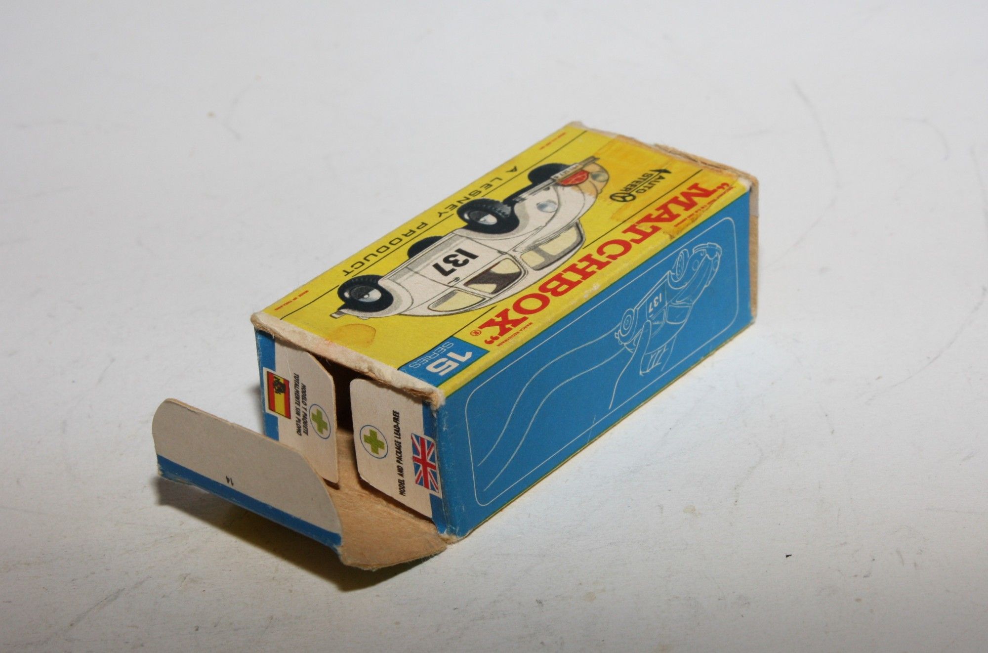 A superb example of this Matchbox model. Gleaming original paintwork is near mint with a few tiny fleabites, please study the photos for exact condition. Perfect wheels with Auto Steer, all free rolling, crystal clear windows, white interior , tow hook, perfect Monte Carlo decal to front, bare metal underside.