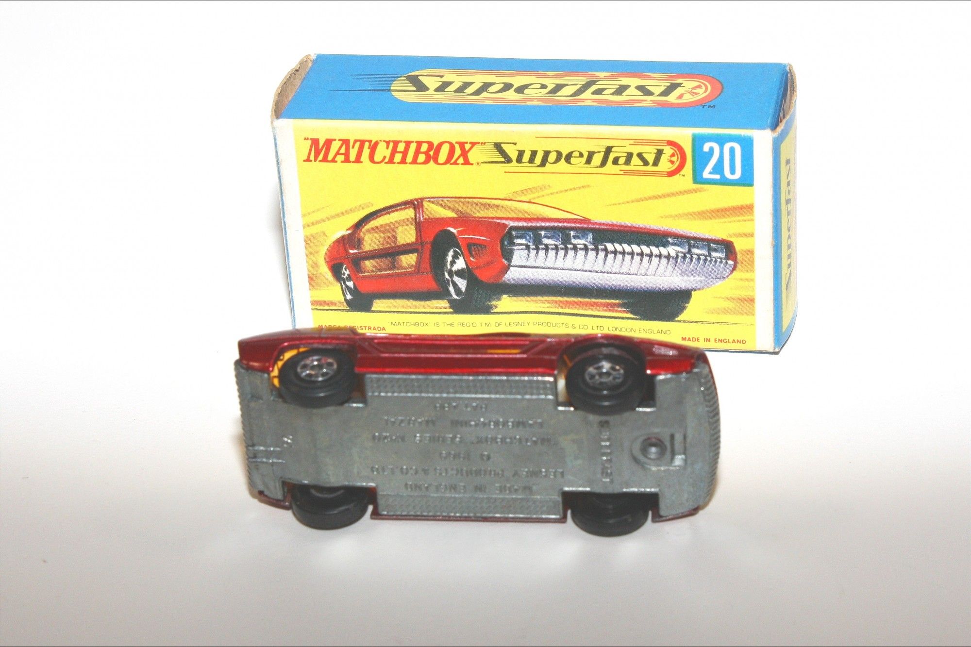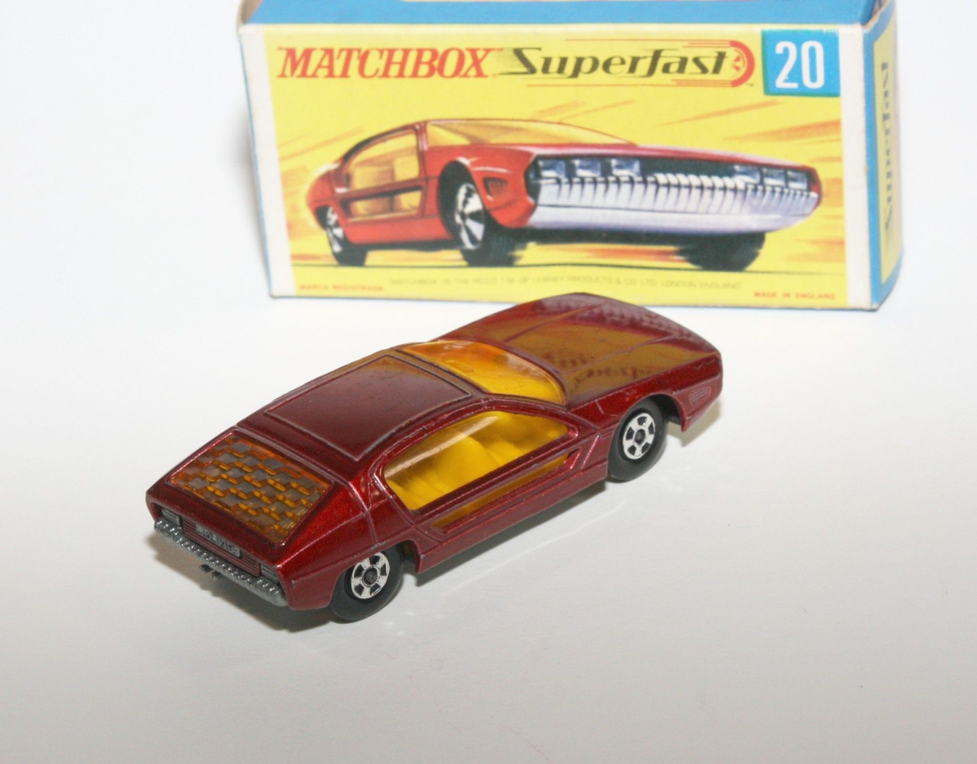A nice example of this Matchbox model. Original metallic paintwork is excellent with box rubs to some raised edges and a couple of tiny nicks, please study the photos for exact condition. Superfast wheels all free rolling, strong suspension, amber windows. unpainted base.