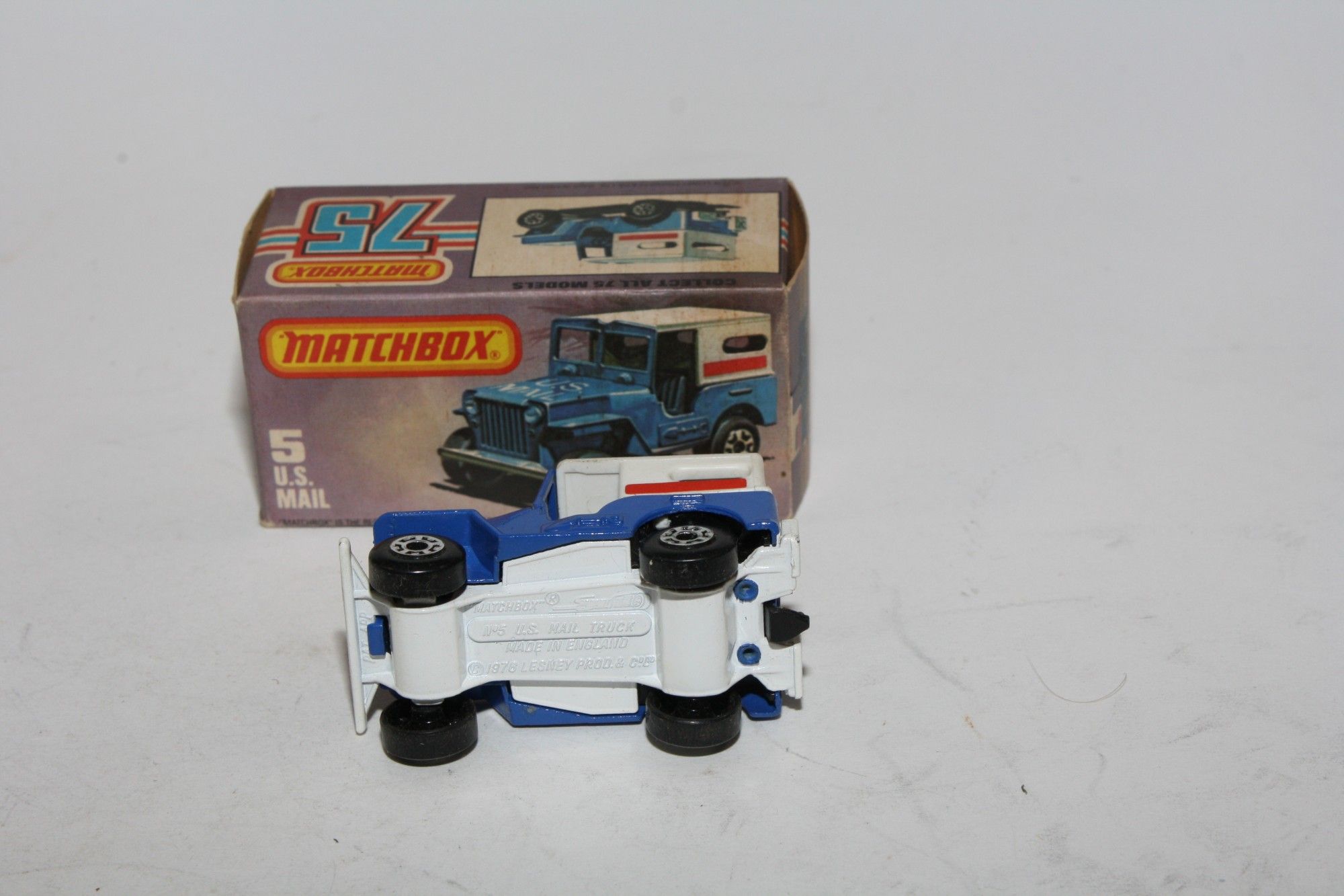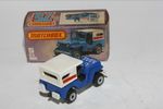 A superb example of this Matchbox model. Gleaming original blue paintwork is mint, please study the photos for exact condition. Superfast wheels, all free rolling, US Mail decal mint, plastic tilt, tow hook, perfect underside.