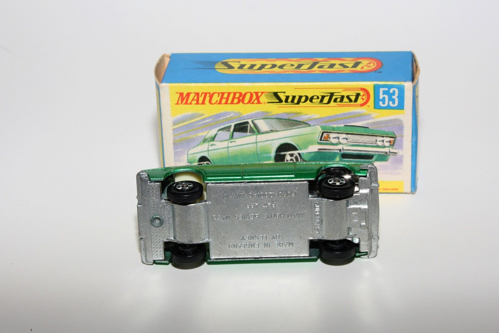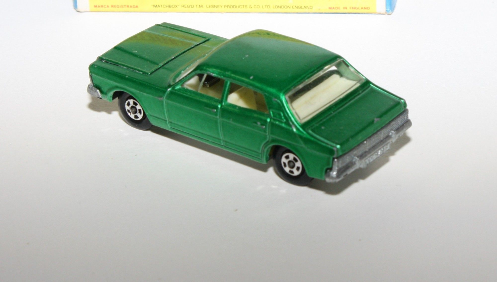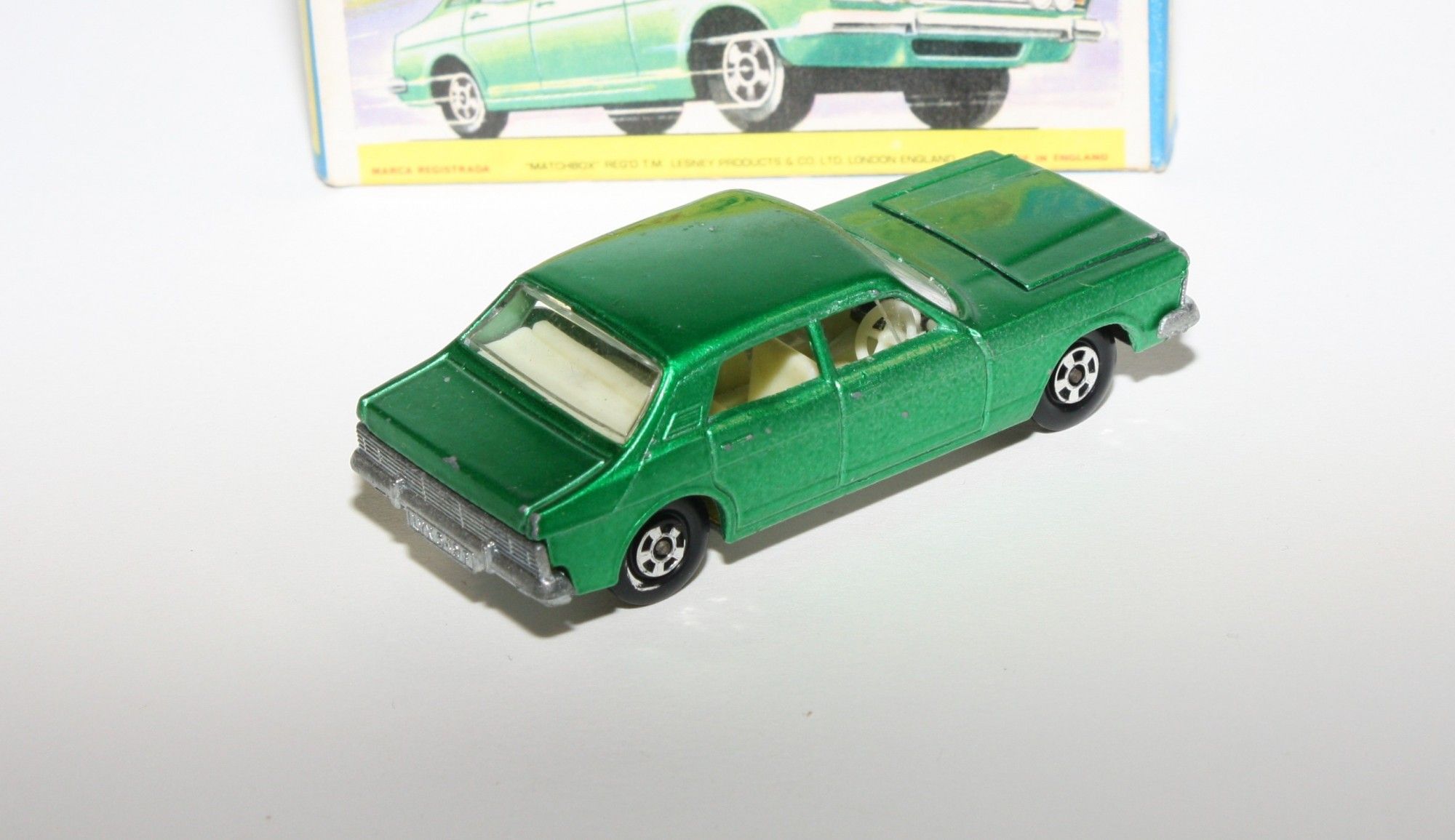 A nice example of this early 1970's Matchbox model. Original harder to find darker green metallic paintwork is near mint with just a few fleabite blister nicks, please study the photos for exact condition. Superfast wheels all free rolling, strong suspension, crystal clear windows with white interior. Excellent unpainted underside.