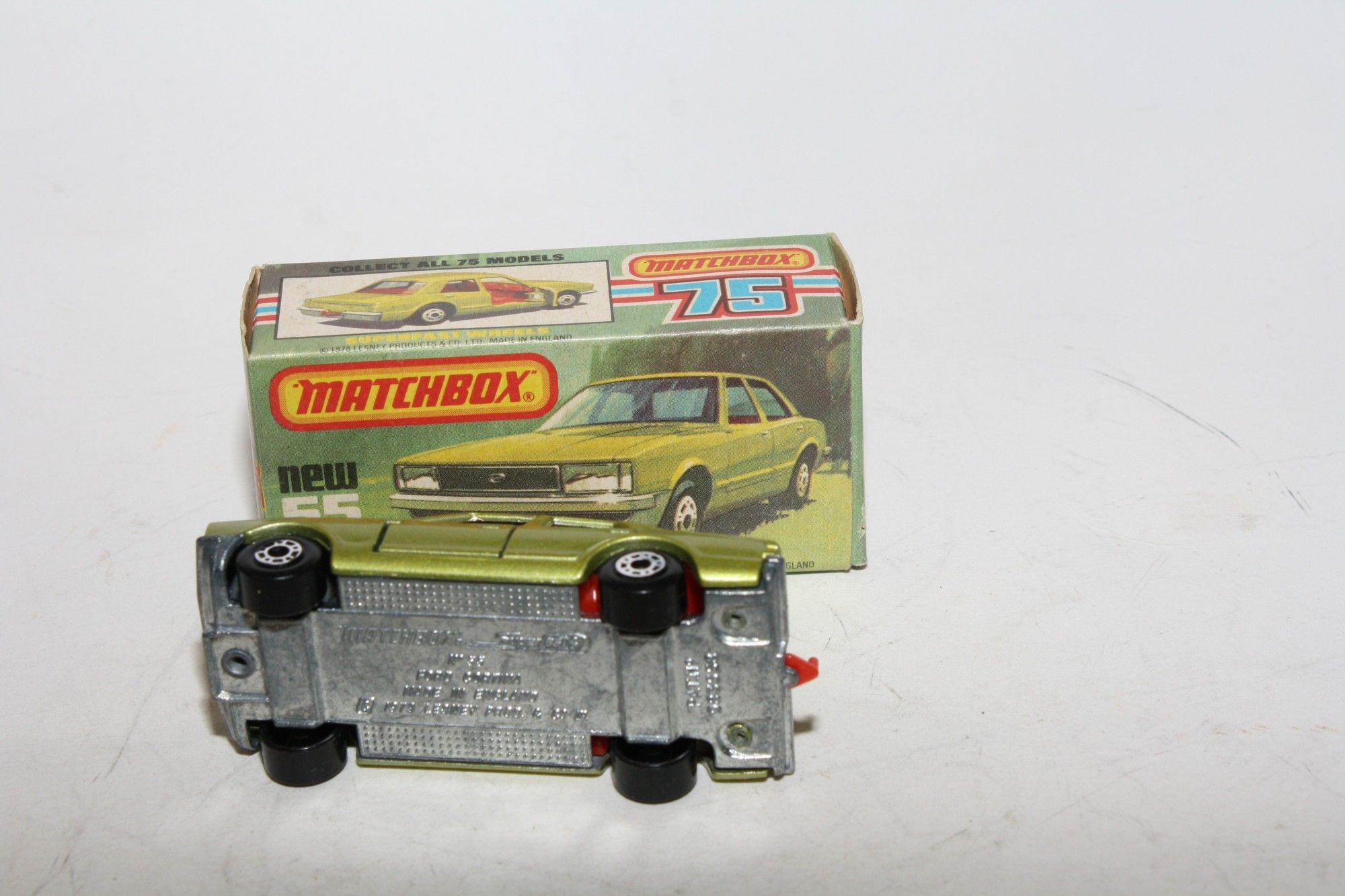 A superb example of this early 1970's Matchbox Superfast model. Part of a large collection bought as an investment in the 1970's and stored so never displayed. Gleaming original metallic lime green paintwork is virtually mint, a tiny factory fleabite on bonnet side edge, please study the photos for exact condition. Superfast wheels, all free rolling, strong suspension.
