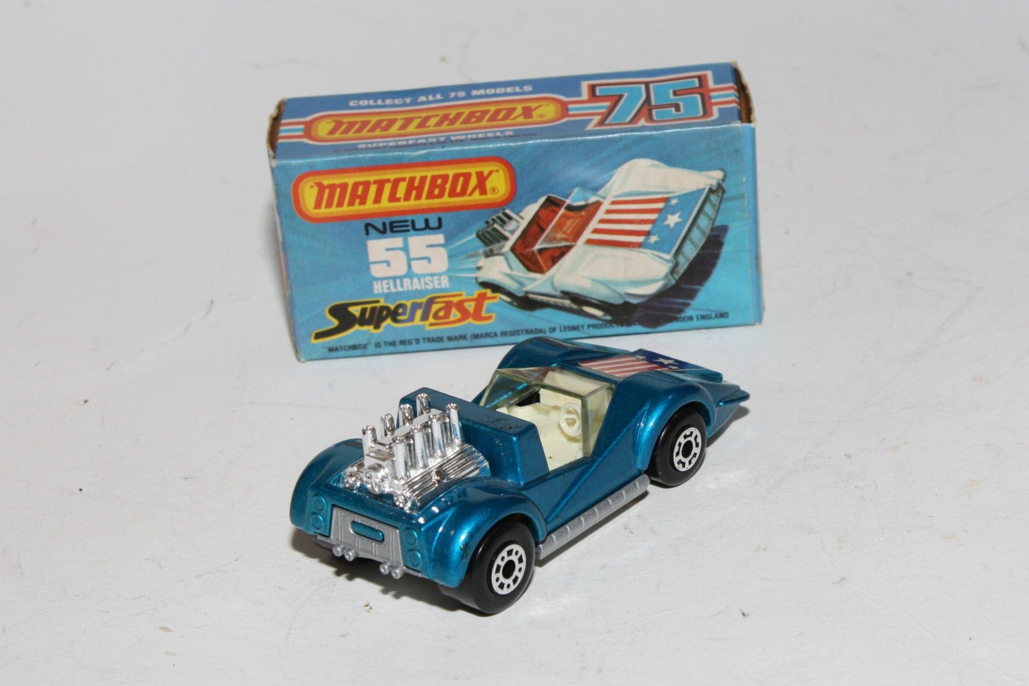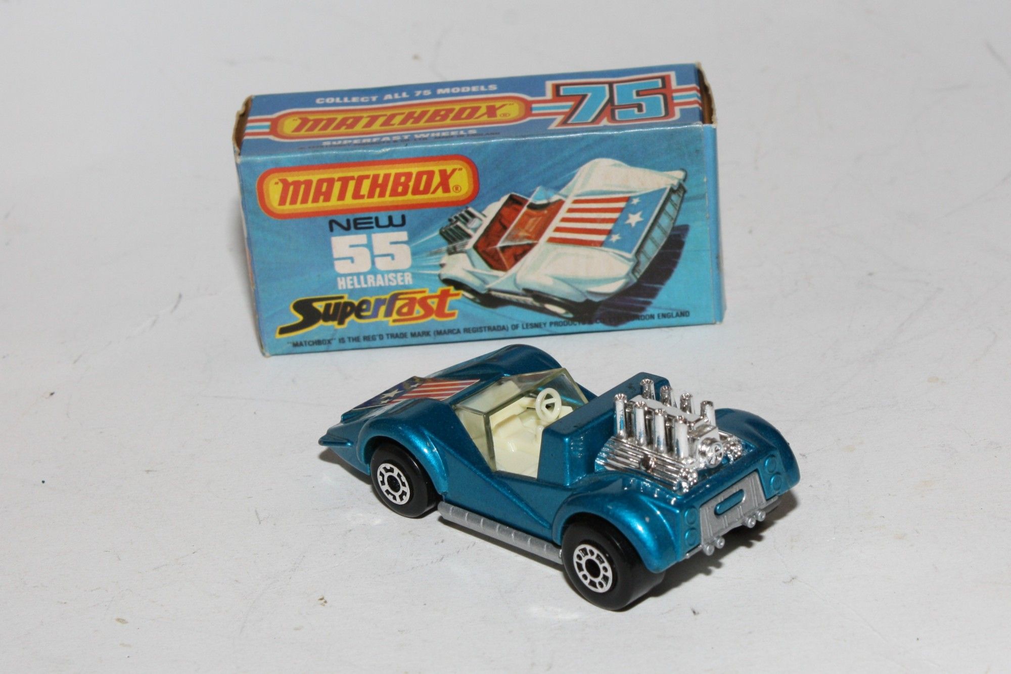 A superb example of this 1970's Matchbox Superfast model. Part of a large collection bought as an investment in the 1970's and stored so never displayed. Gleaming original metallic blue paintwork is mint, please study the photos for exact condition. Superfast wheels, crystal clear windscreen, white interior, silver base