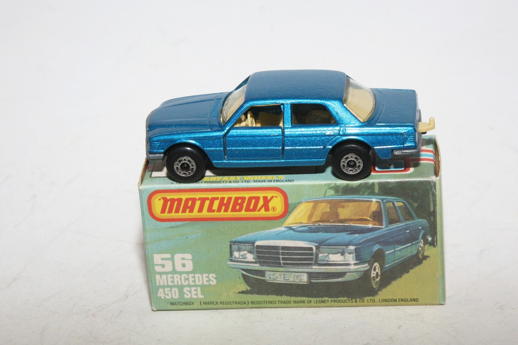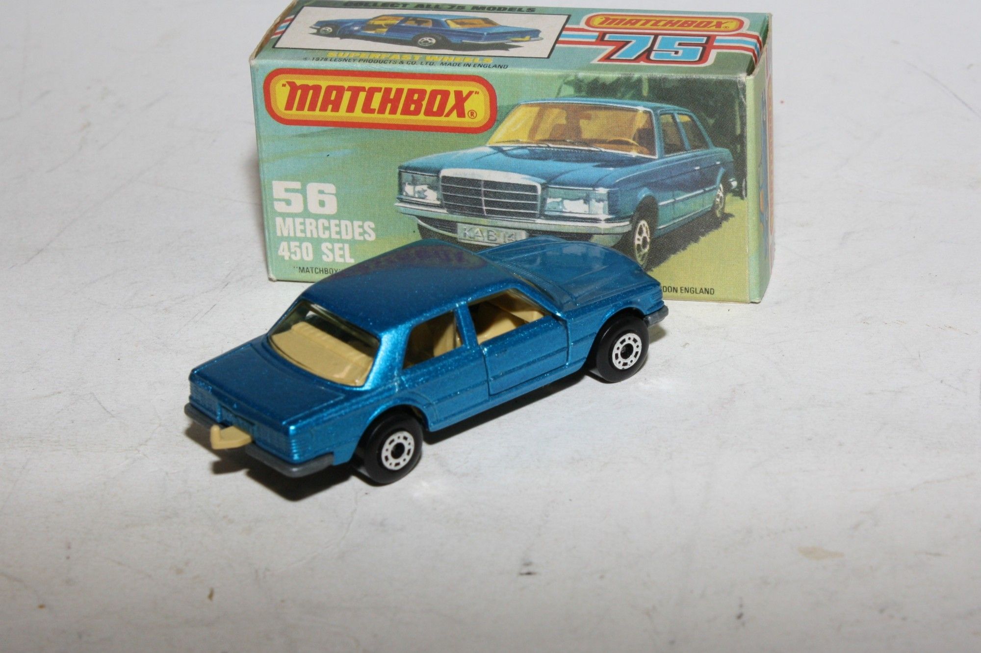 A superb example of this 1970's Matchbox Superfast model. Gleaming original metallic blue paintwork is mint, please study the photos for exact condition. Superfast wheels, clear windows, tan interior perfect, tow hook, all free rolling, unpainted base