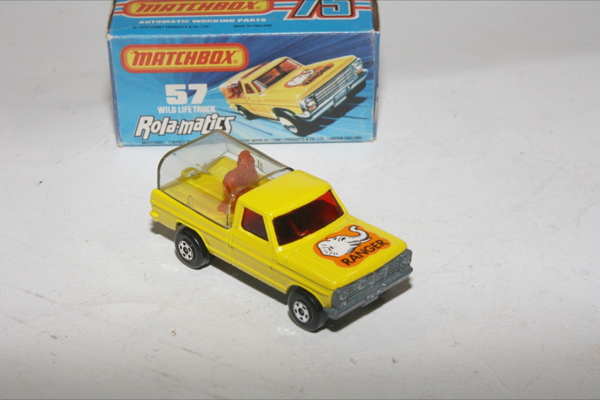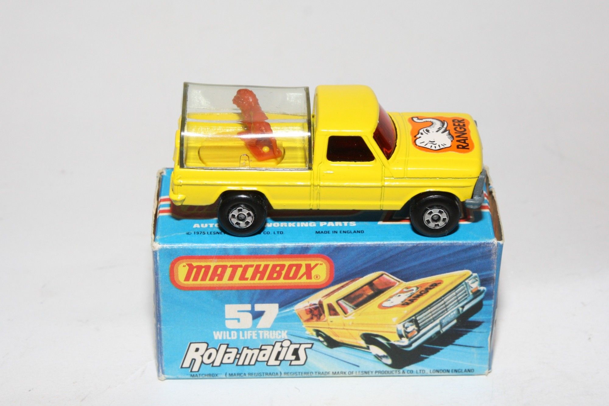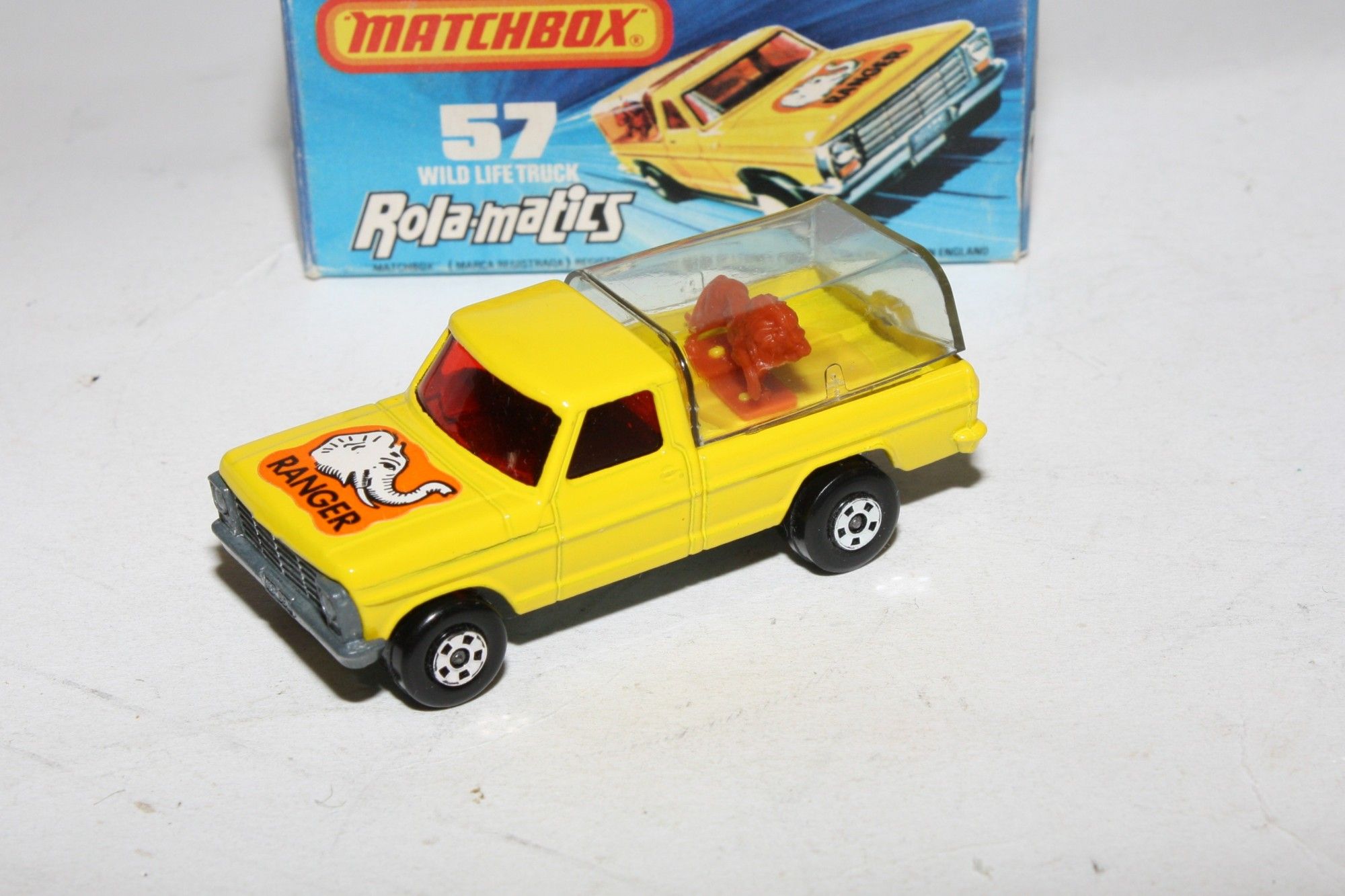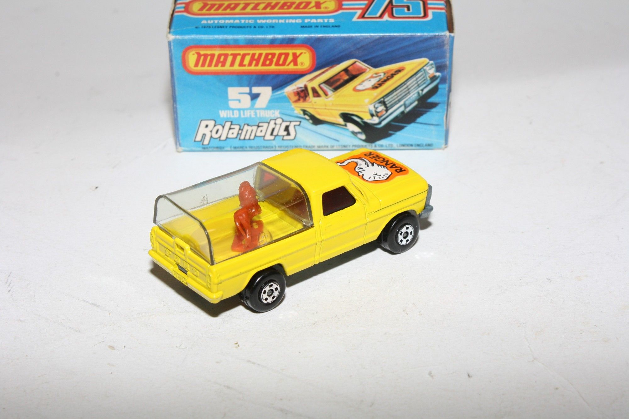 A very nice example of this 1970's Matchbox Superfast model. Gleaming original paintwork is mint, please study the photos for exact condition. Superfast wheels, all free rolling, strong suspension, clear tilt, lion movement feature in gwo, red windows. Unpainted base.