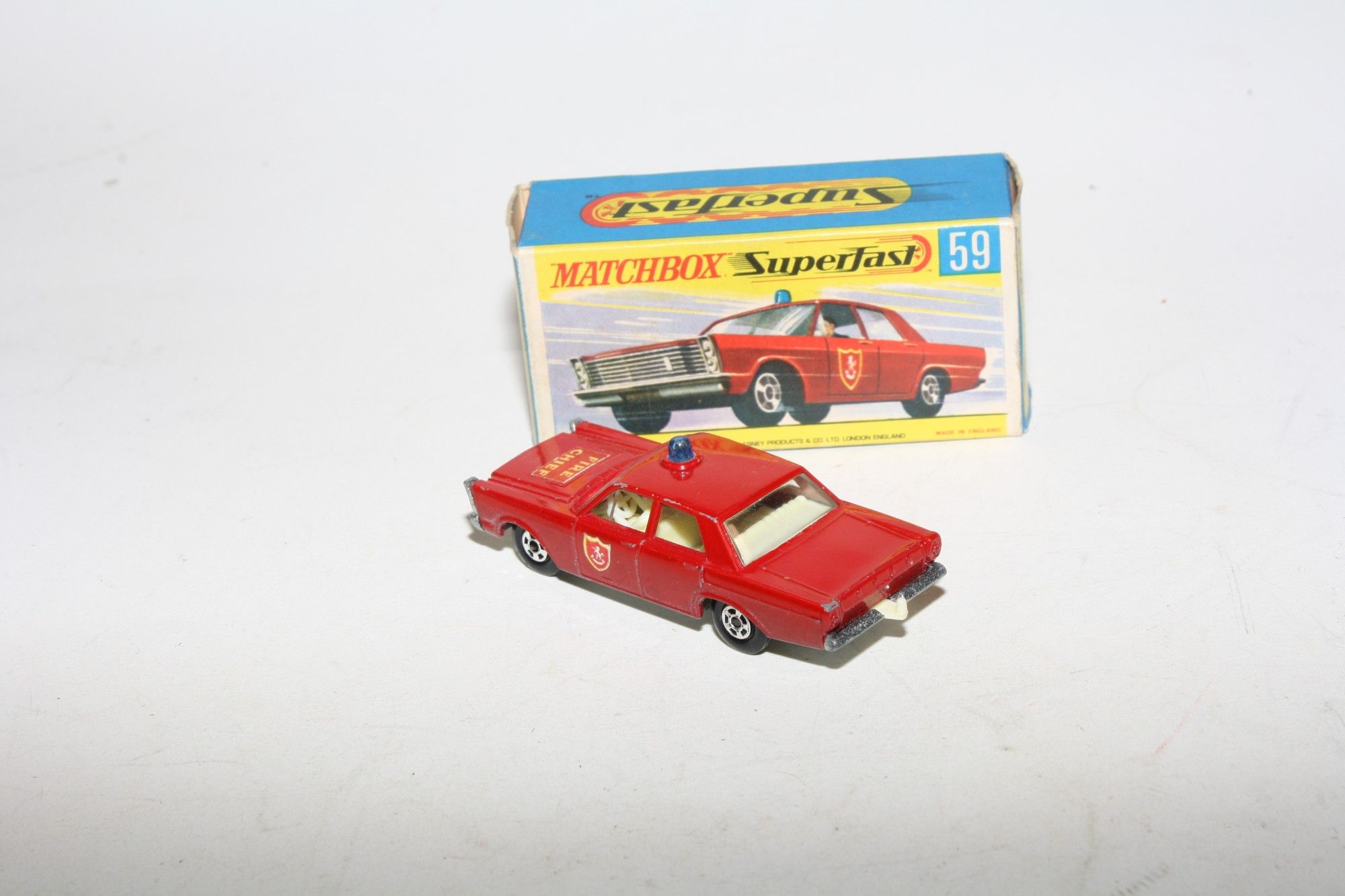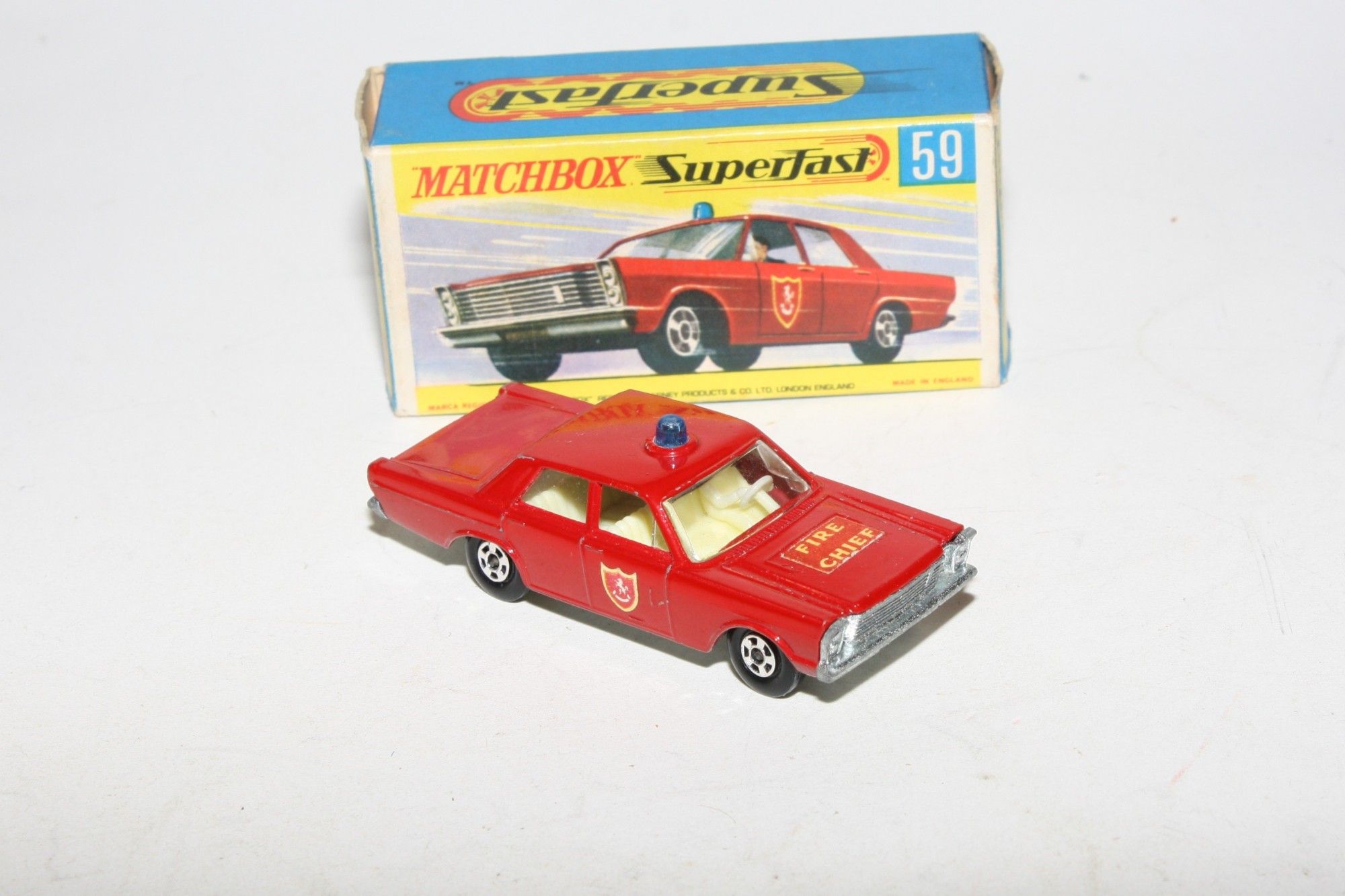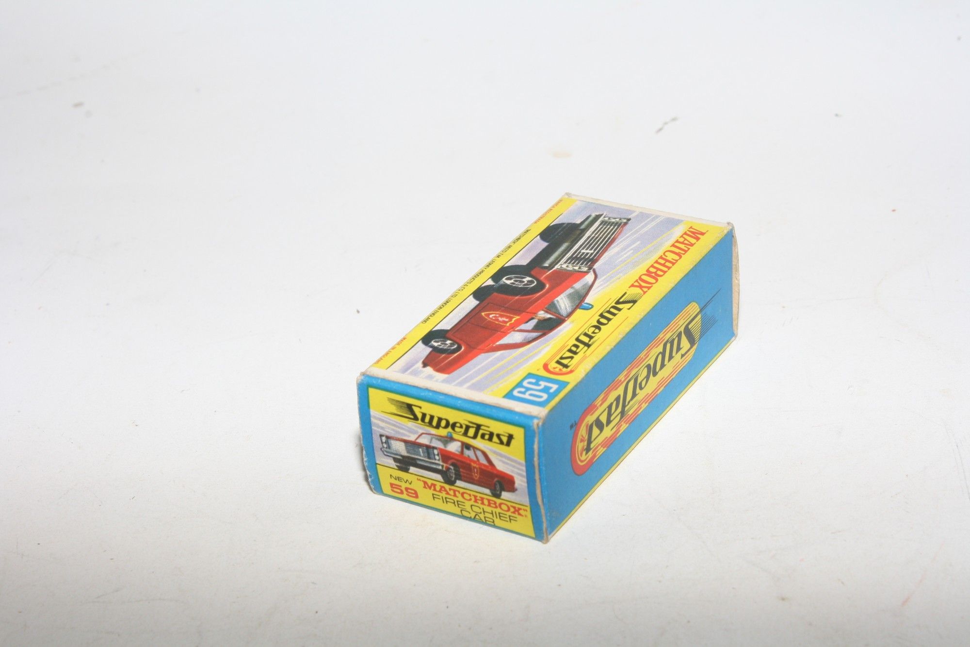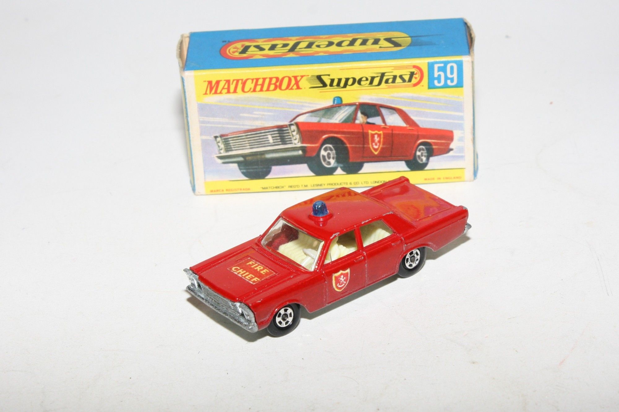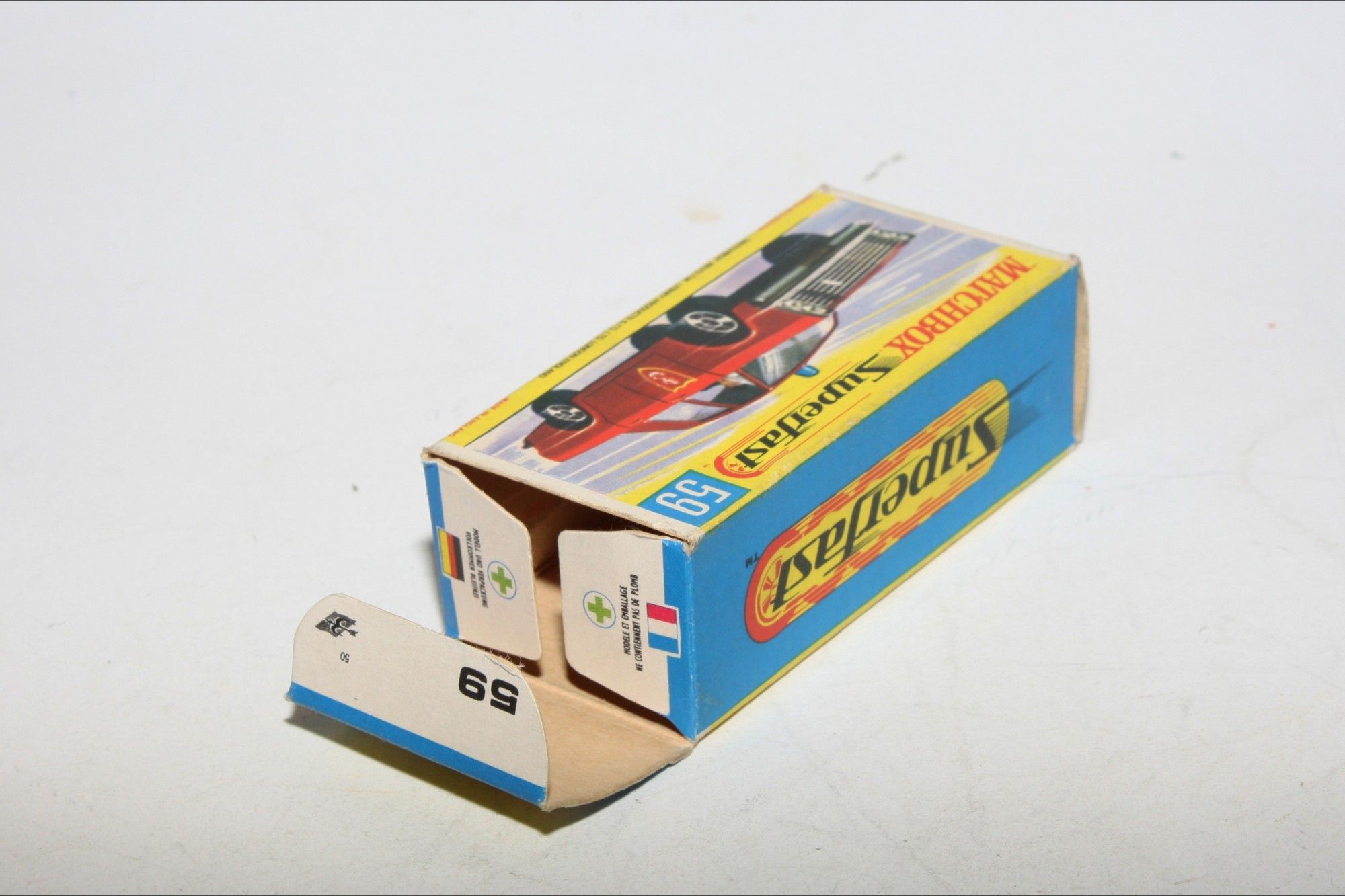 A superb example of this early 1970's Matchbox model. Gleaming original red paintwork is virtually mint, a couple slight rubs to raised edges, please study the photos for exact condition. Superfast wheels, all free rolling, strong suspension, crystal clear windows with white interior with driver, roof beacon, perfect stickers, Unpainted underside.