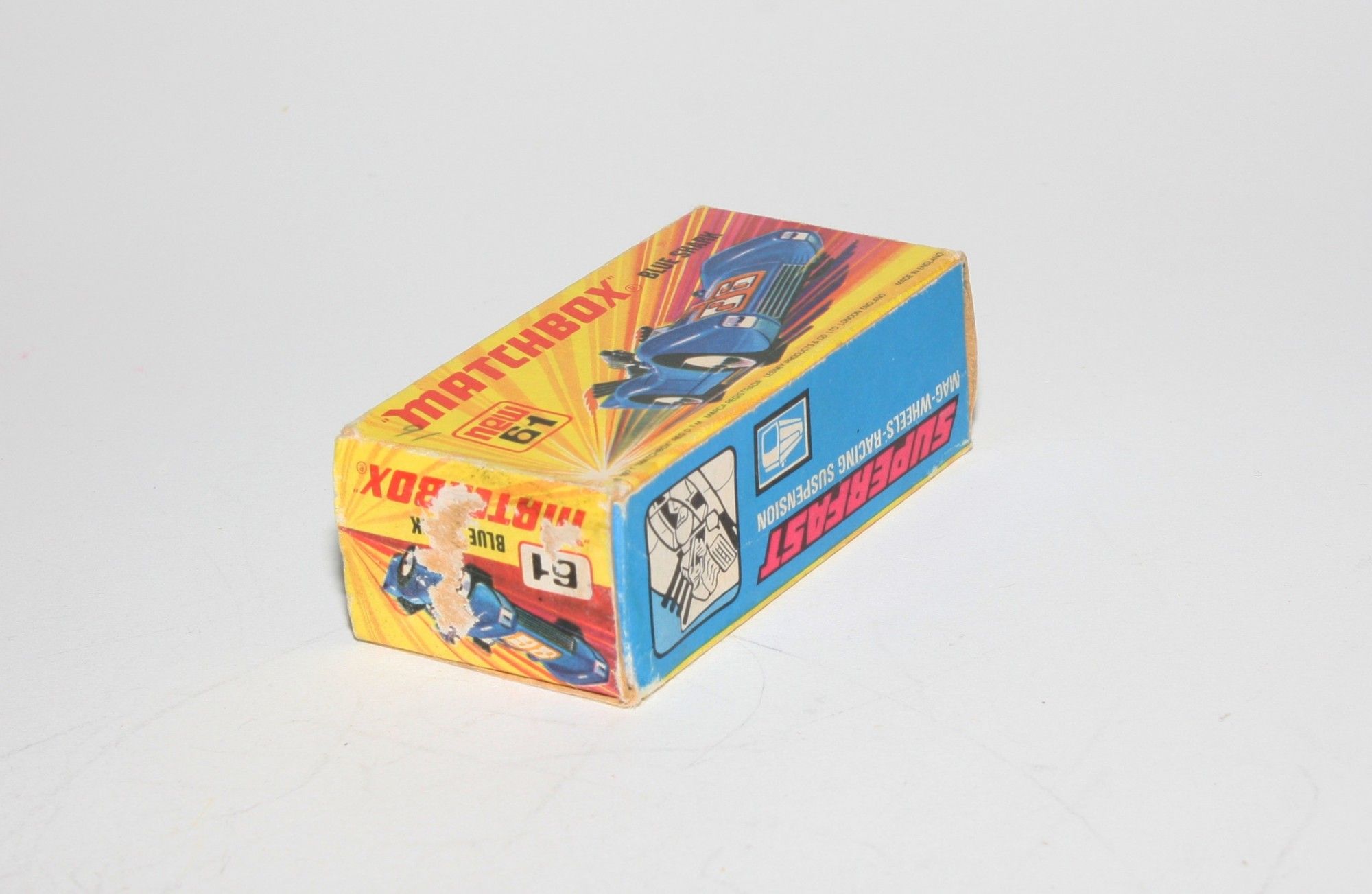 A lovely example of this earlier issue 1970's Harder to find Matchbox Superfast model. Gleaming original metallic blue paintwork is mint, please study the photos for exact condition. Superfast wide wheels, clear glass, sticker slightly grubby, unpainted base