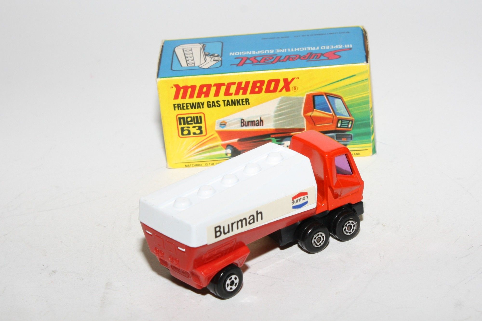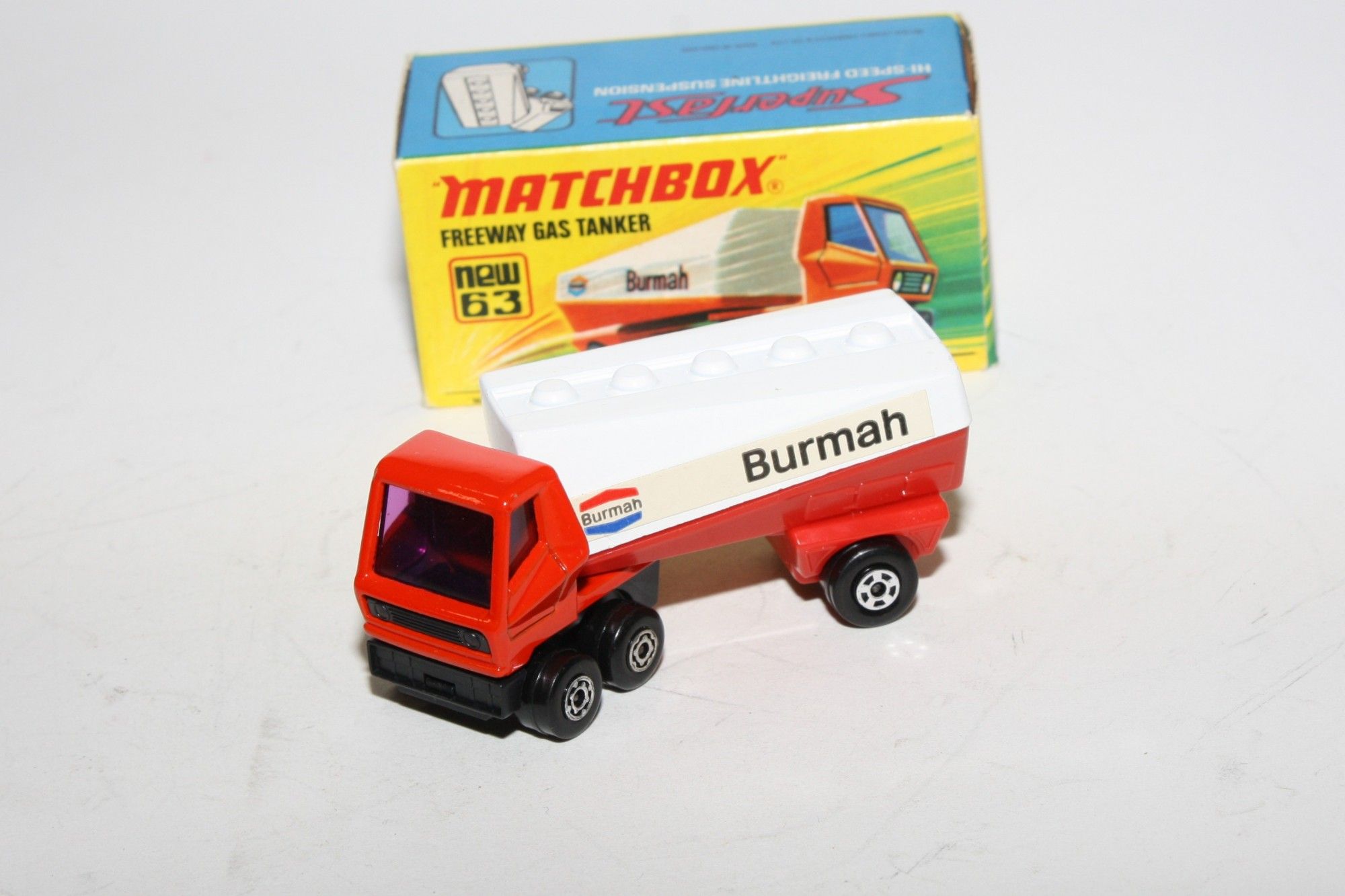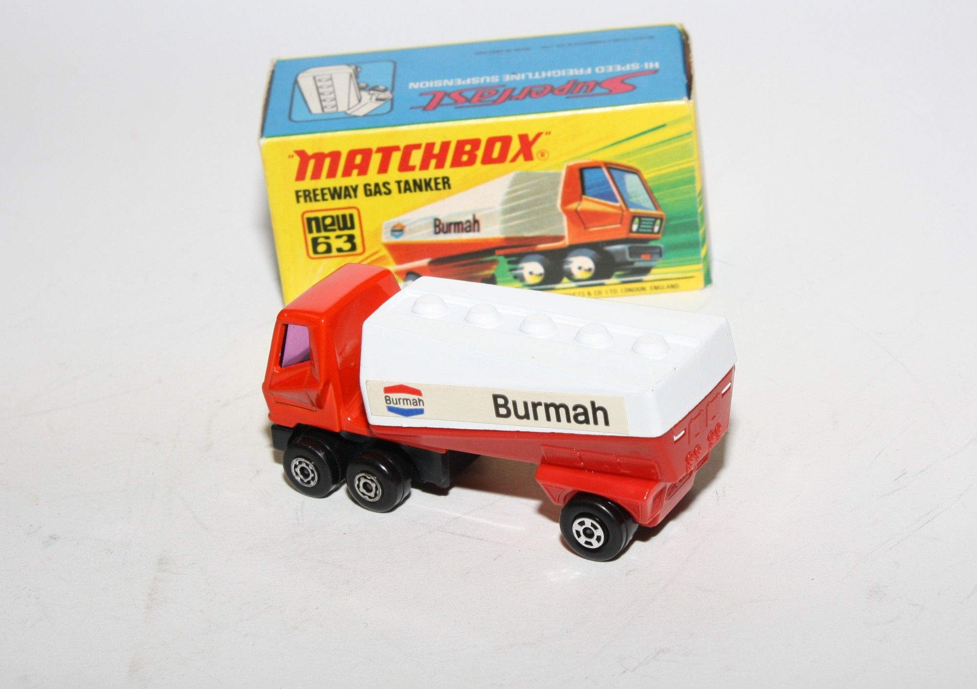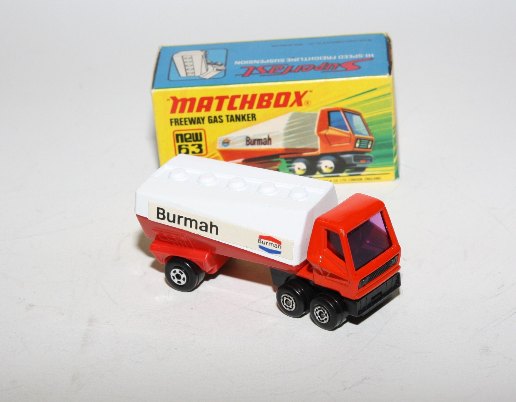 A superb example of this late 1970's Matchbox. Gleaming original Burmah livery paintwork is mint, please study the photos for exact condition. Superfast wheels, perfect purple windows and livery stickers. Mint underside
