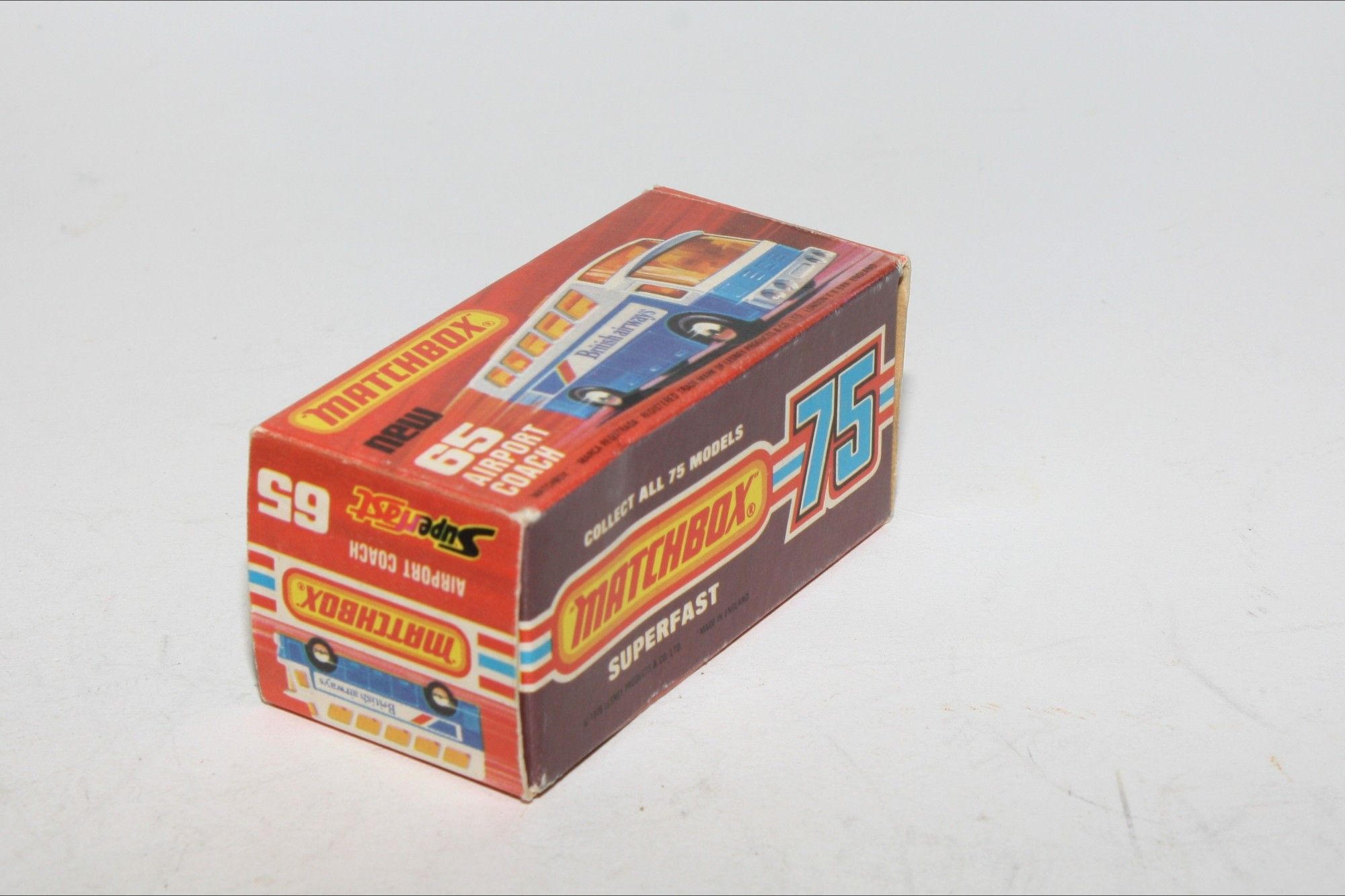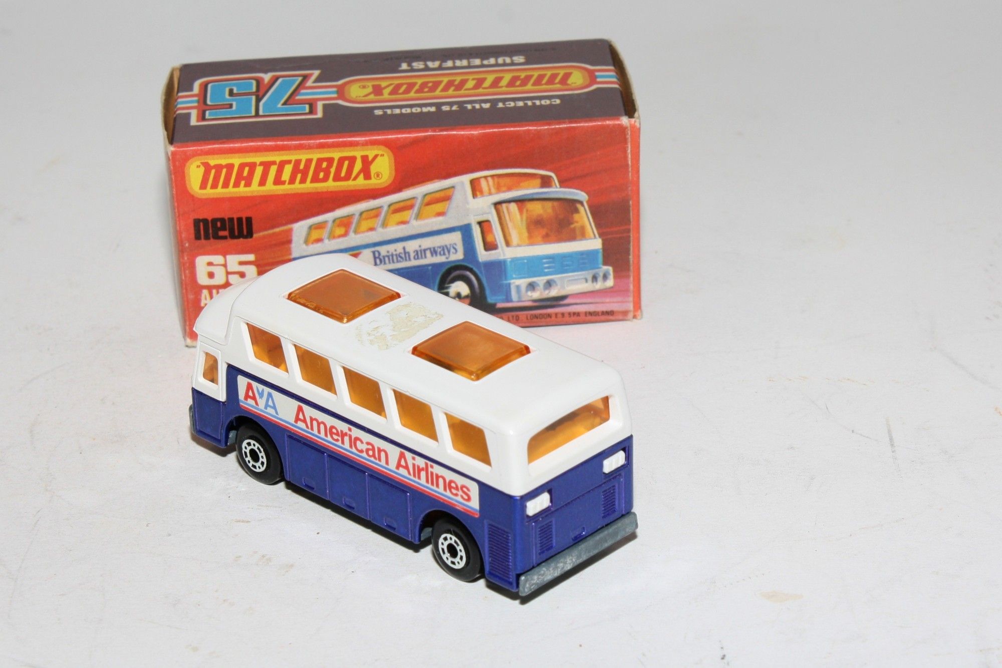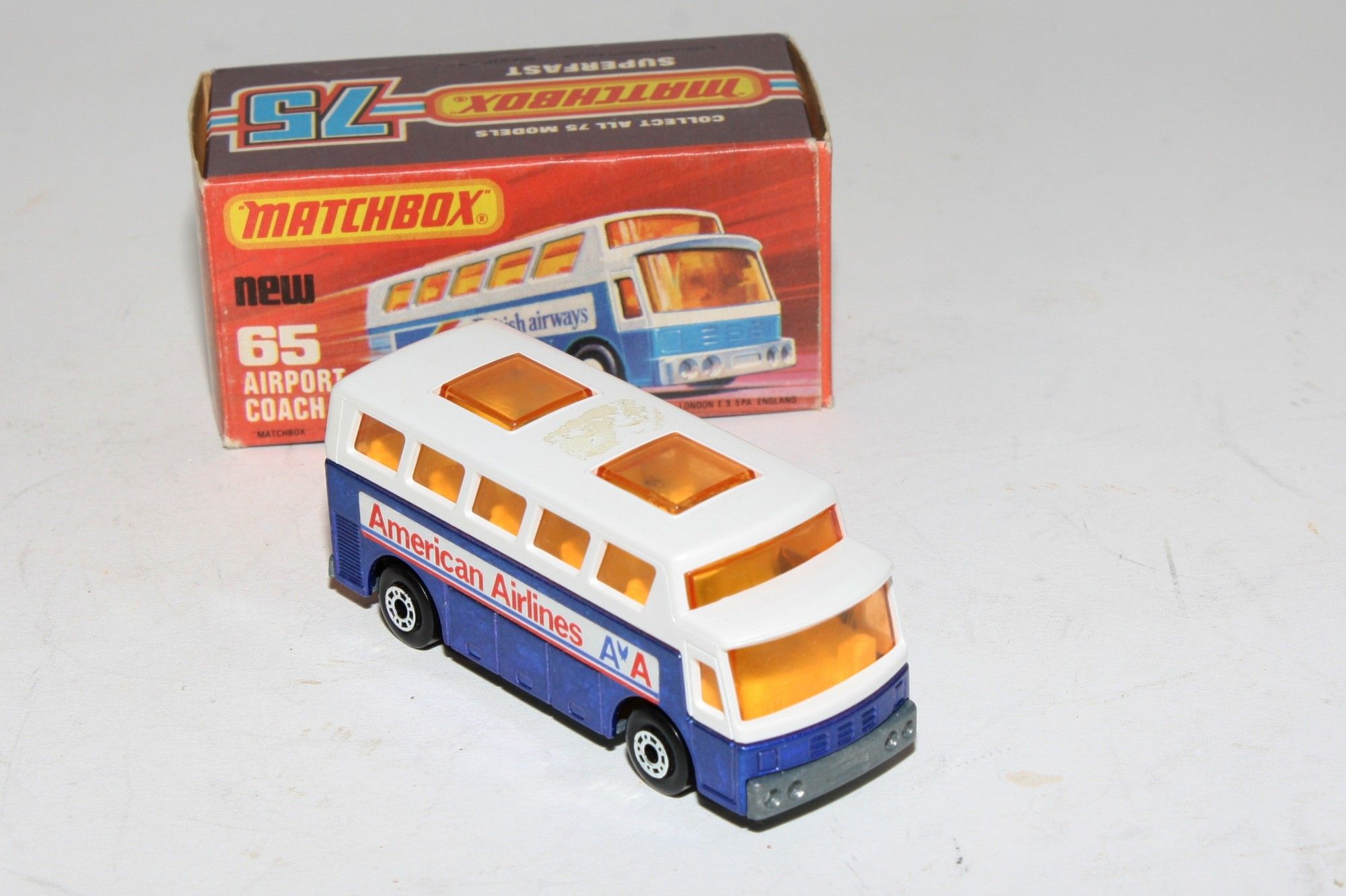 A superb example of this 1970's Matchbox model. Gleaming original paintwork is mint with white plastic top section (old sticker residue has been removed and plastic is mint), please study the photos for exact condition. Superfast wheels, all free rolling, crystal clear amber windows, white interior, perfect harder to find American Airlines livery stickers, bare metal base.
