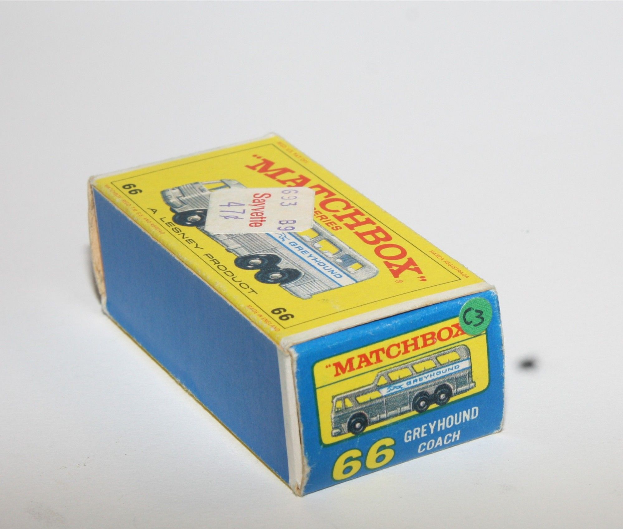 Comes with its original correct E4 regular wheel series carded box which is all complete with all flaps attached and in good firm condition with light rubs to edges and a tiny tear at one end, original Canadian Sayvette price label. Nice bright colours. Please study the photos.