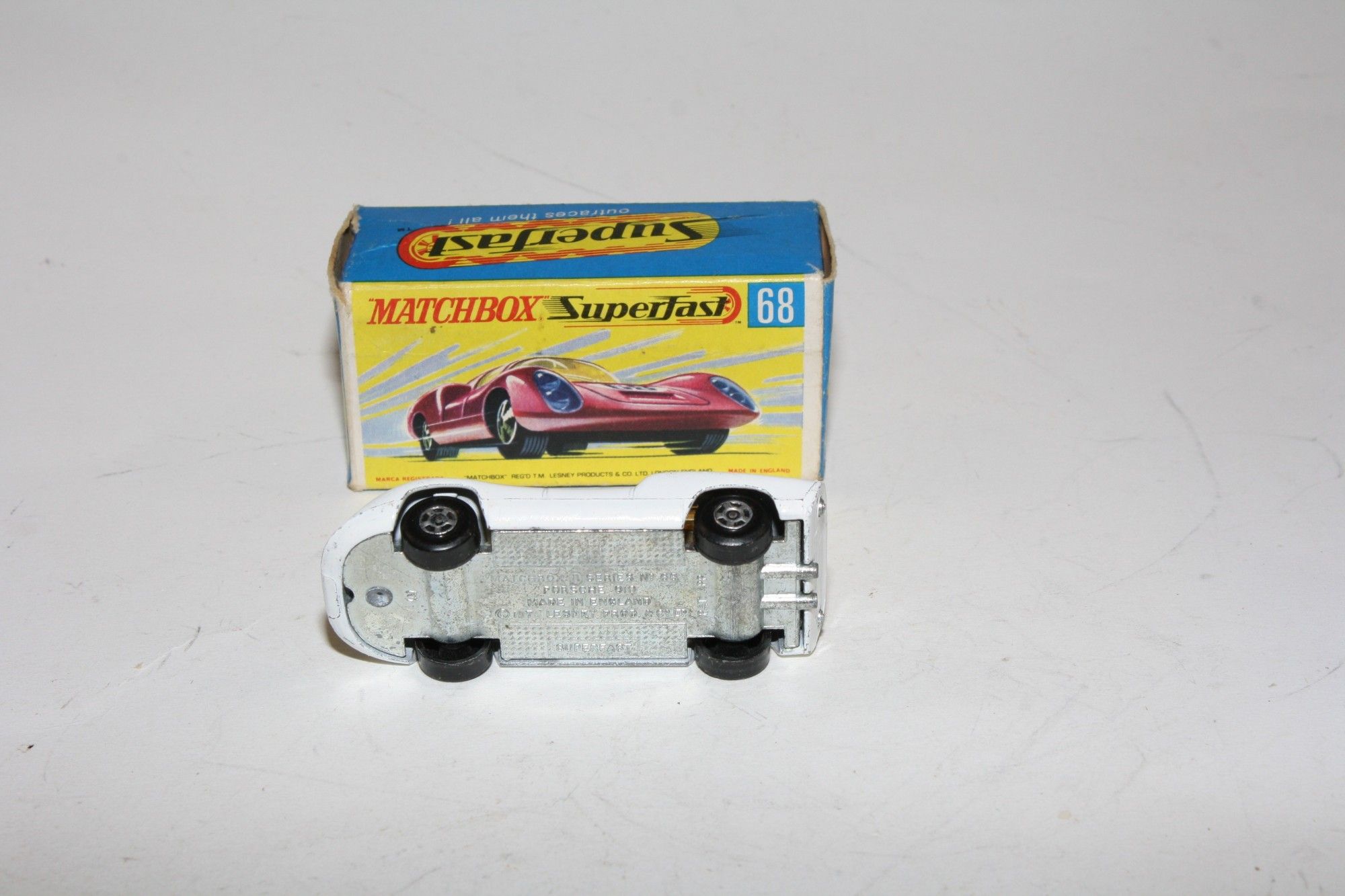 A lovely example of this earlier issue 1970's Matchbox Superfast model. Excellent original harder to find white paintwork with just some small rubs to raised edges, please study the photos for exact condition. Superfast wide wheels, perfect amber windows, pake yellow interior, unpainted base