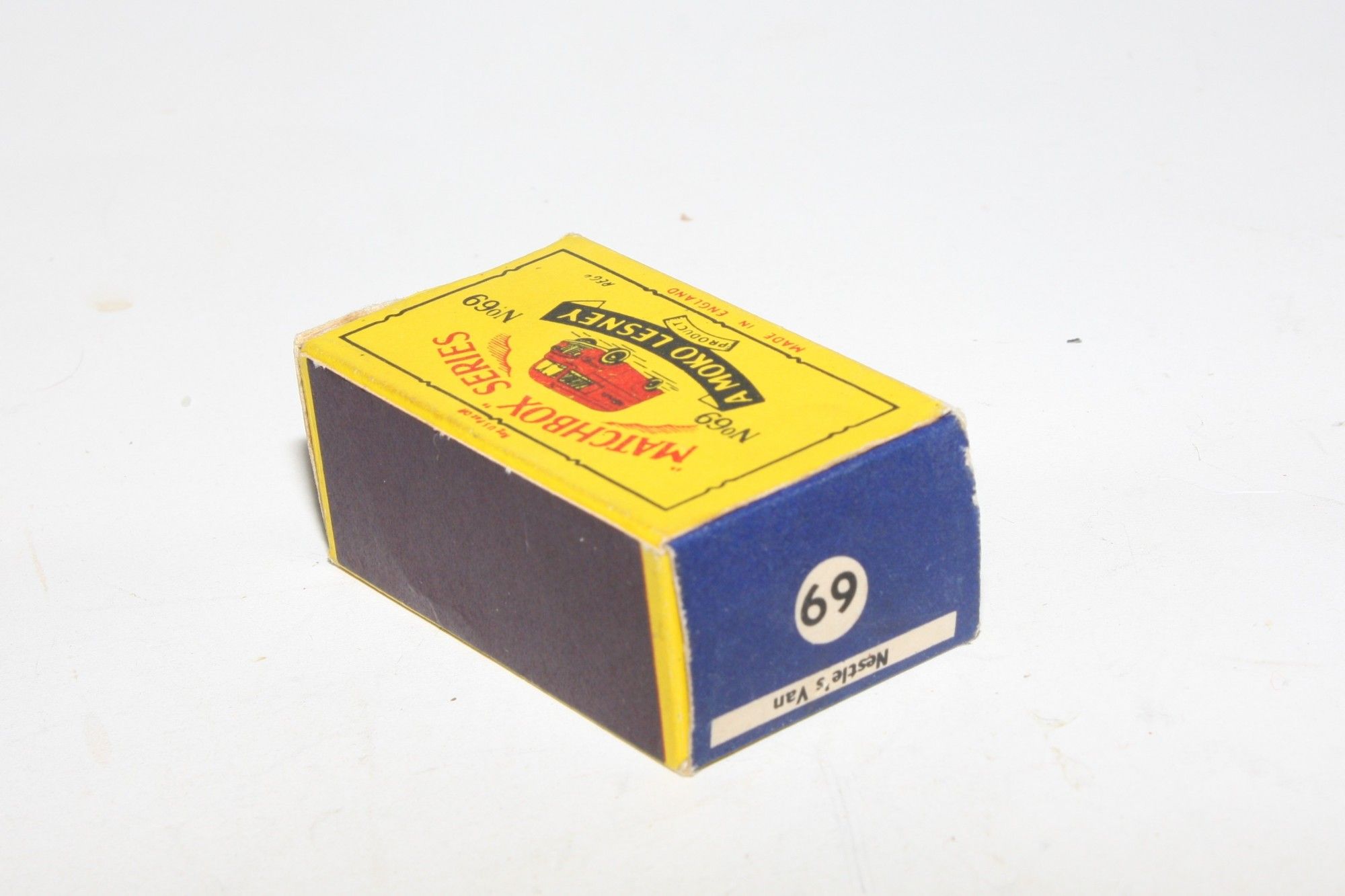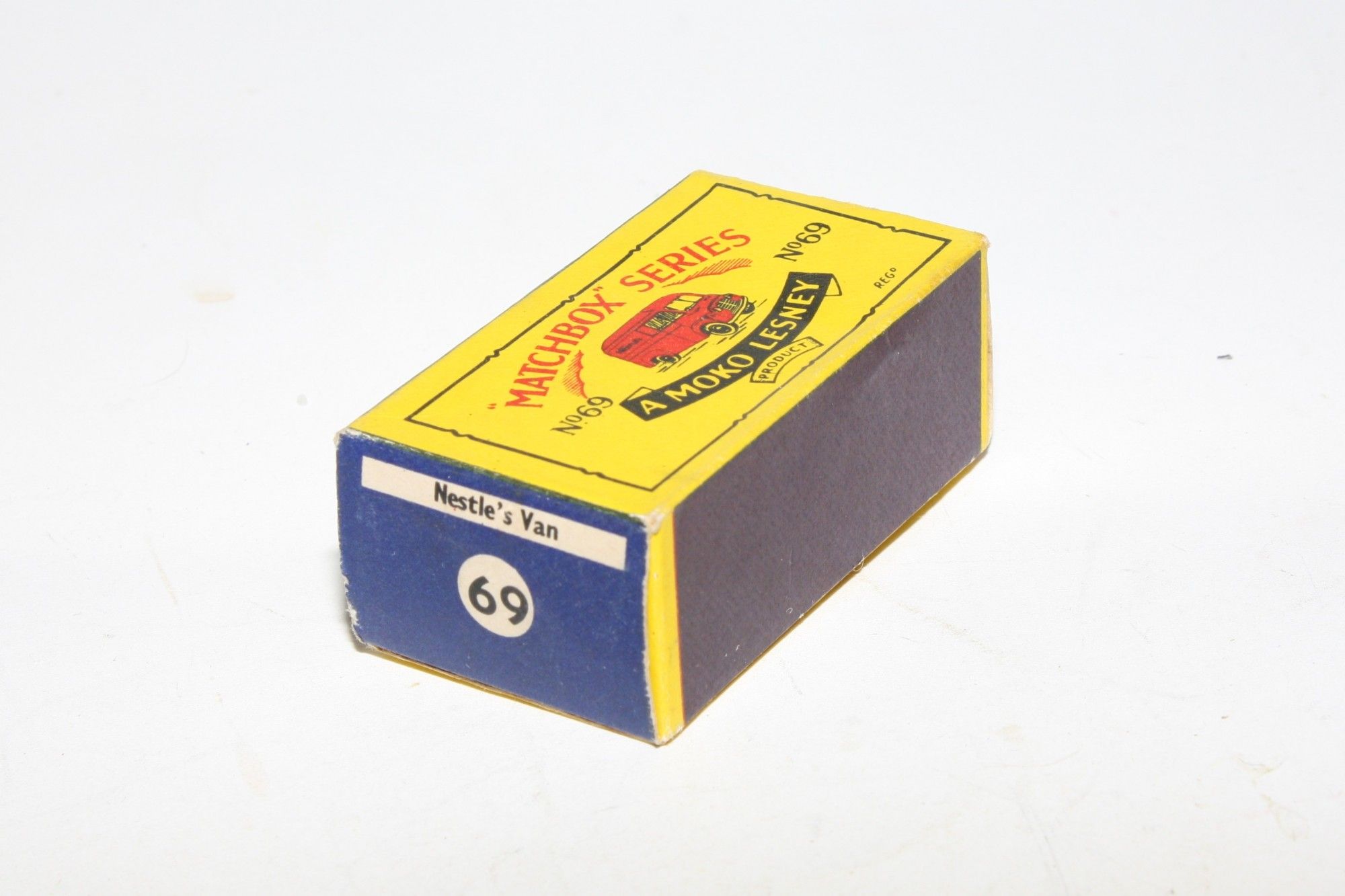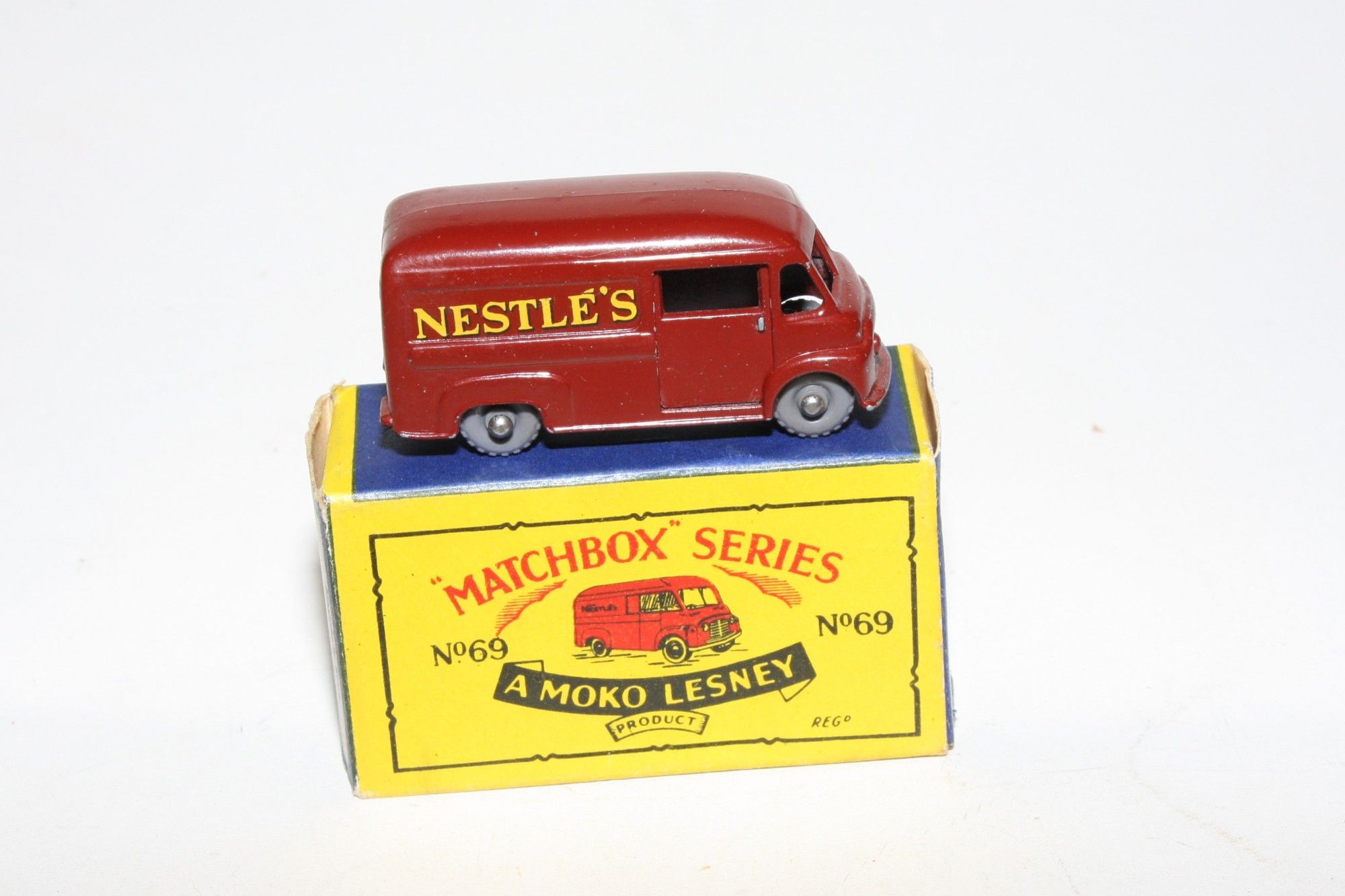 A lovely example of this harder to find late 1950's Matchbox. Gleaming original maroon paintwork is excellent, has a few nicks on raised edges, please study the photos for exact condition. KGPW, sliding door, perfect original Nestle's livery decals, black underside.