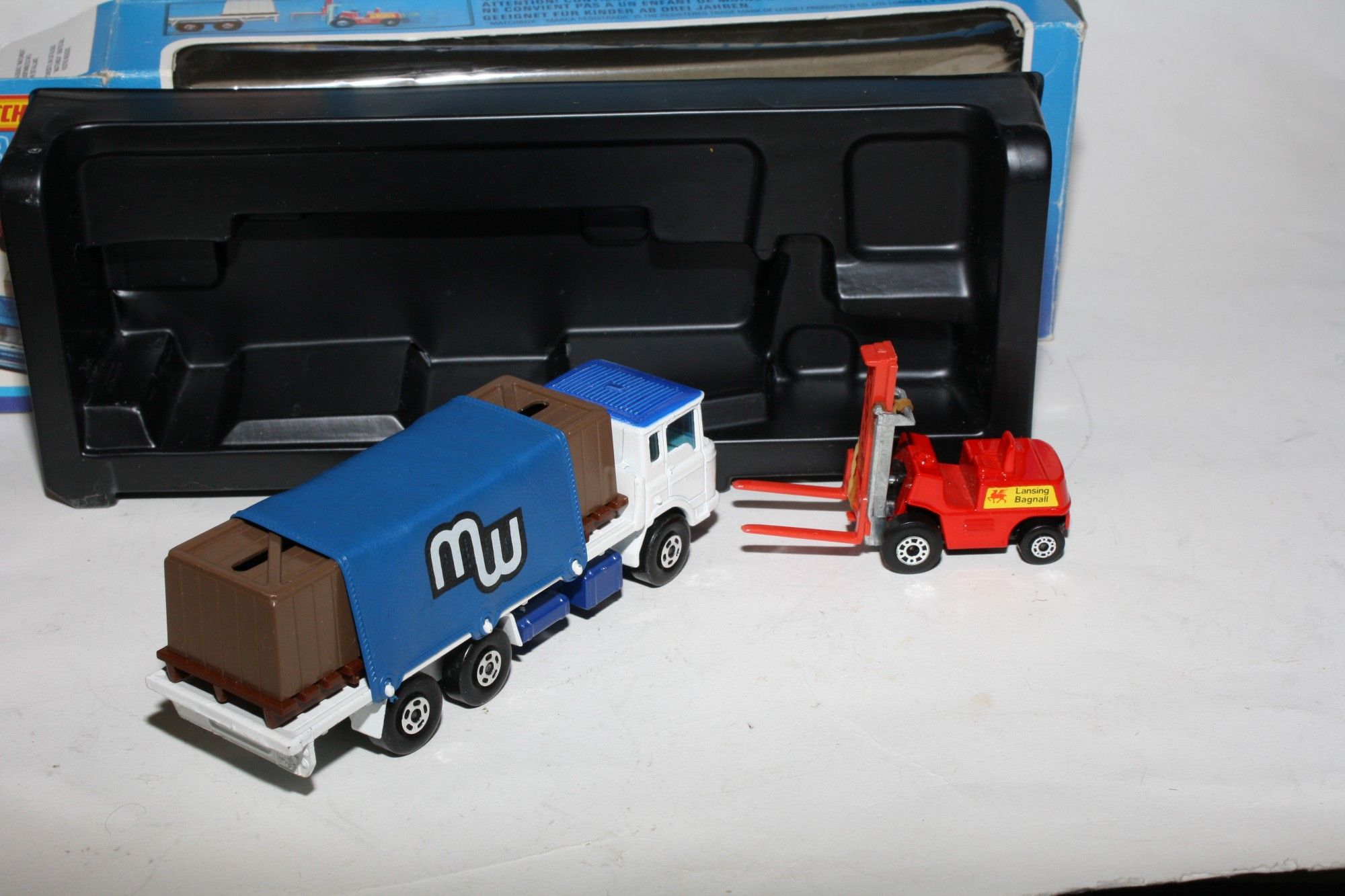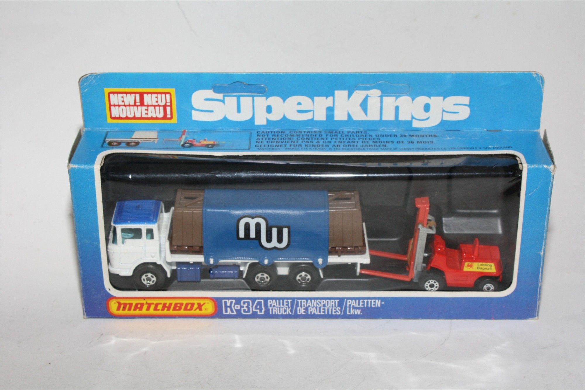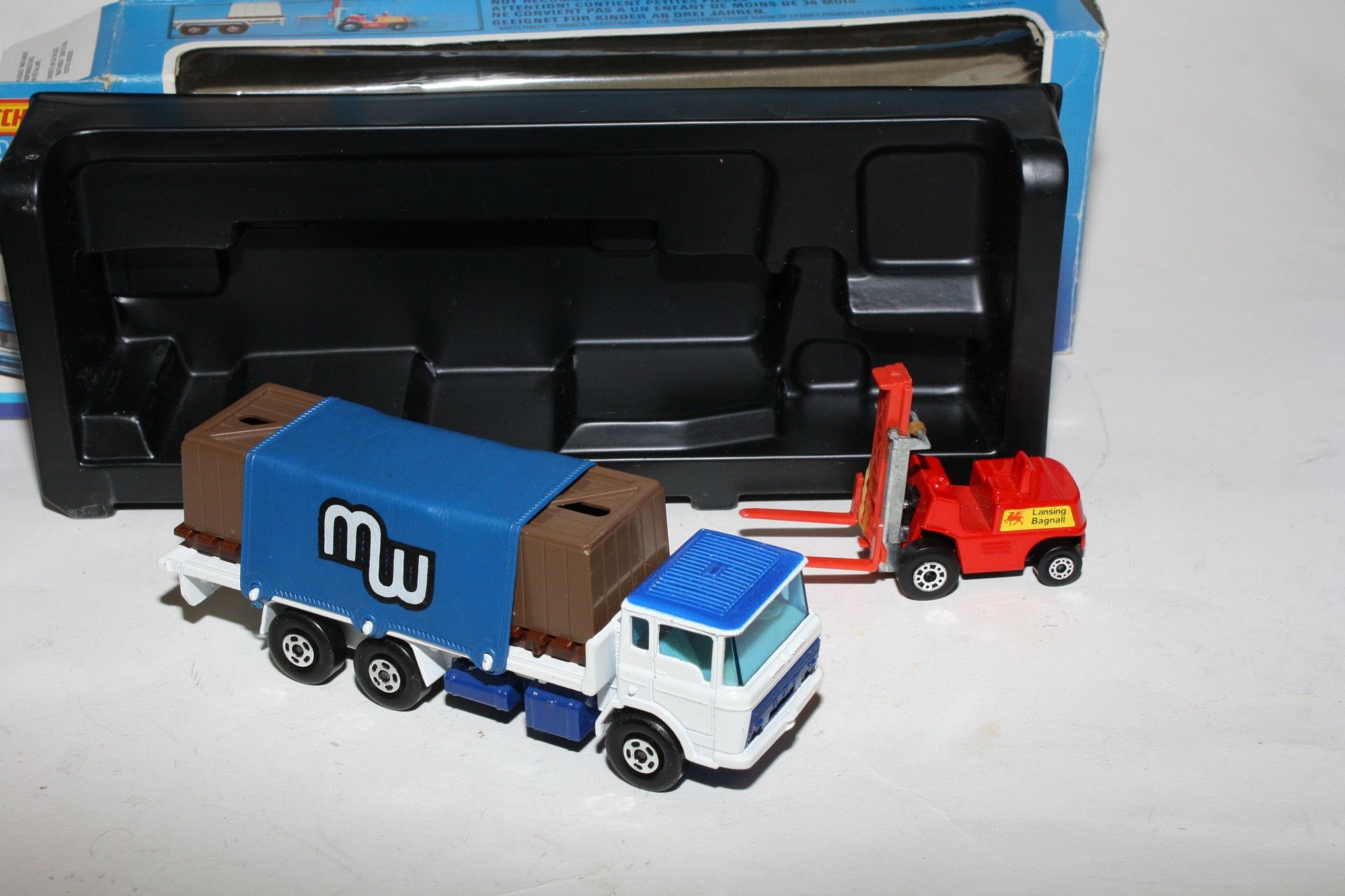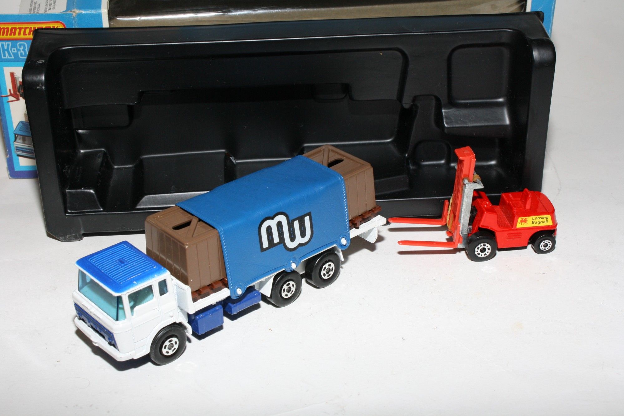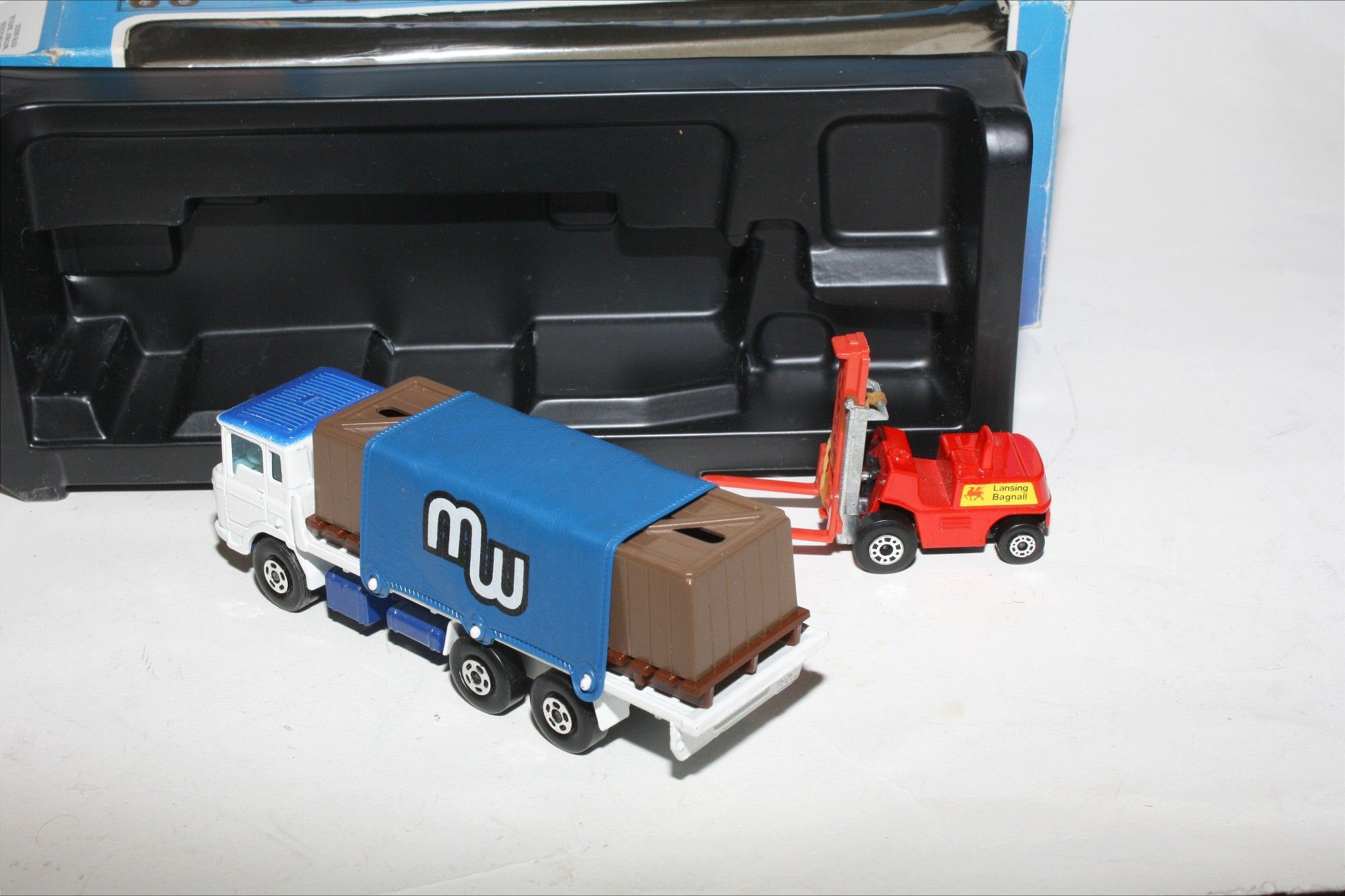 A superb example of this early issue 1980's SuperKings model set. Original paintwork on both models is mint, please study the photos for exact condition. Perfect original Superfast wheels, crystal clear windows, pale blue interior, perfect stickers, 3 pallets, containers and tarp. Mint undersides .