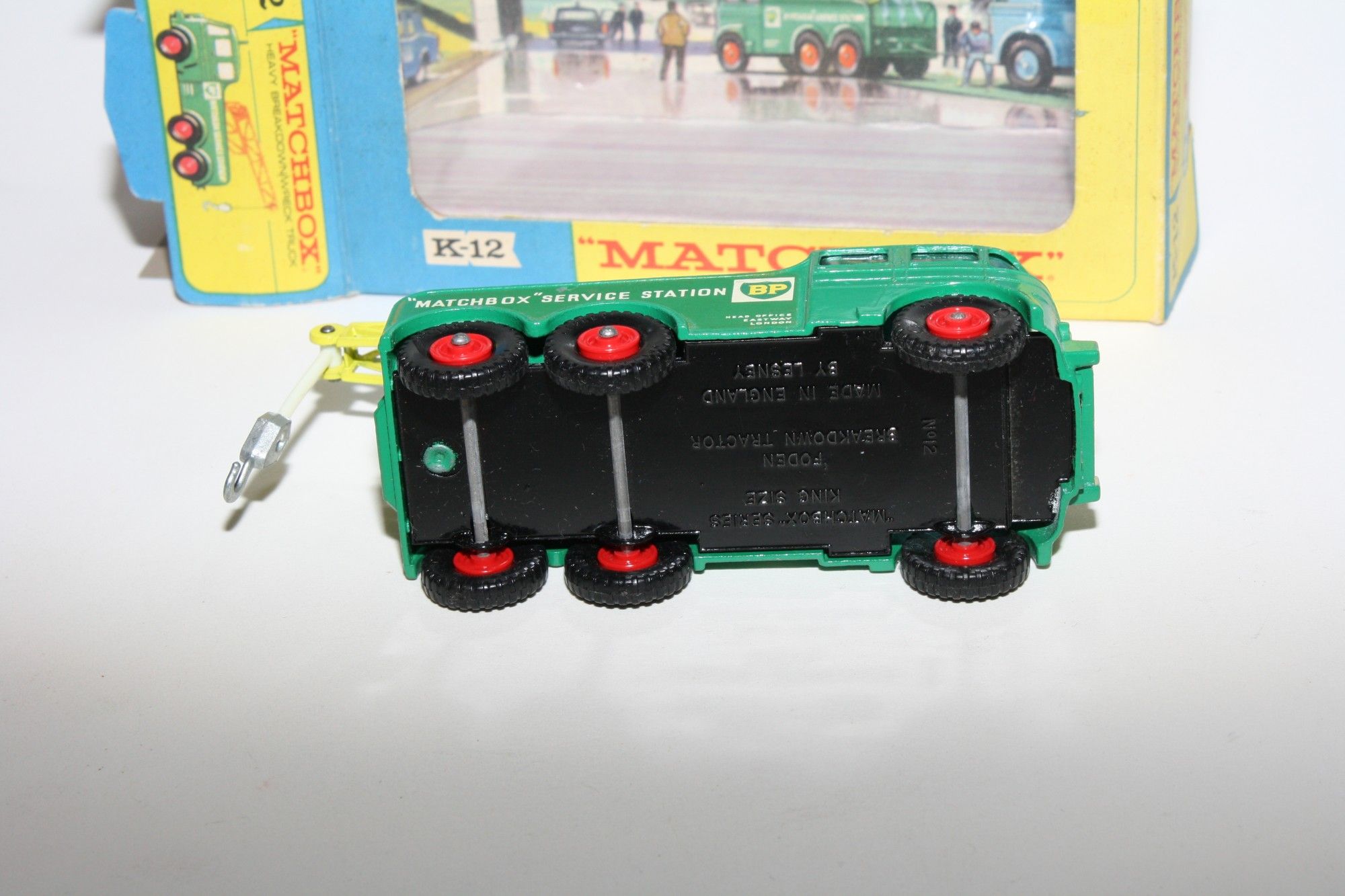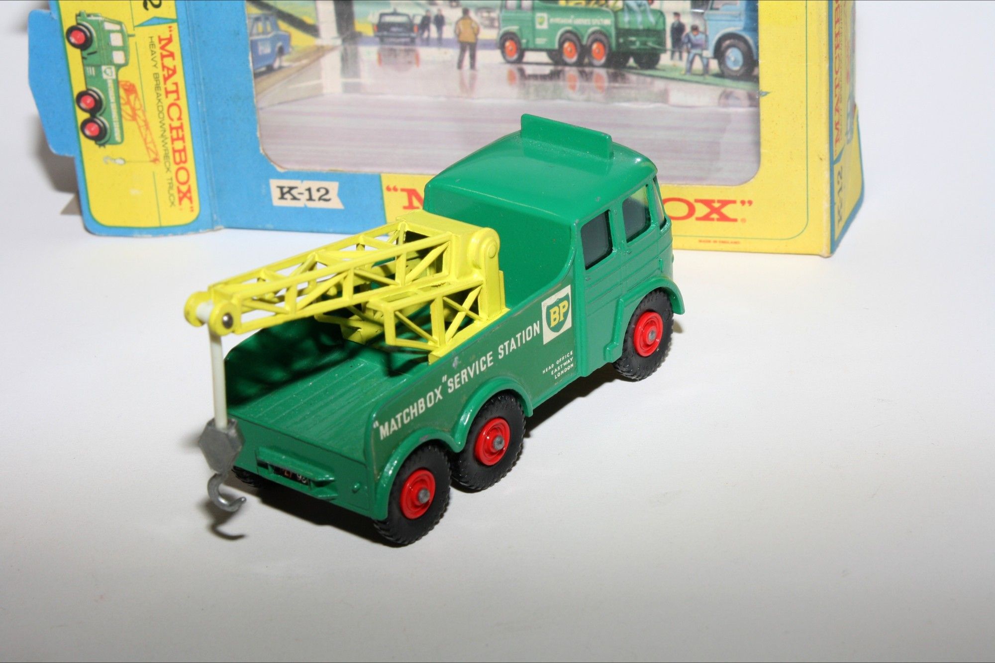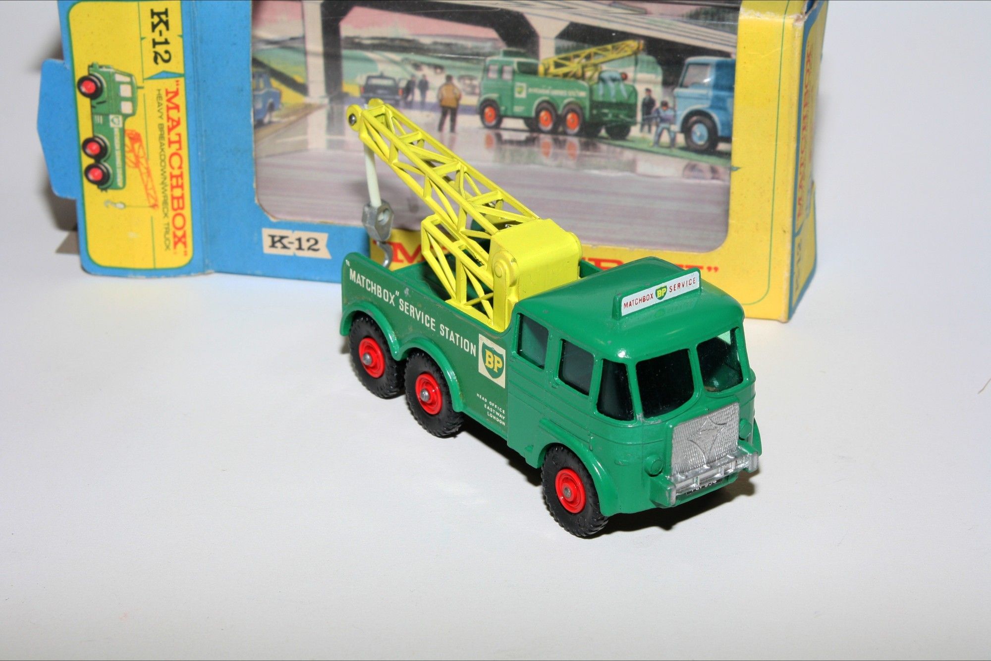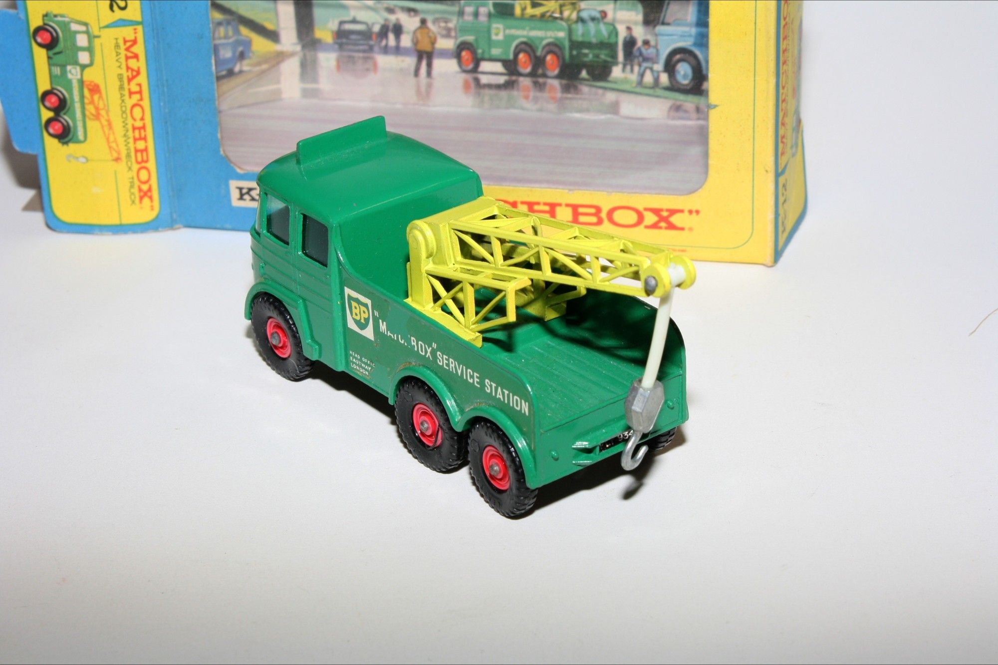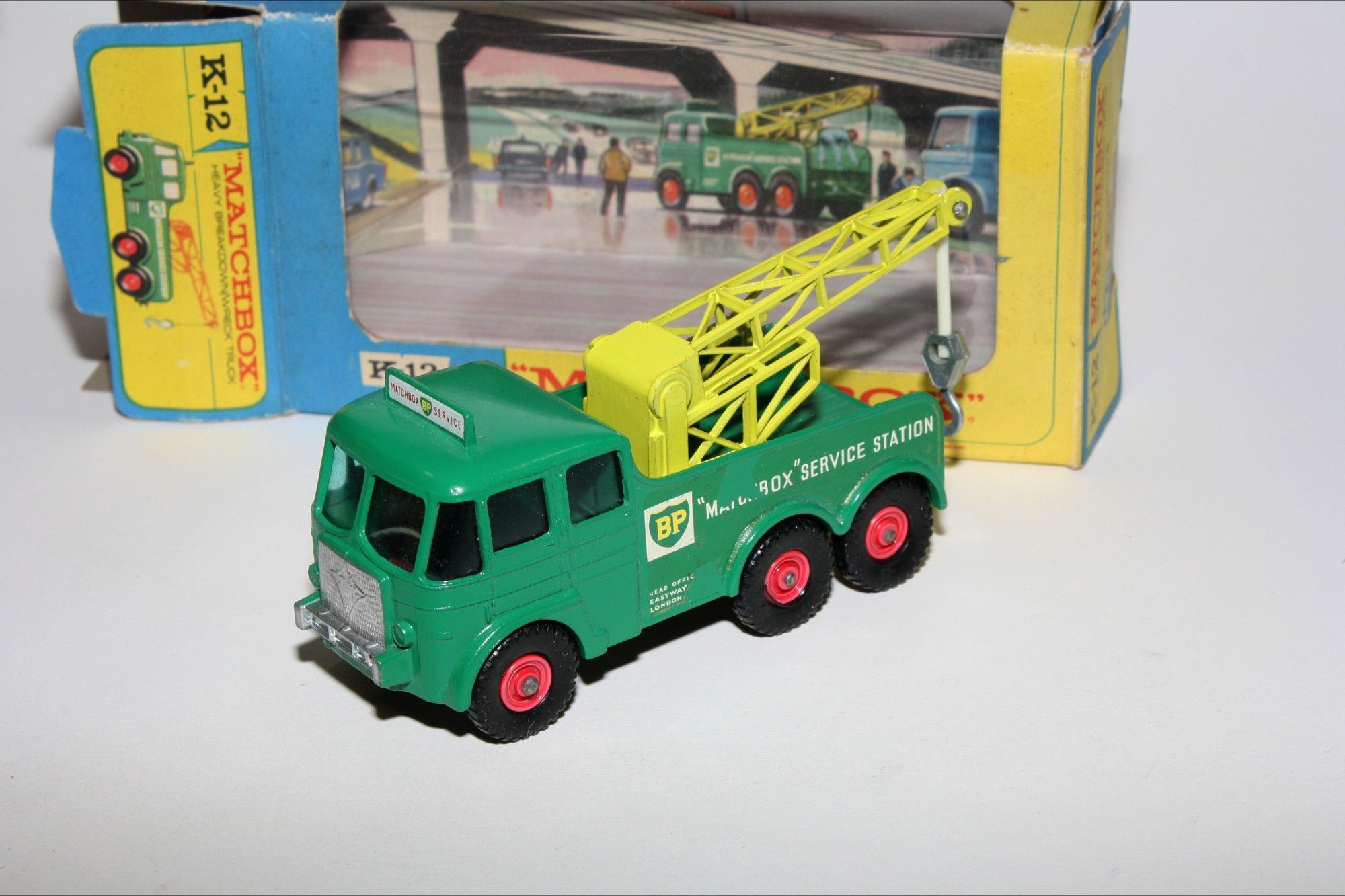 A nice example of this mid 1960's King Size model. Gleaming original paintwork is excellent with a couple of nicks, please study the photos for exact condition. Original plastic tyres on red plastic hubs, all good windows, BP decals good with some small loss to one side, crane complete. Underside excellent