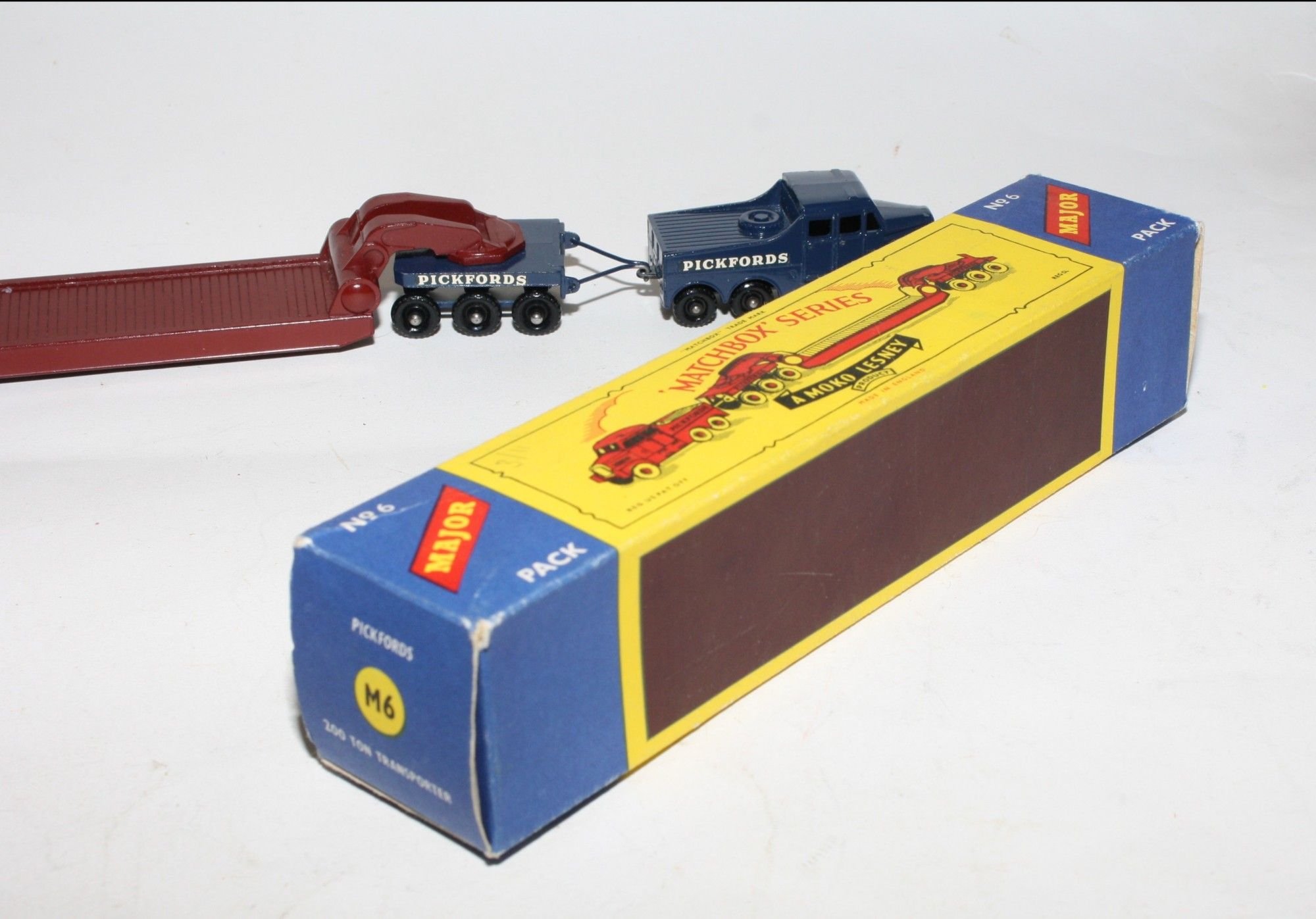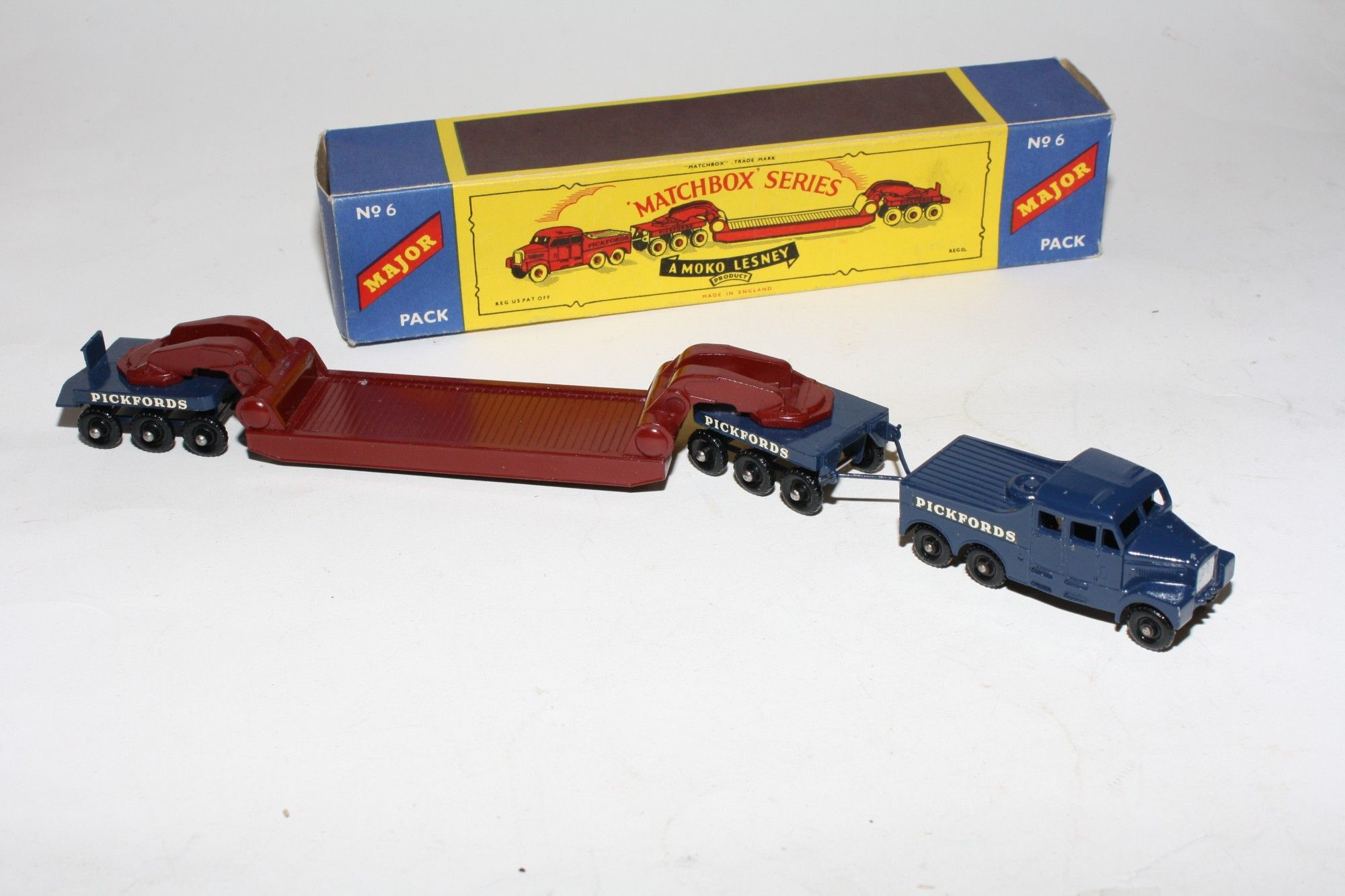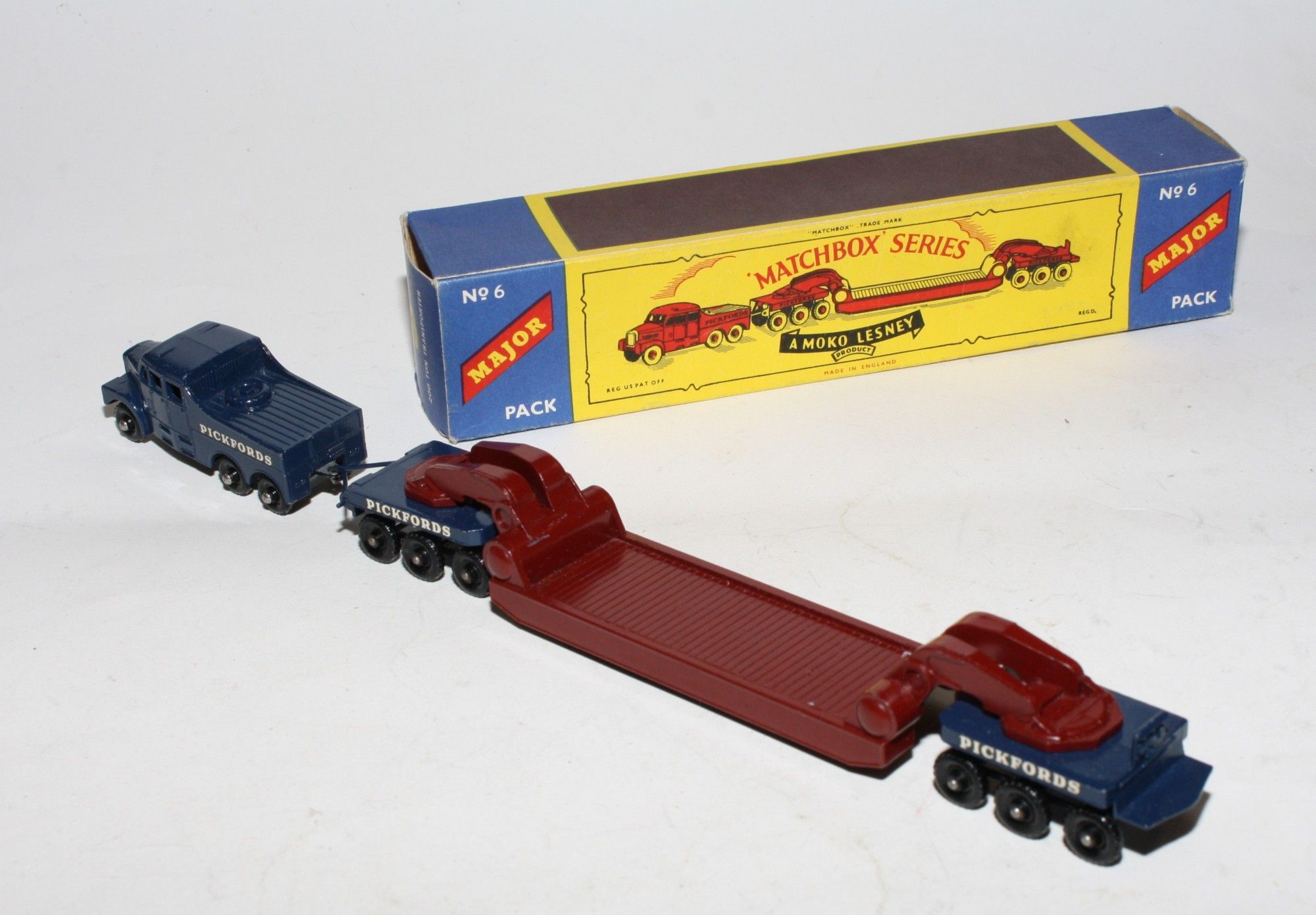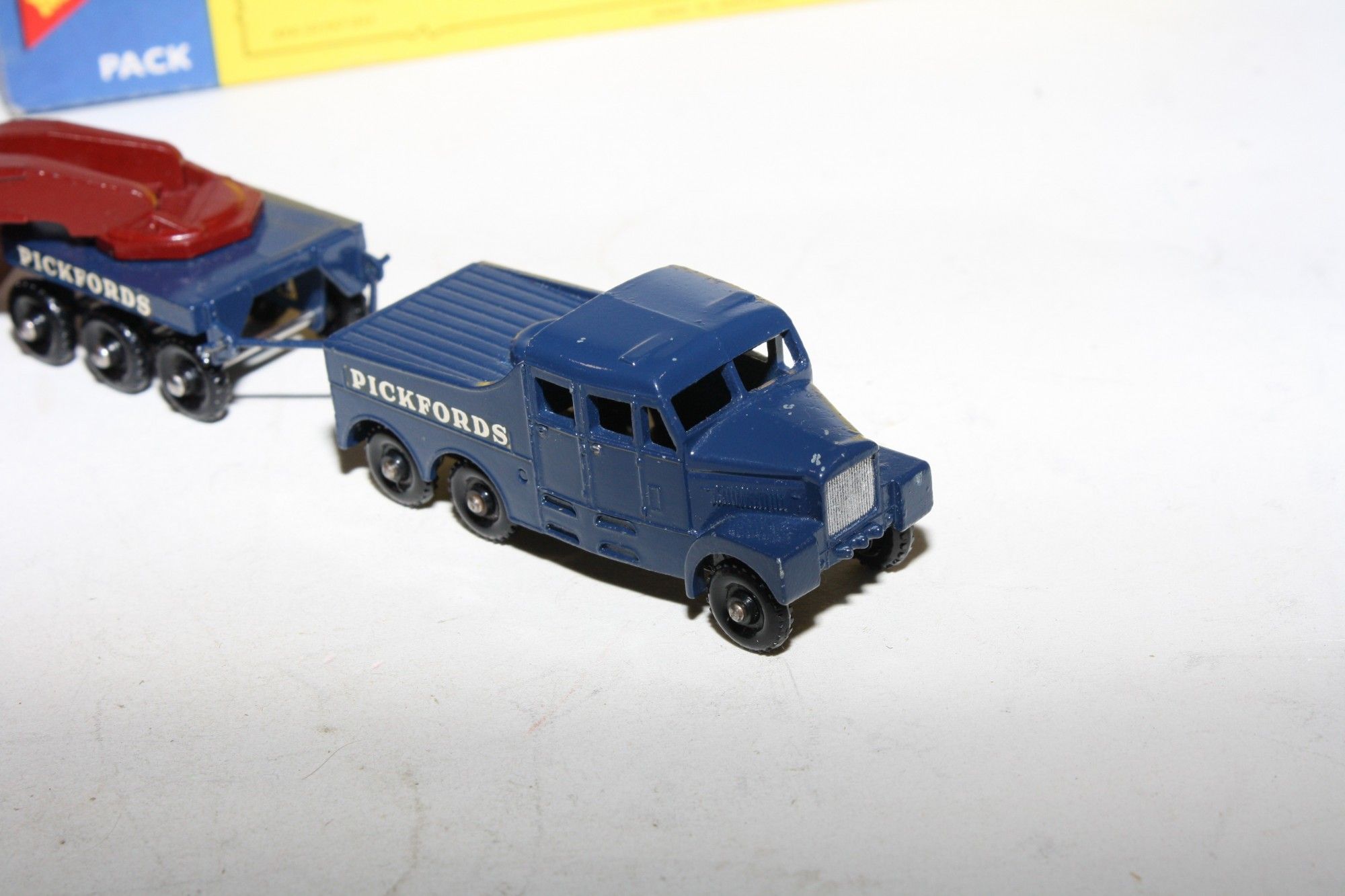 A superb example of this early 1960's Matchbox Superfast model. Gleaming original blue and maroon paintwork is near mint with just a few small nicks, all complete and original, please study the photos for exact condition. KBPW all excellent and free rolling, correct wire drawbar, excellent Pickfords livery.