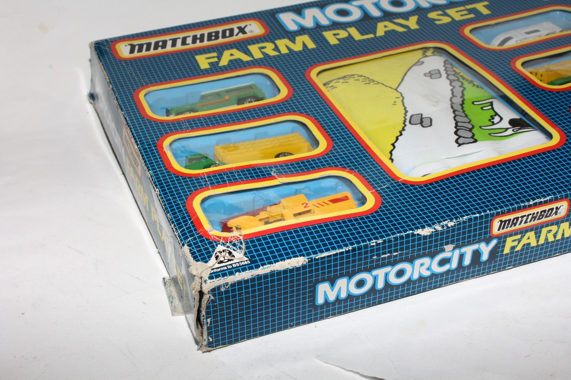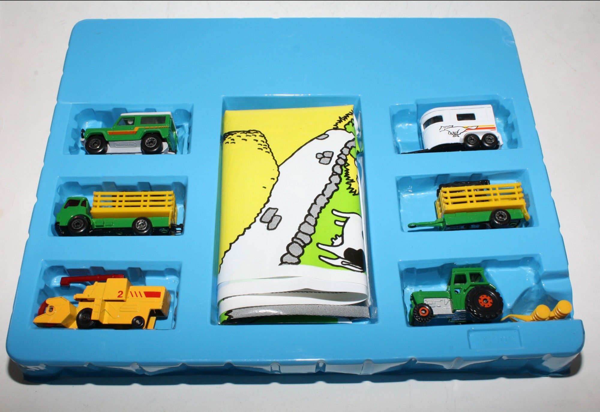 A nice example of this harder to find Matchbox farming giftset, all complete with playmat, models appear unused and mint. Animals still on sprues. Please study the photos for exact condition.