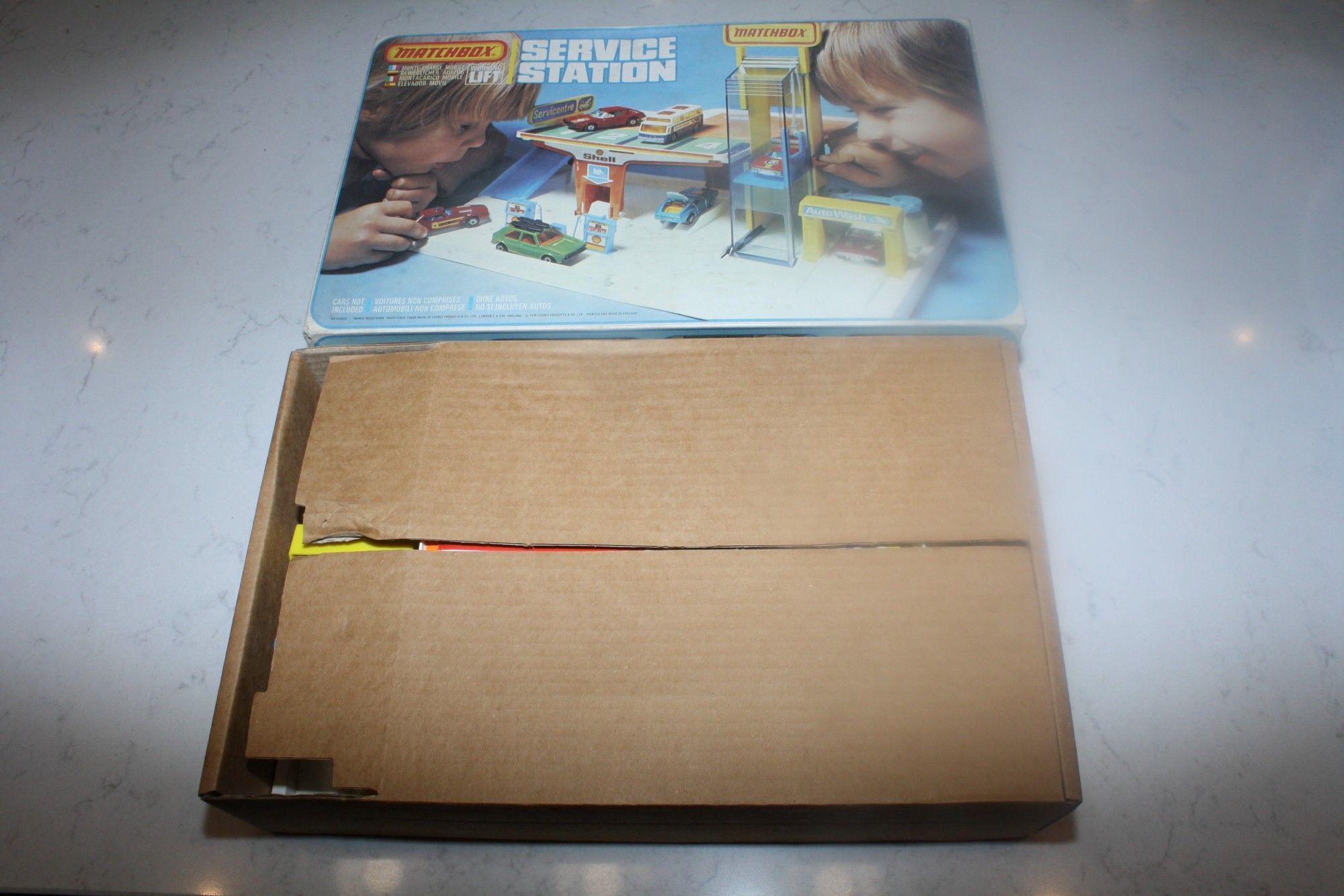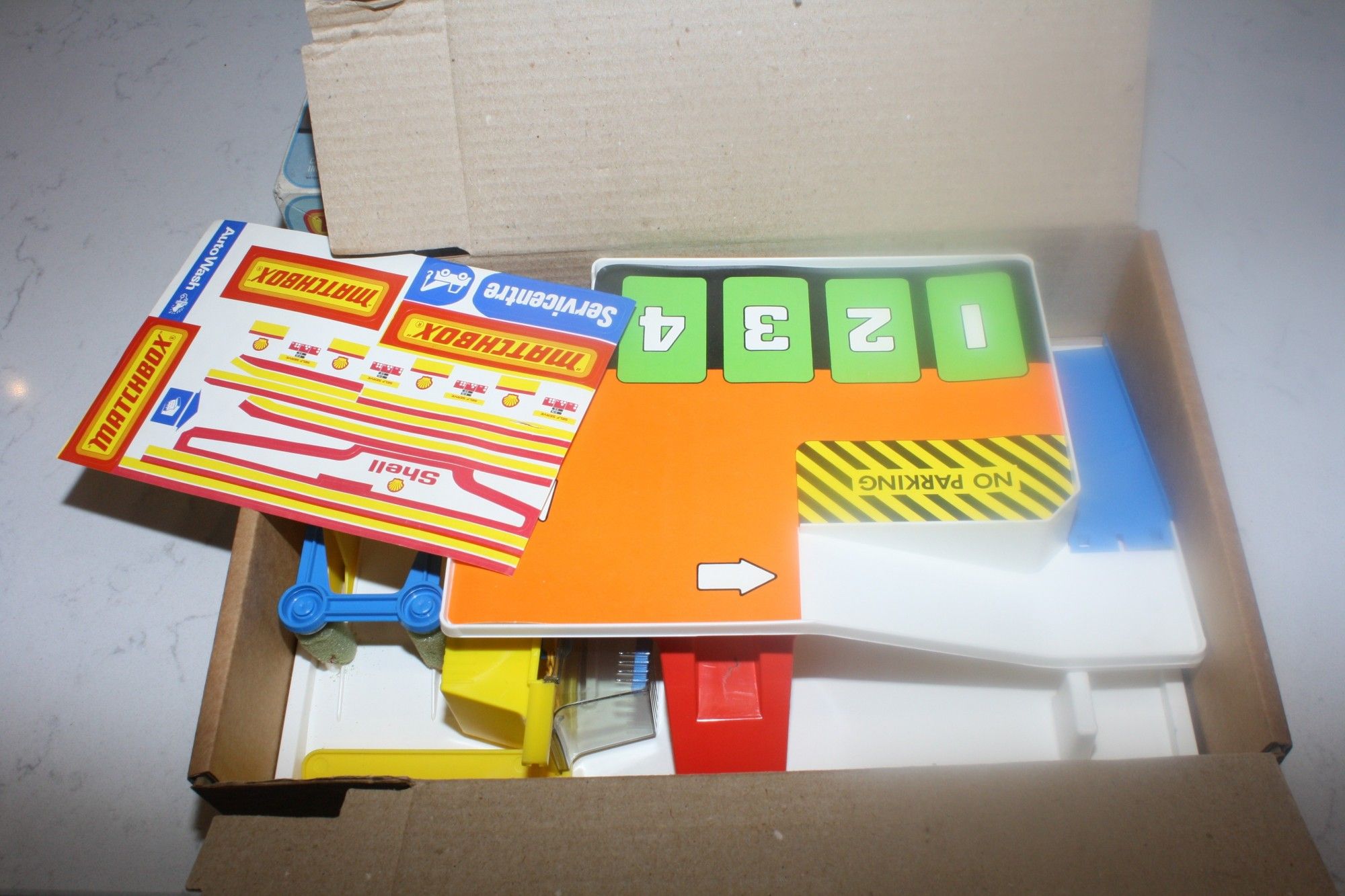 A superb example of this 1970's Matchbox Service station in mint condition, all complete with all parts present and never used. Complete and unused livery and accessories sticker sheet in perfect condition. Please study the photos for exact condition.