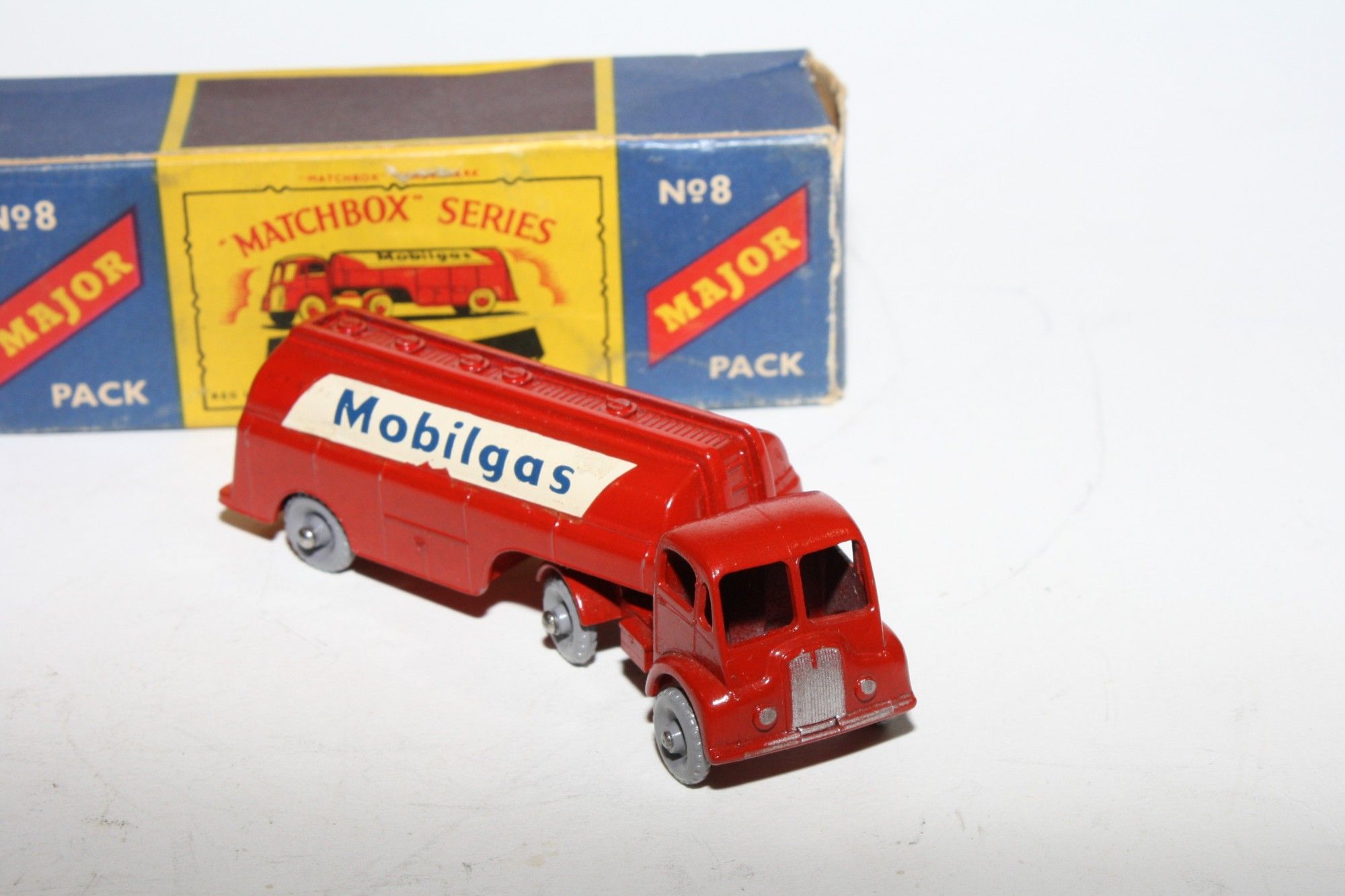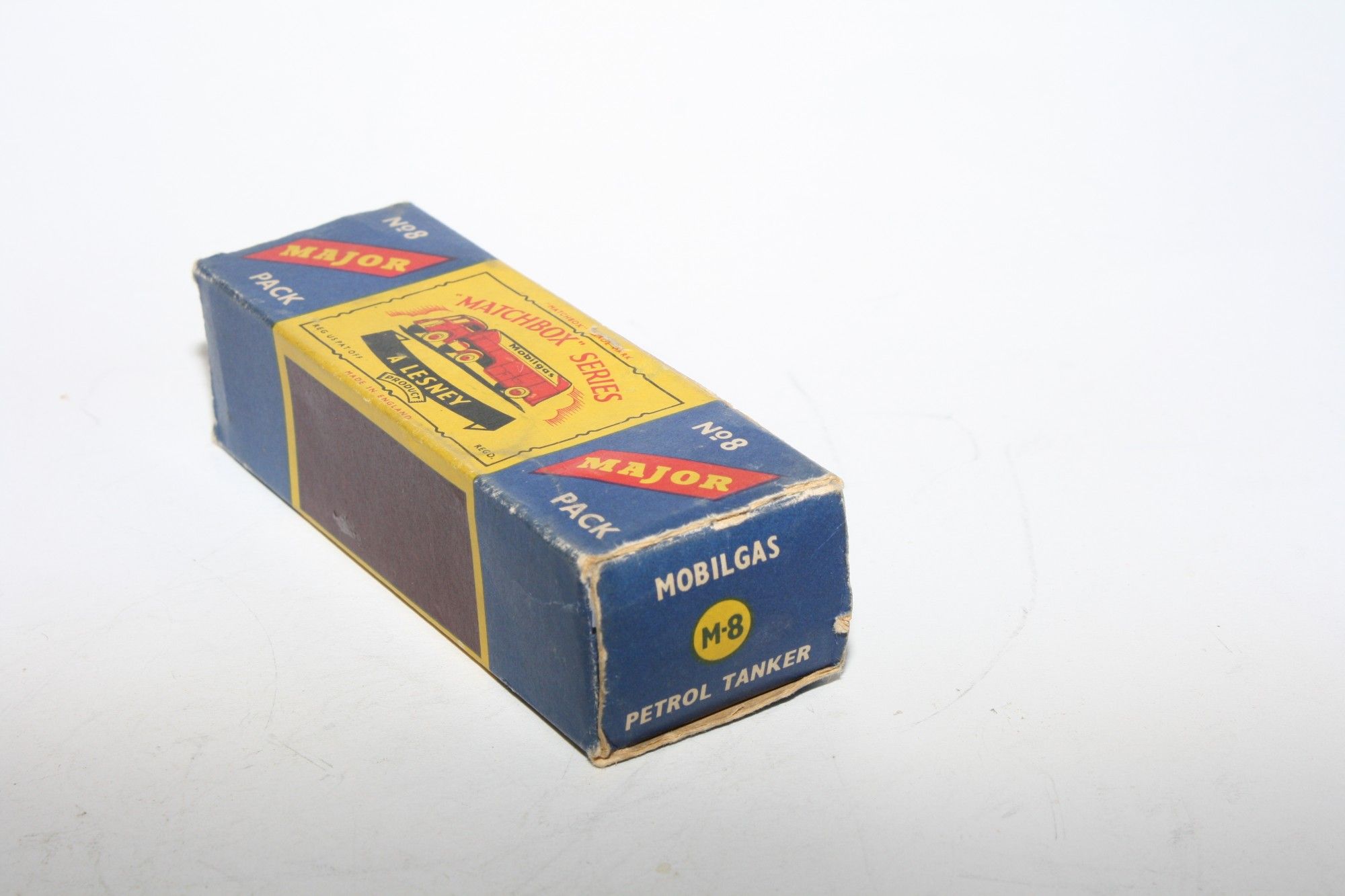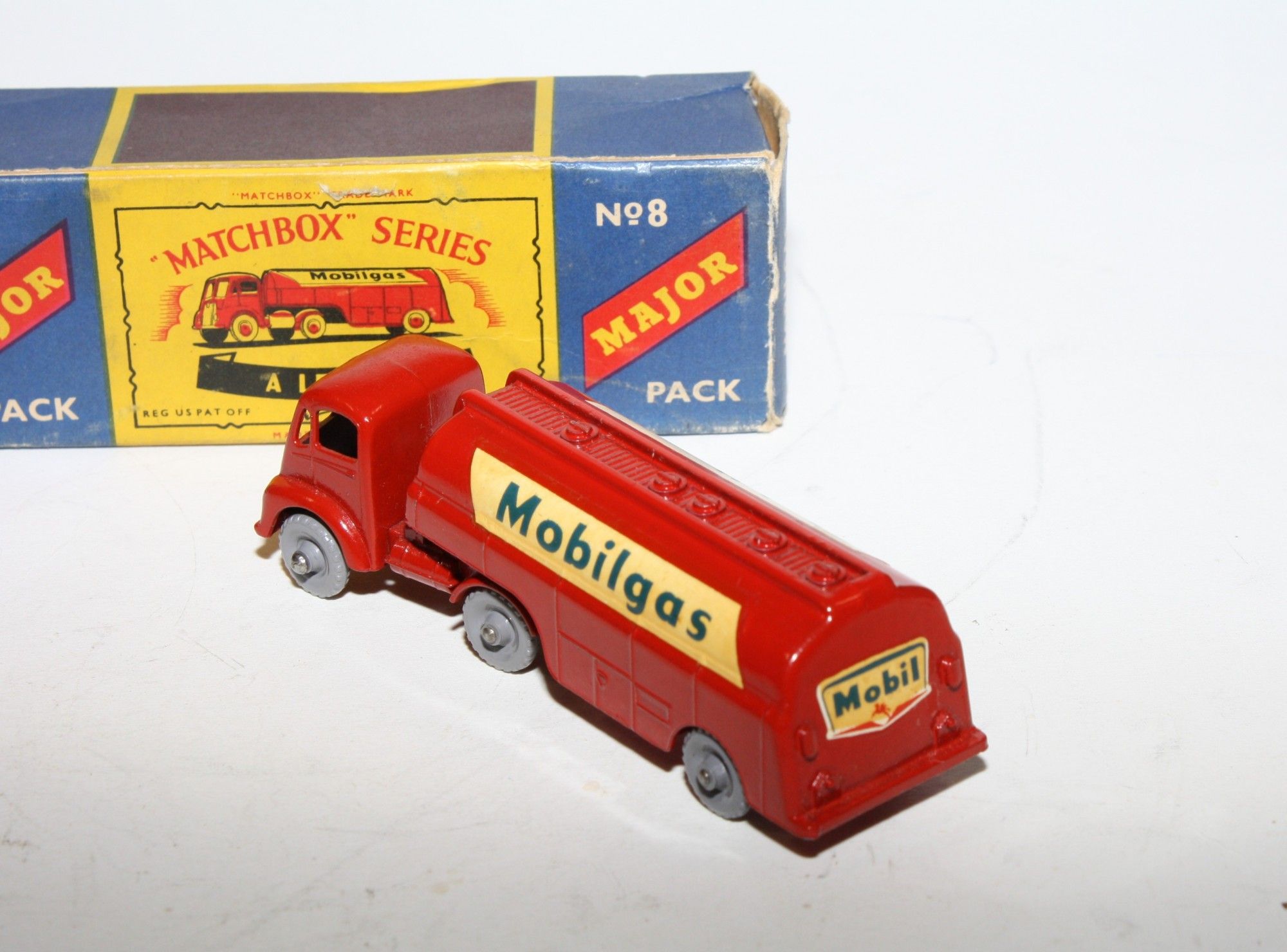 A lovely example of this early 1960's Matchbox model. Gleaming original blue red paintwork is mont, please study the photos for exact condition. KGPW are perfect, all free rolling, good original Mobilgas livery decals, slight loss to one and the other with some discolouration. Mint underside