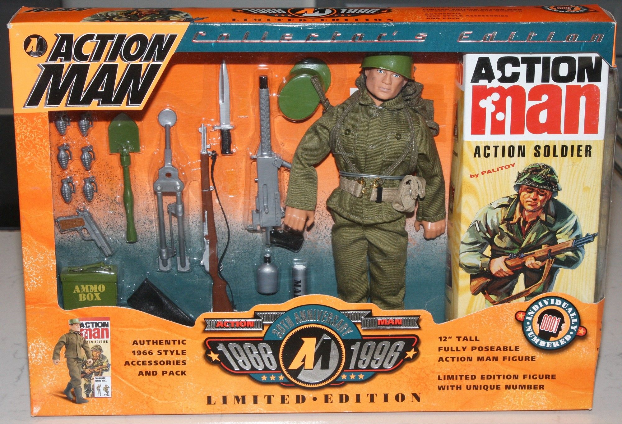 A mint example of this lovely Action Man Action Soldier Collectors Limited Edition pack from 1996. Never opened in a superb original box. Please study the photos for exact condition.