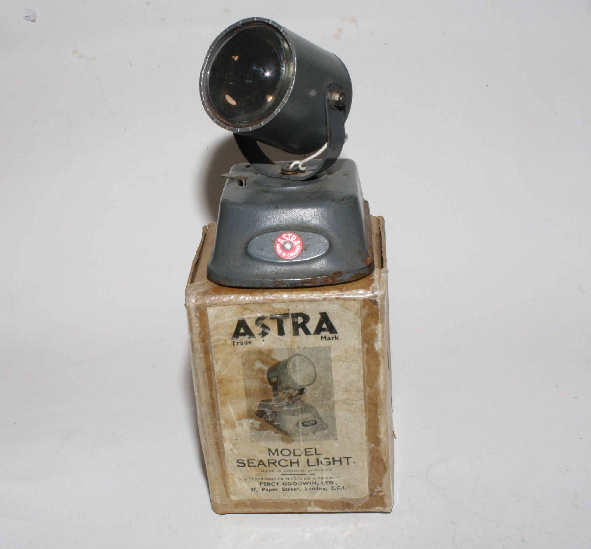 A nice example of this rare post war chunky 750gram vintage military searchlight model. Astra Pharos were in direct competition with Britains and therefore are quite similar.Model appears complete and in good condition. Original grey paintwork is excellent. Rotating action all fine. Search light is all intact but I have not tried to get it to working. It will probably need some attention, these old models often do after 70/80 years. Please study the photos for exact condition