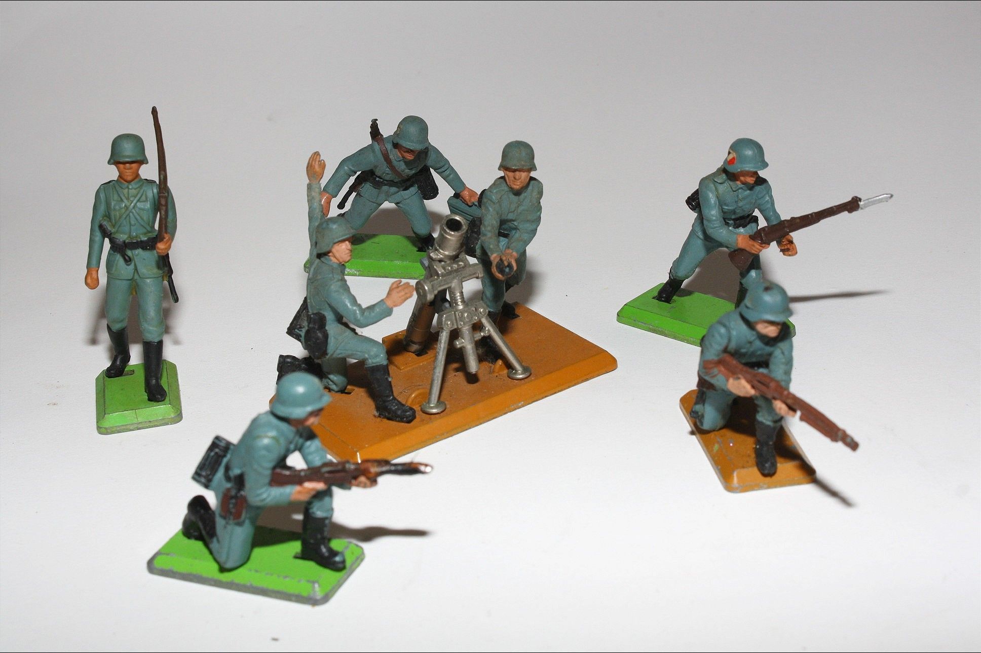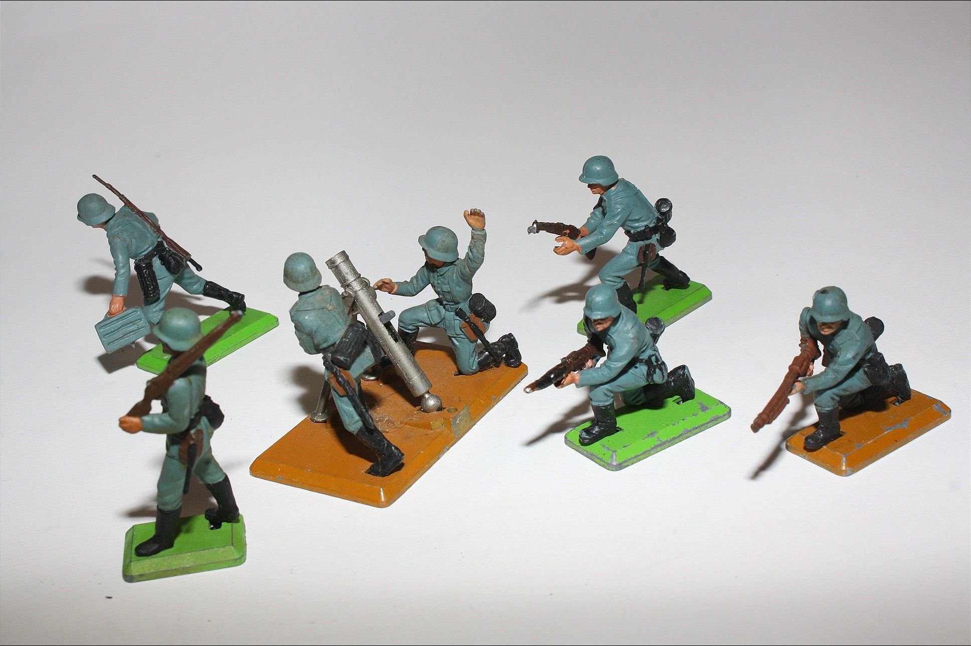 A good group of WWll German soldiers and a two man Mortar team. Please study the photos for exact condition.