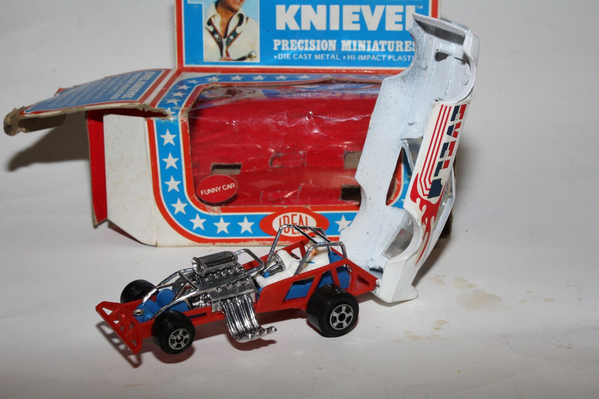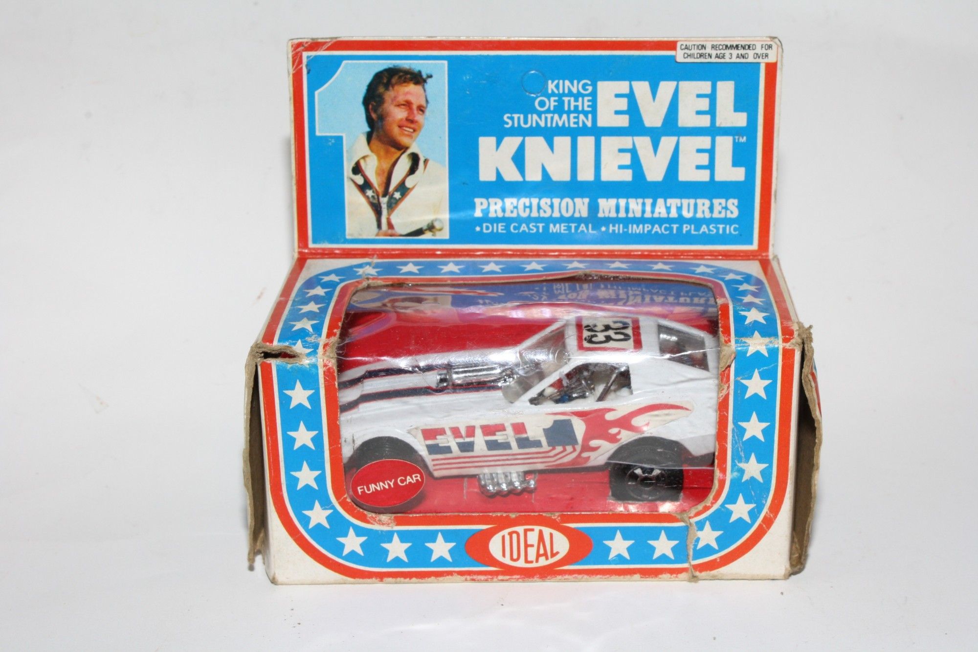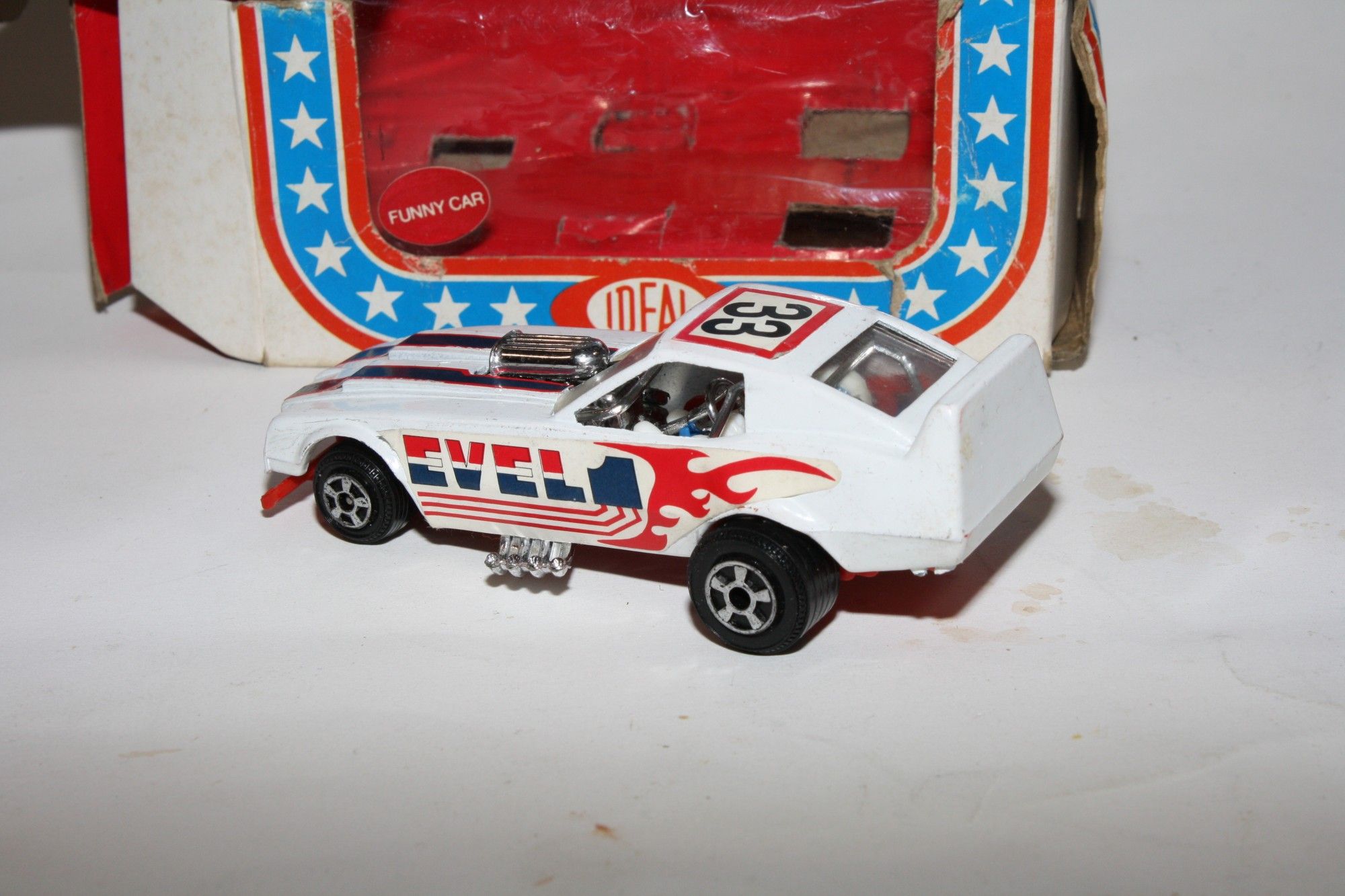 A superb example of this rare 1976 Evel Knievel related model. Gleaming original white is very near mint, please study the photos for exact condition. Original stickers are very good.