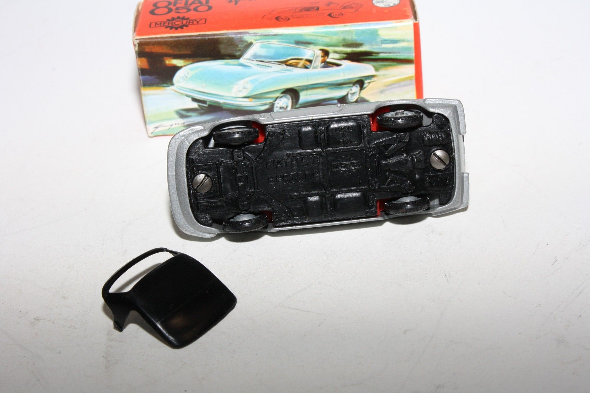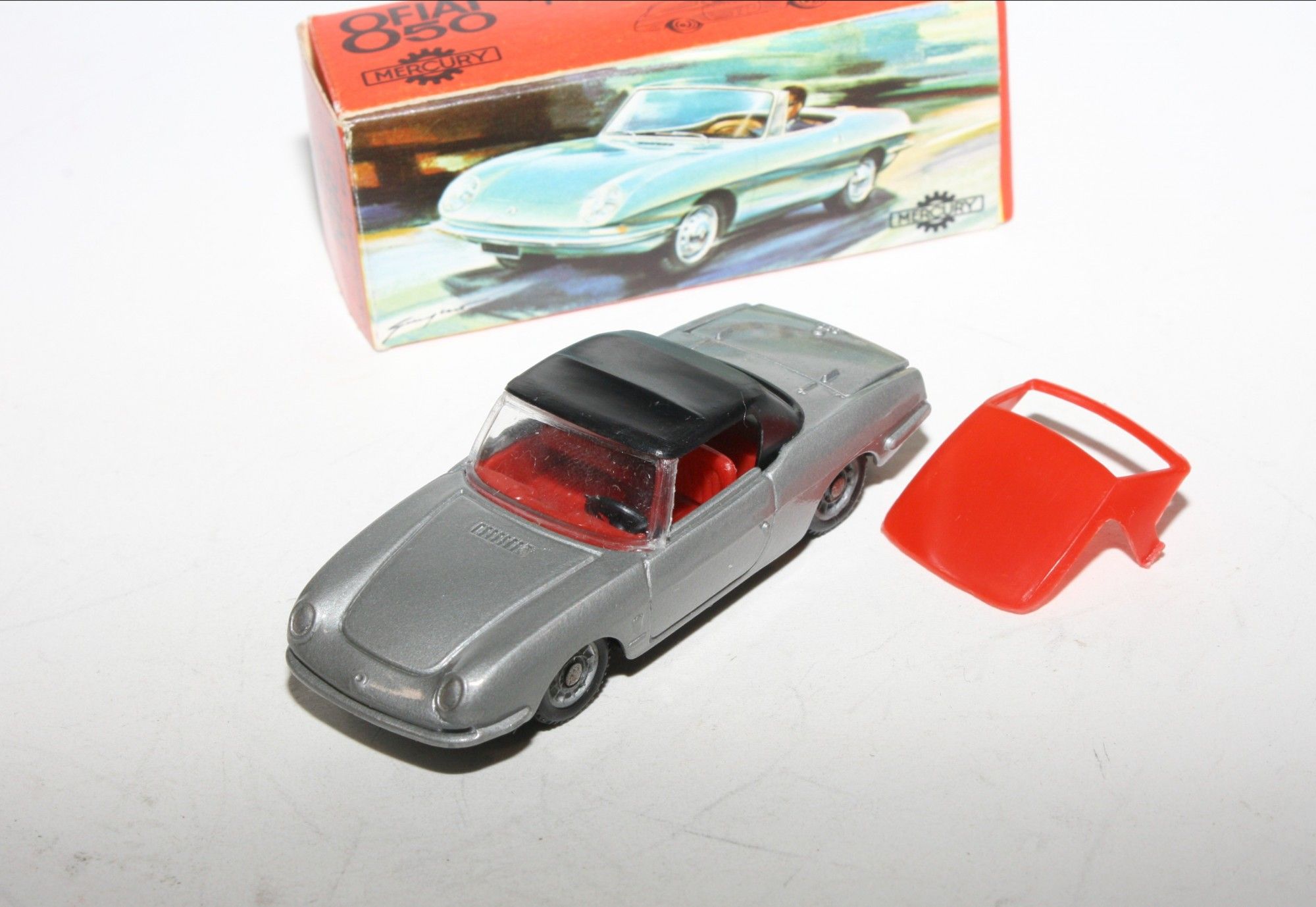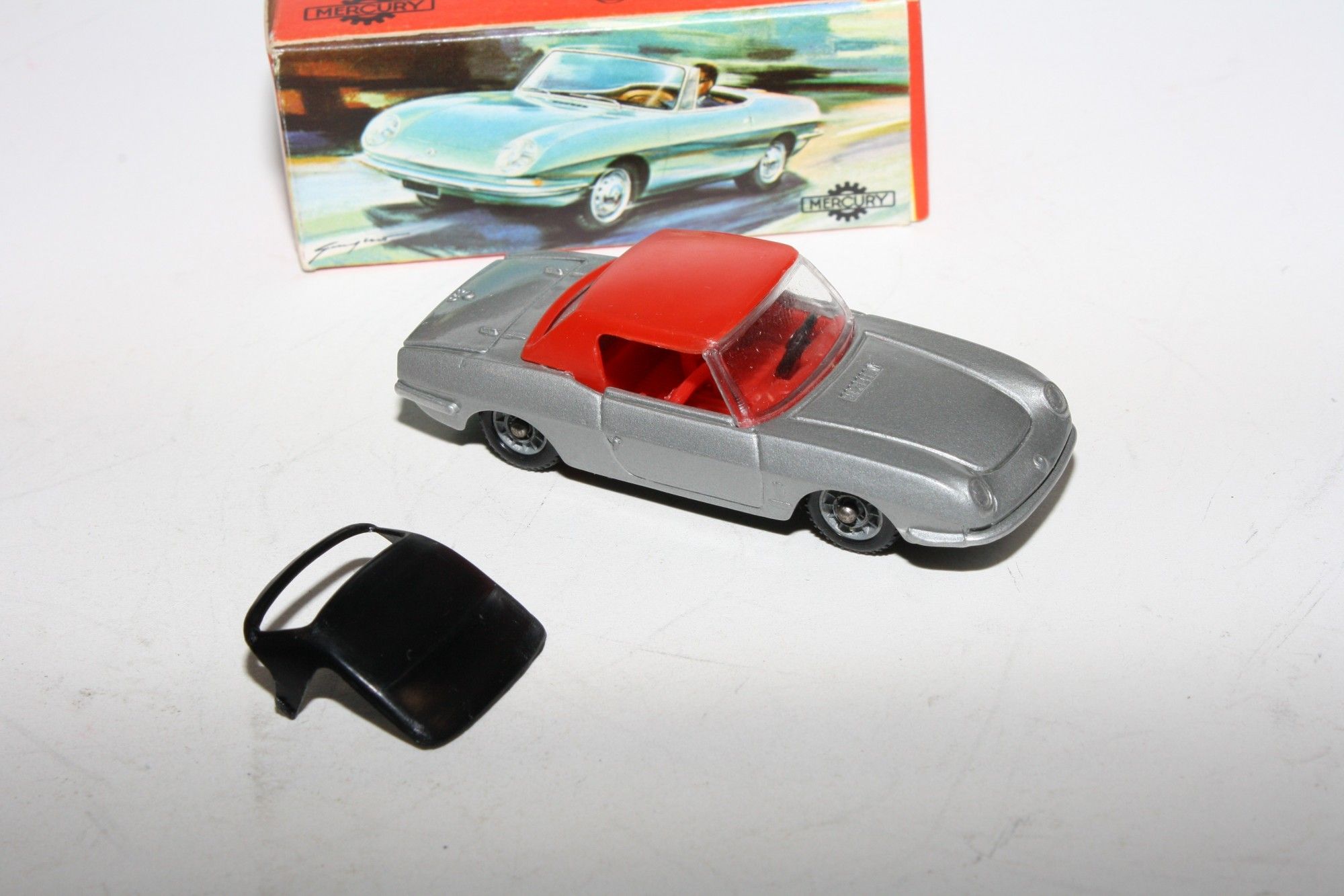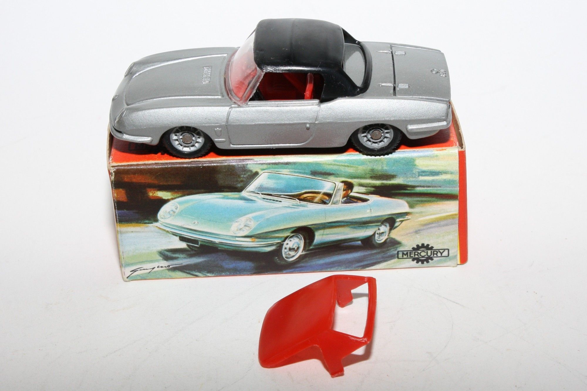 A superb example of this very hard to find Mercury model. Part of a lovely collection recently acquired from a client in Northern Italy, never used. Gleaming silver paintwork is pristine, please study the photos for exact condition. Cast hubs with perfect original tyres, strong suspension, crystal clear windscreen, red interior, both red and black removable soft tops present and perfect, mint underside, must be one of the best available.