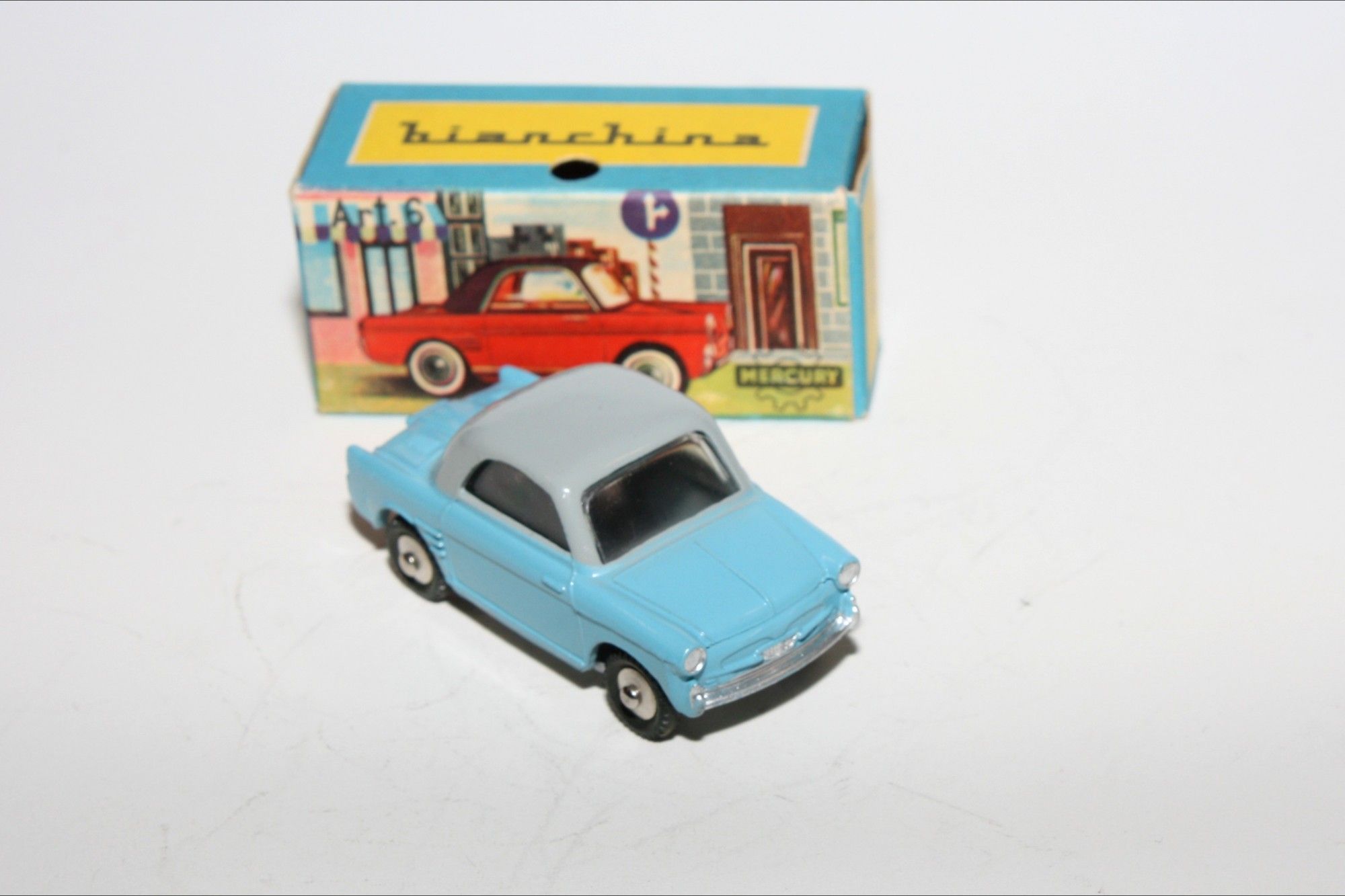 A superb example of this very hard to find Mercury model. Part of a lovely collection recently acquired from a client in Northern Italy, never used. Gleaming rarer colour combination grey roof over blue is mint , please study the photos for exact condition. Shiny spun hubs with perfect original tyres, excellent windows, baseplate mint. Hard to find an original example in this condition.