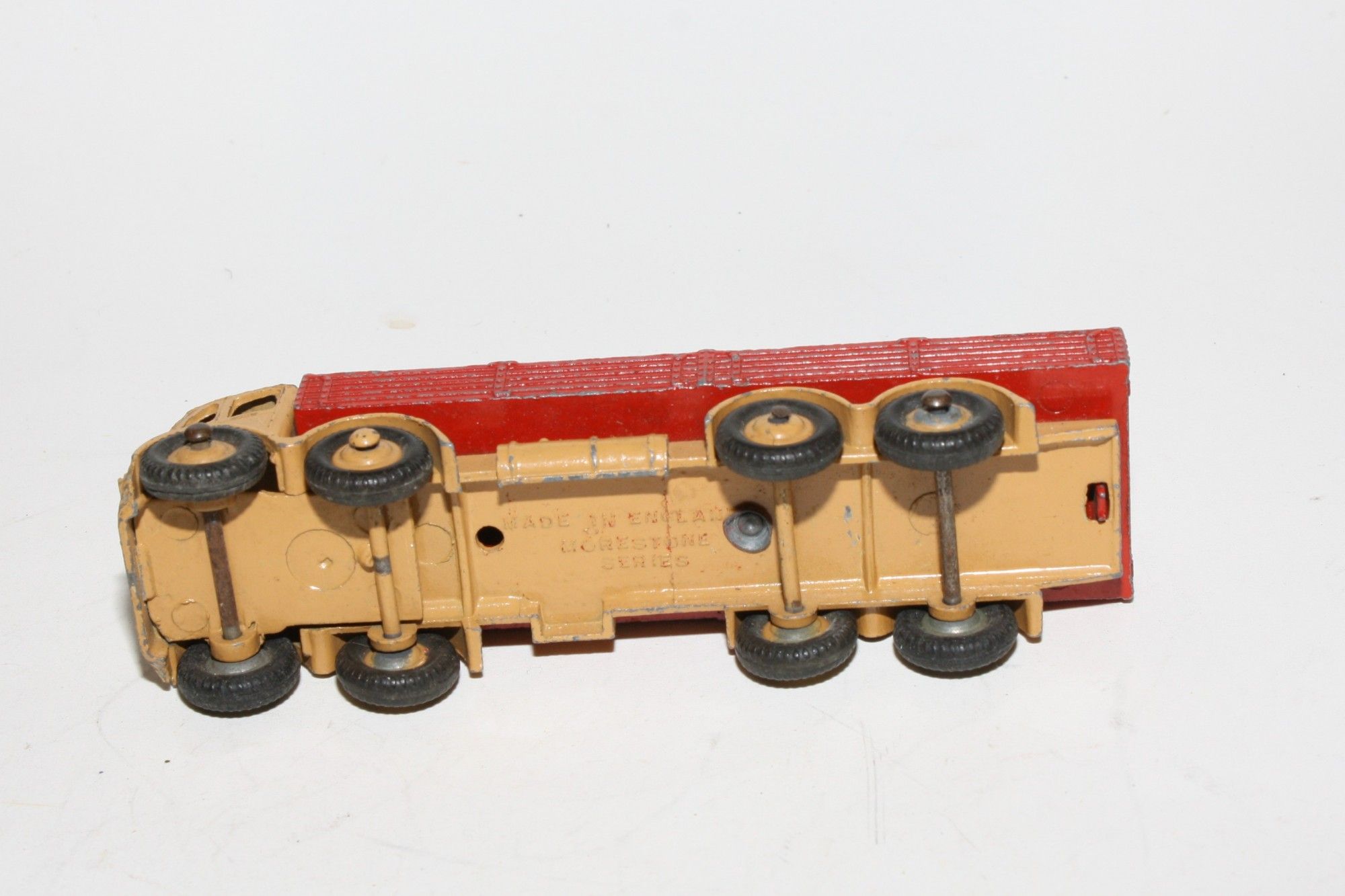 A very good example of this 1950's model by Morestone before it became Budgie. Hard to find, in good original paint in lightly playworn condition, please study the photos for exact condition. Free rolling cast hubs with good original tyres and straight axles. Good underside.