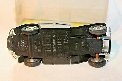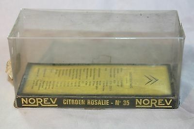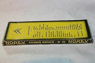 Norev Original Vintage Citroen Rosalie 1:43 ,Series D # 35 Manufactured 1959-1965 A very scarce example of this early 1960's model from Norev. Excellent free rolling axels, good hubs/tyres, windows fine, would benefit from a light clean, number plates present base fine, good chrome, hard to find. Comes in its original presentation packing, good card base under good clear plastic top. both showing very slight wear. Please study the photos Any questions, please ask Happy to ship worldwide Combined postage a pleasure, please wait for invoice Please take a look at my other Norev and vintage toys