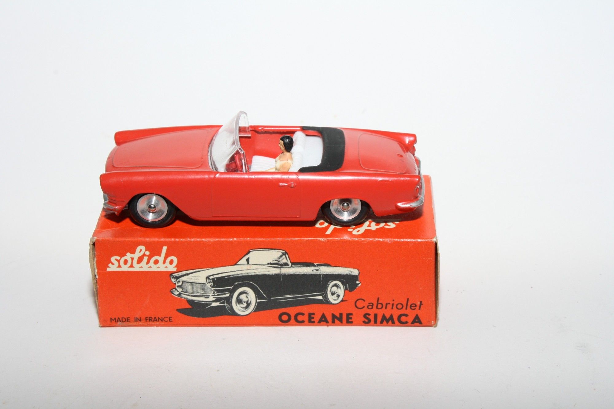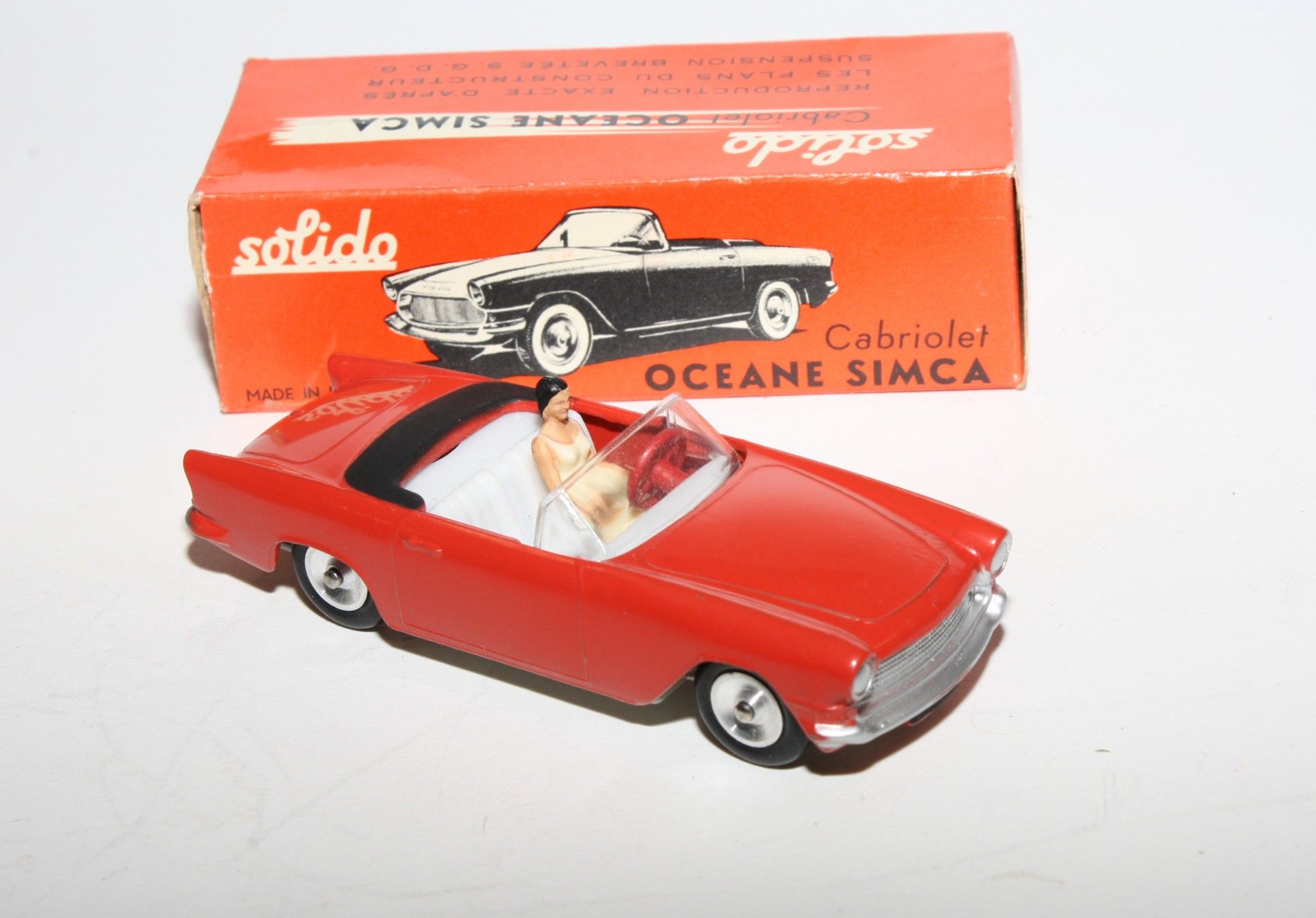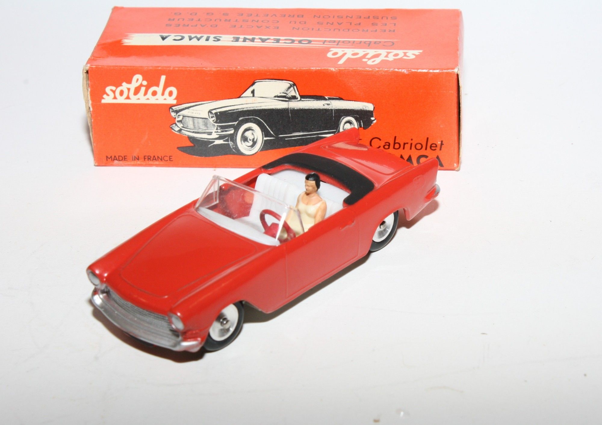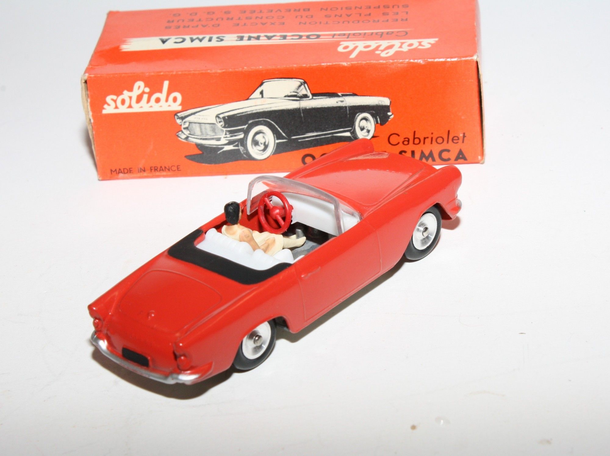 A superb example of this lovely harder to find 1960's Solido. Part of a lovely collection recently acquired from a client in Italy, Never used. Gleaming original red paintwork is virtually mint, please study the high resolution photos for exact condition. Perfect original tyres on spun hubs, free rolling axles,strong suspension, perfect windscreen, white interior, female figure, mint baseplate. Must be one of the best available