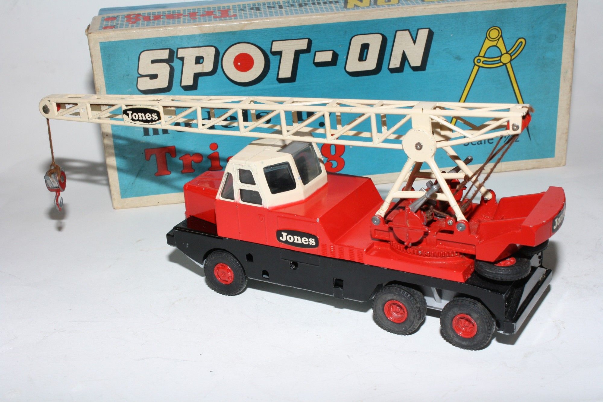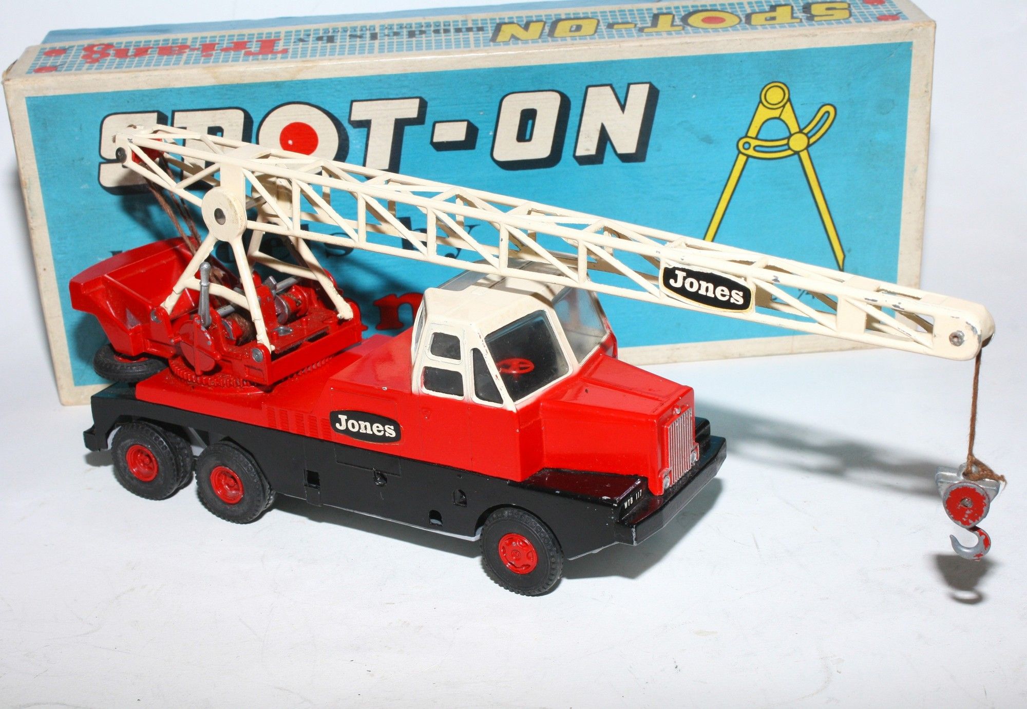 A superb example of this vintage Spot On model. Original paintwork is near mint with a few small nicks, please study the photos for exact condition. Good original tyres on red hubs. Cab glazing is good. Crane functions and ratchets work (original twin with a couple of knots). Excellent underside.