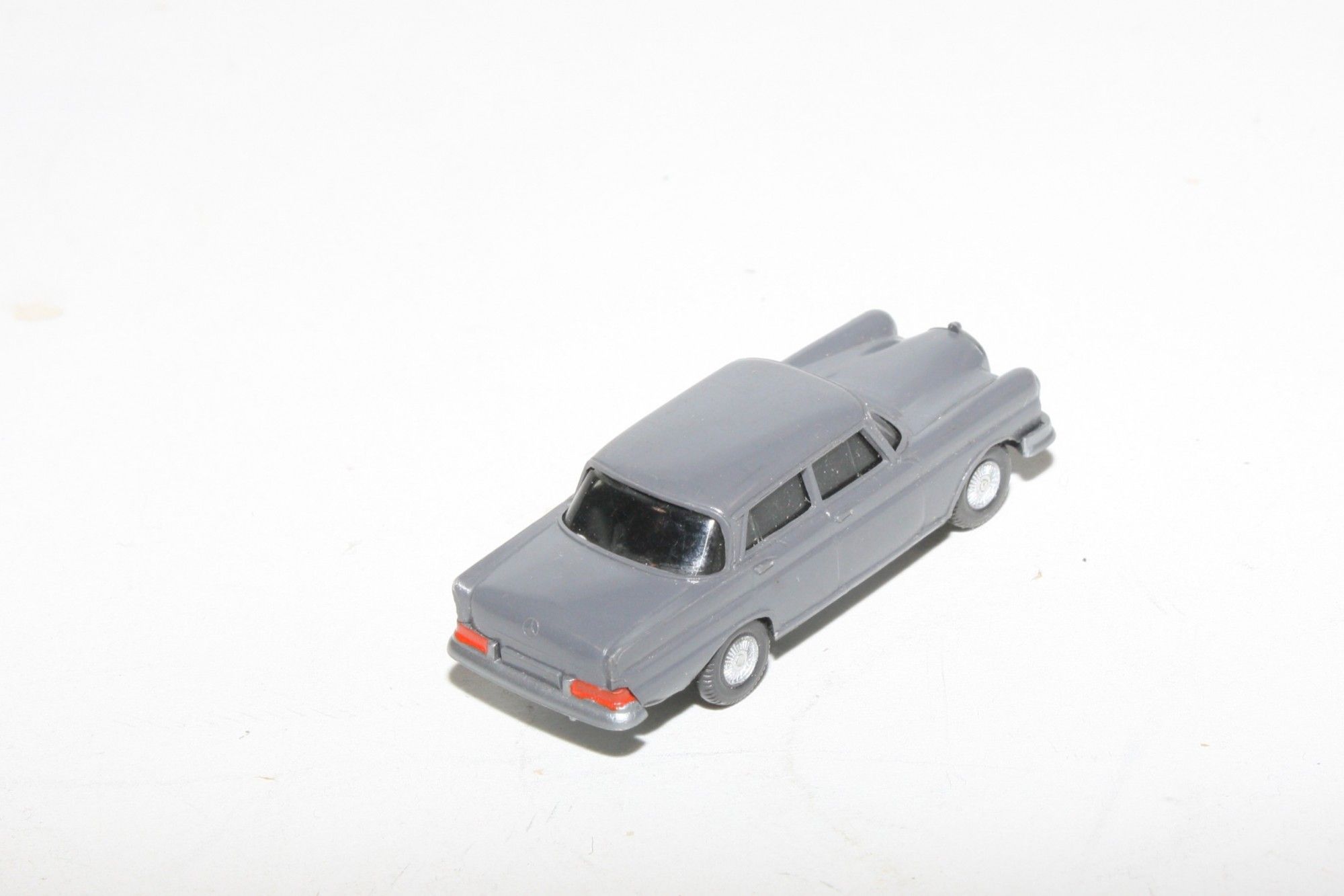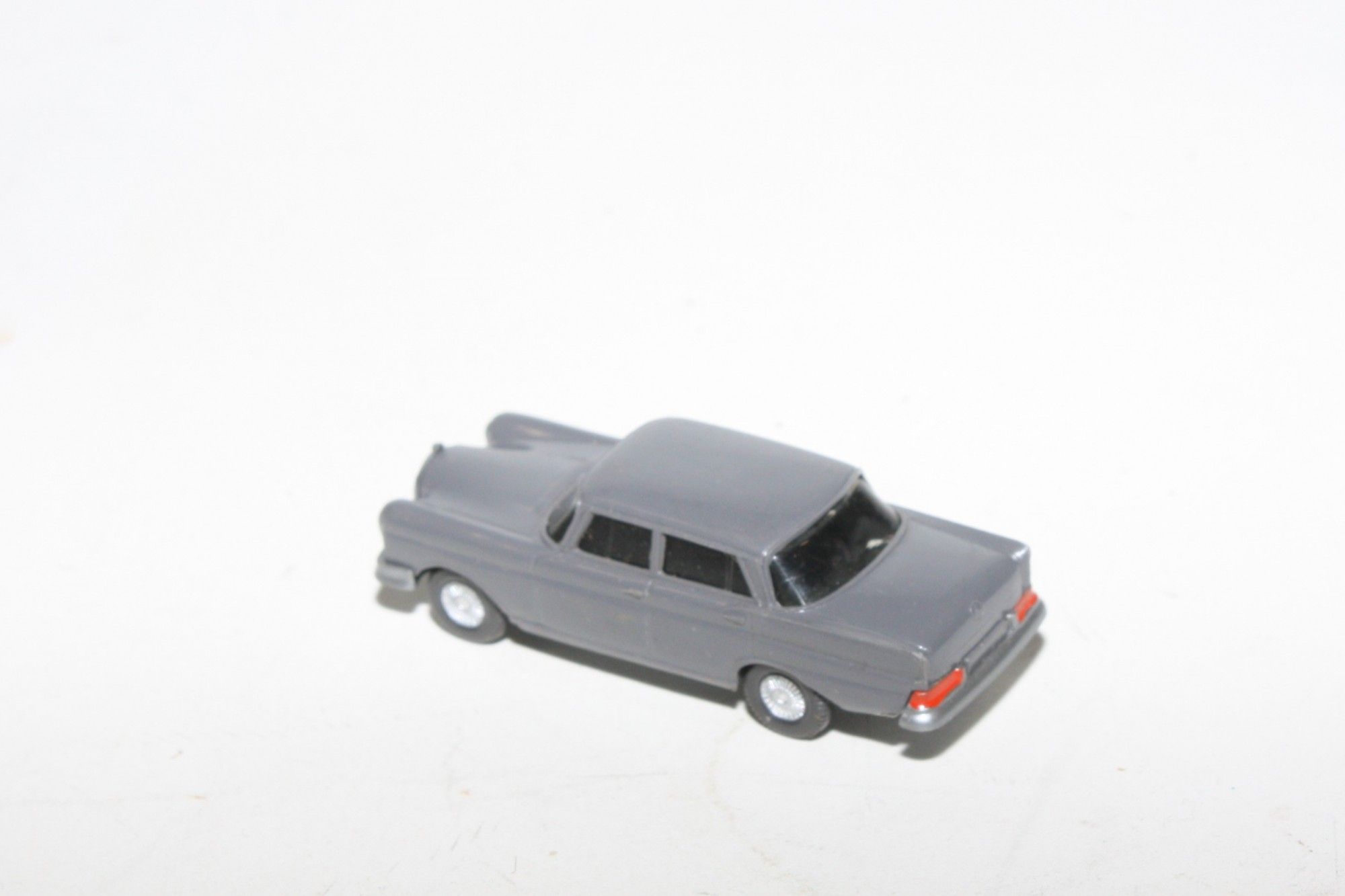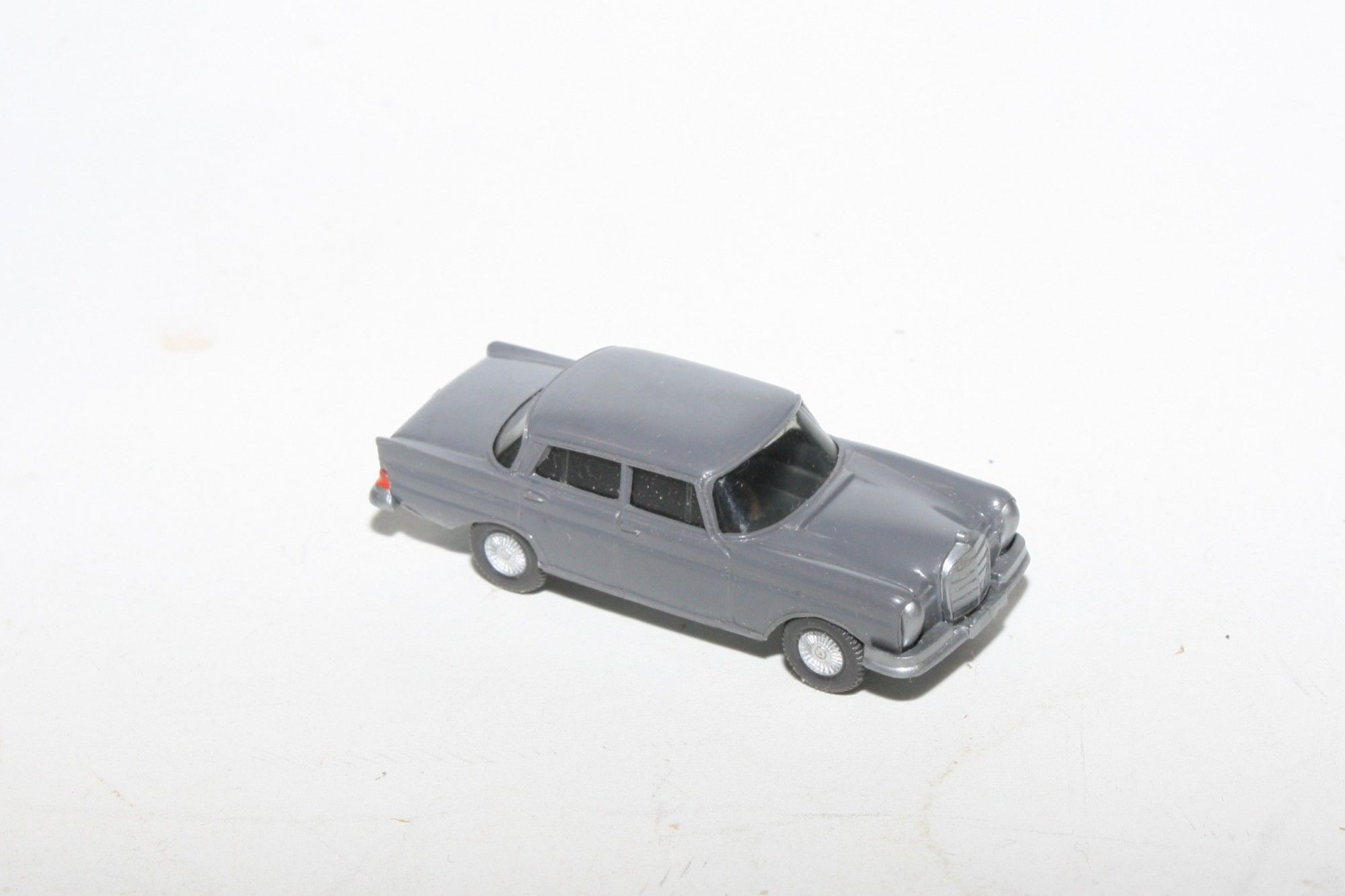 A superb example of this Wiking Mercedes 220 fin tail in mint condition. Made of plastic in Germany. This highly detailed model has free rolling axles, dark grey bodywork with silver grey base and crystal clear windows.