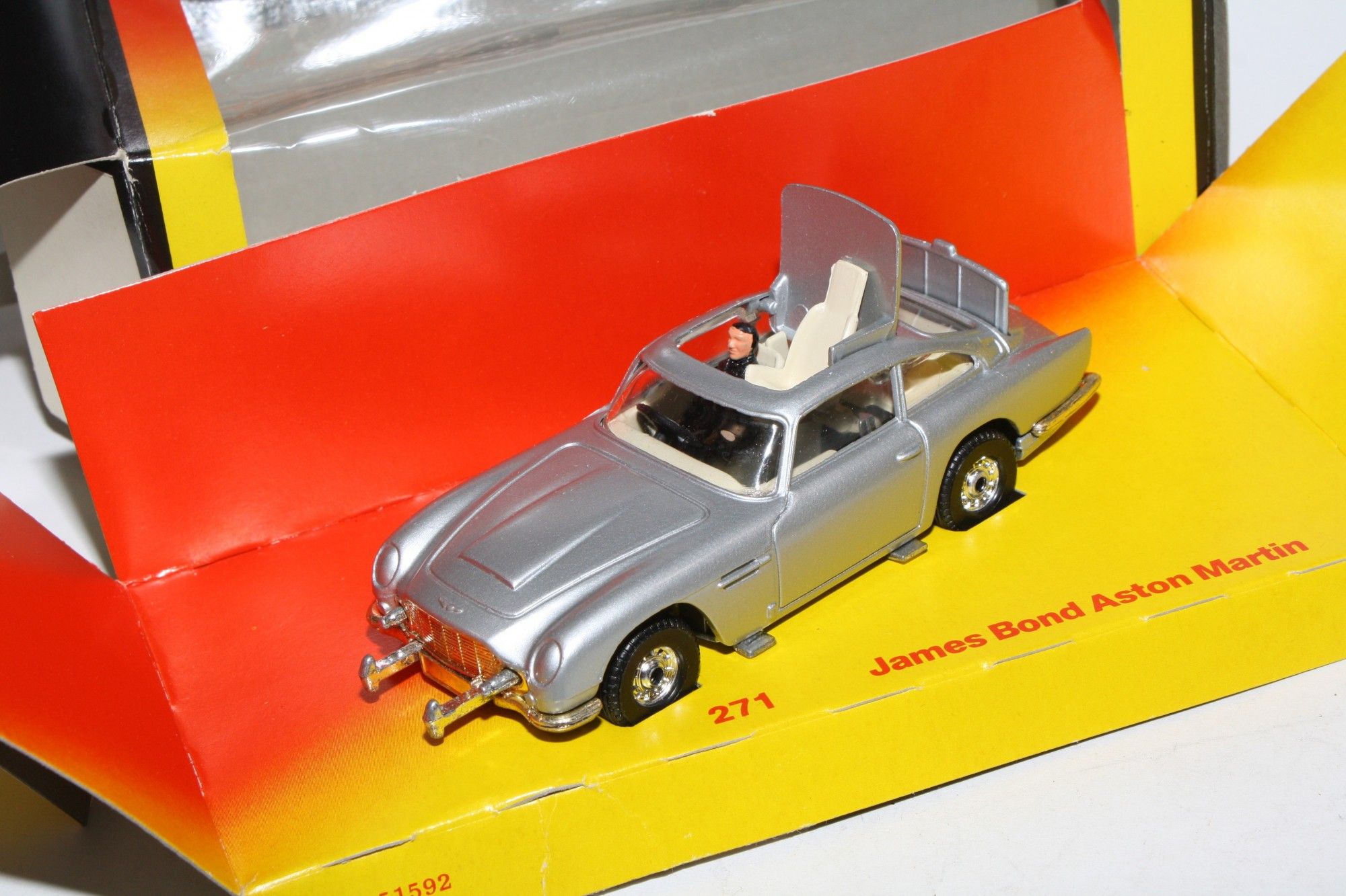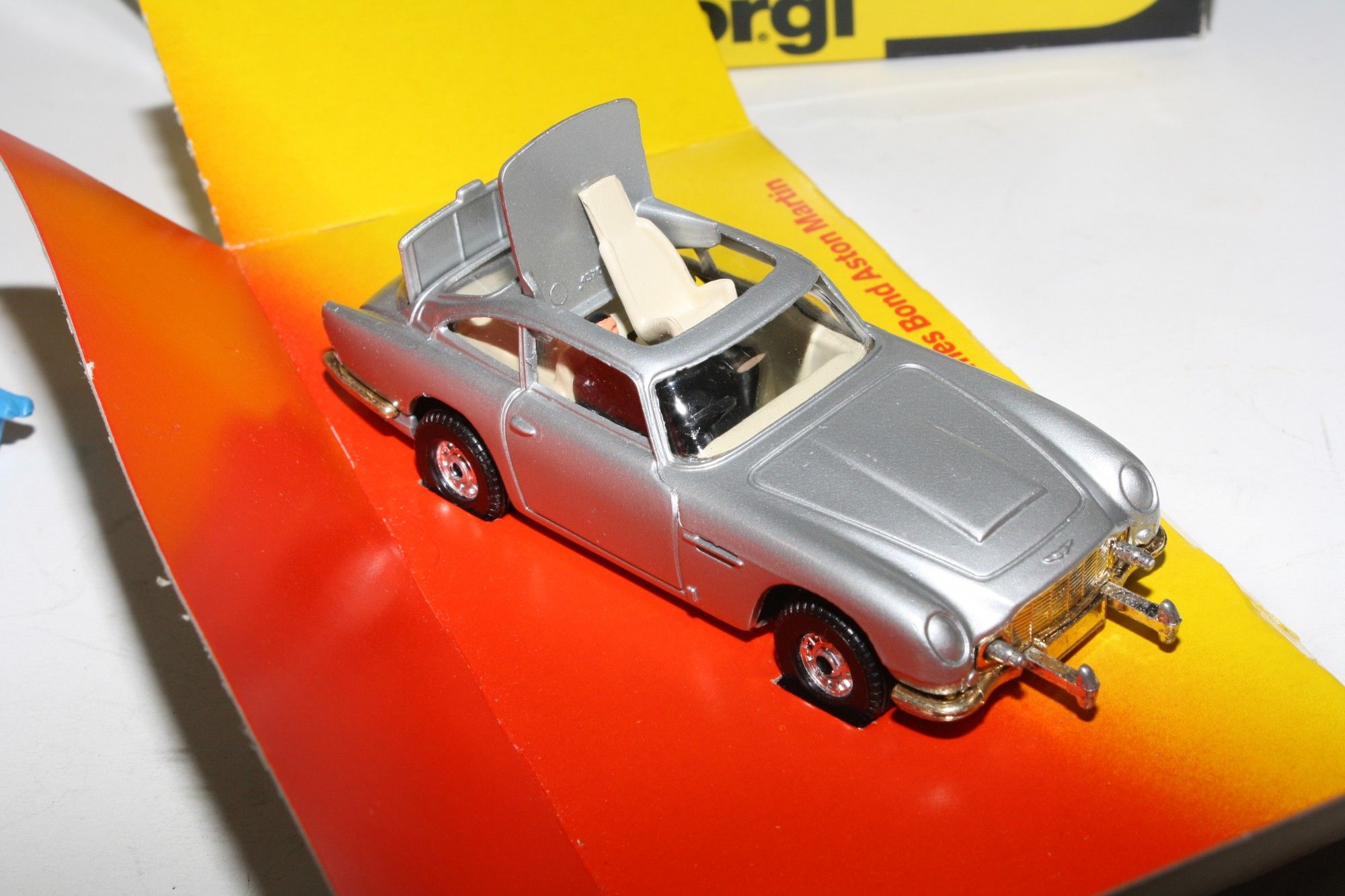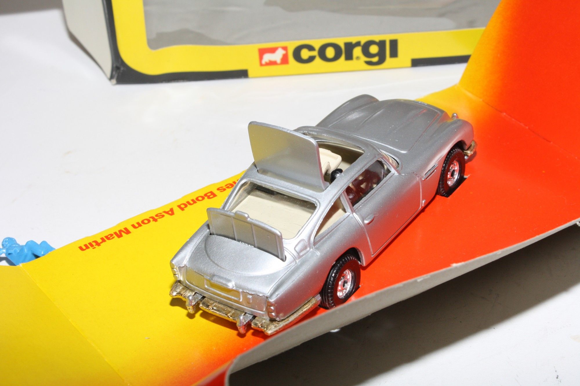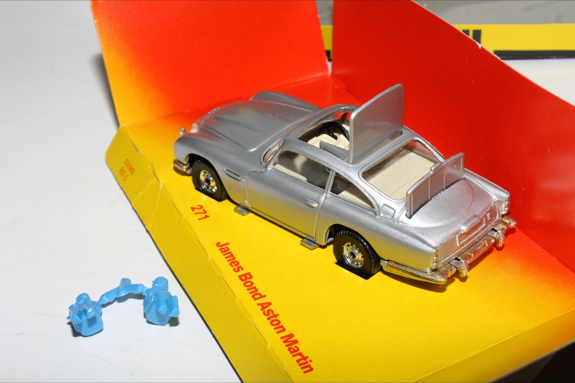 A superb example of this hard to find version 1:36 edition Corgi James Bond related model. Gleaming original flat silver paintwork is mint, please study the photos for exact condition. Original Whizzwheels, crystal clear windows, and very rare pale beige interior interior, machine gun and shield and ejector seat all work as they should. Mint underside. Comes with both original bandit figures both on sprue .