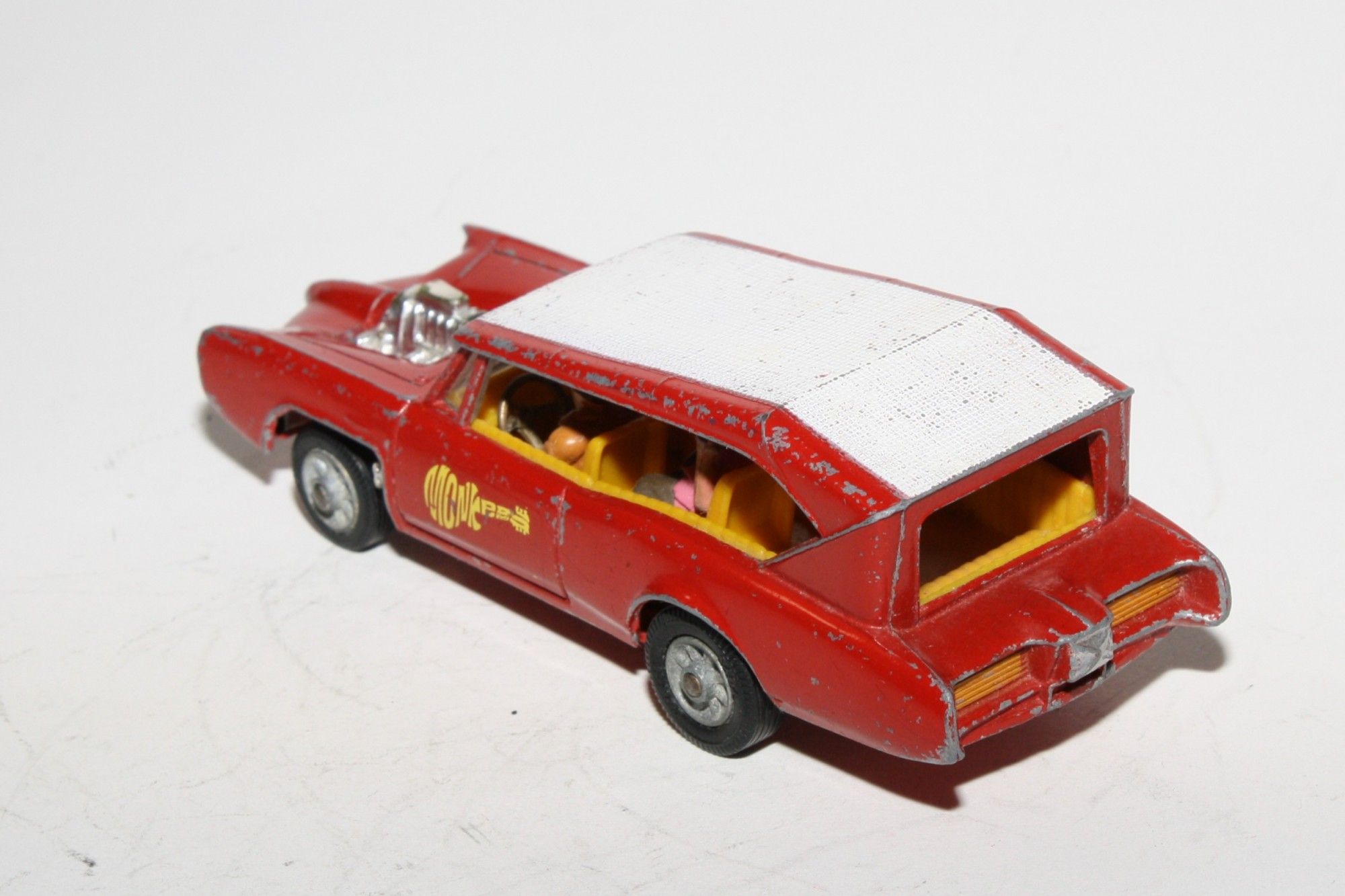 A good playworn example of this sort after 1960's Corgi model from the TV series "The Monkees". Ideal for restoration as all complete and with 3 x original figures , good tyres and suspension, windscreen intact and reasonable chrome and decals. Please study the photos for exact condition.