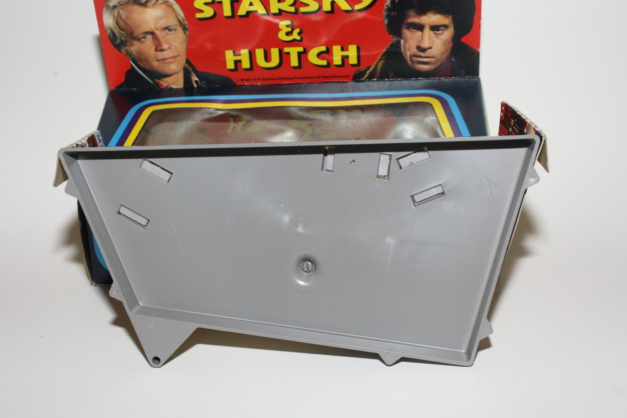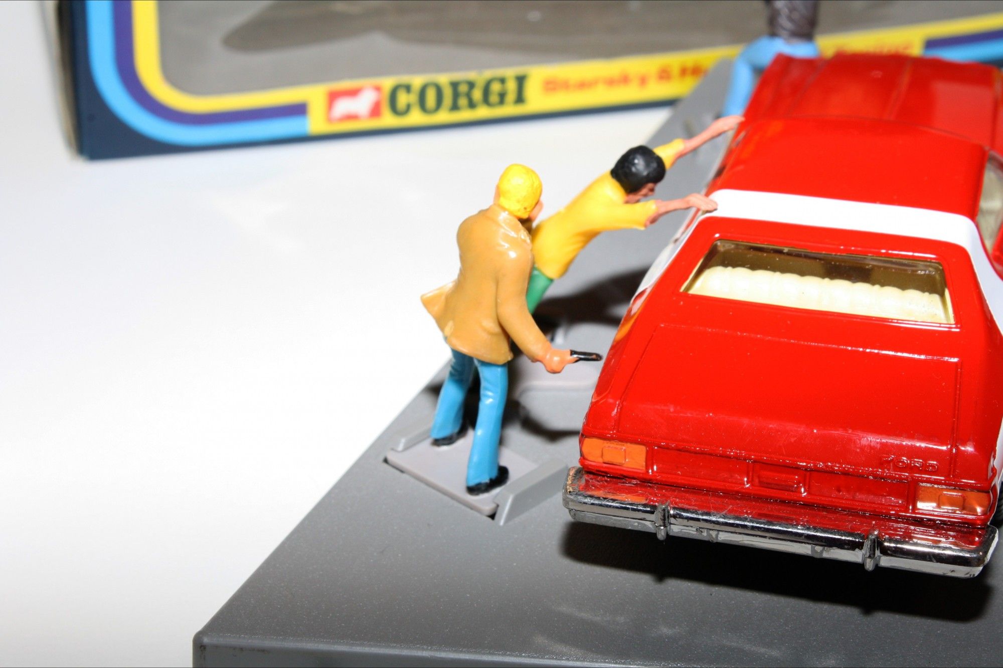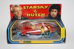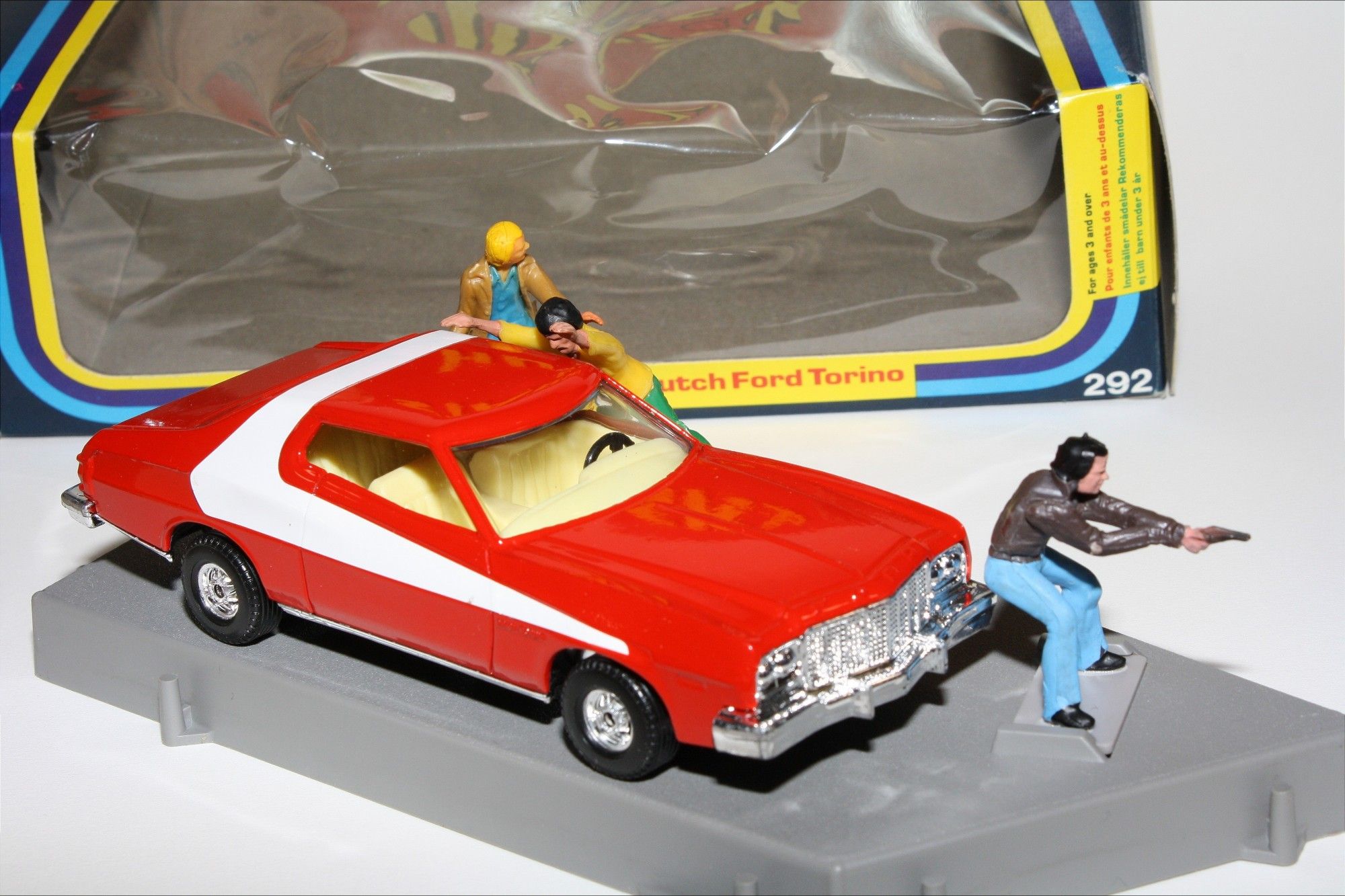 A superb example of this early issue Starsky & Hutch Torino. Gleaming red paintwork is mint and white flash sticker also perfect, please study the photos for exact condition. Perfect Whizzwheels, crystal clear windows with cream interior, good chrome, all original figures present and complete including both gun barrels (often missing). Getting harder to find in this condition.