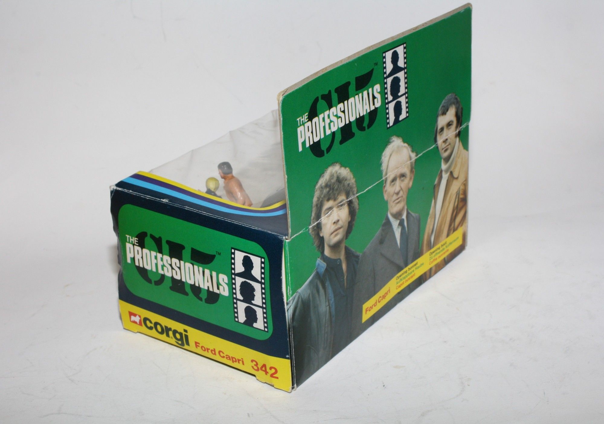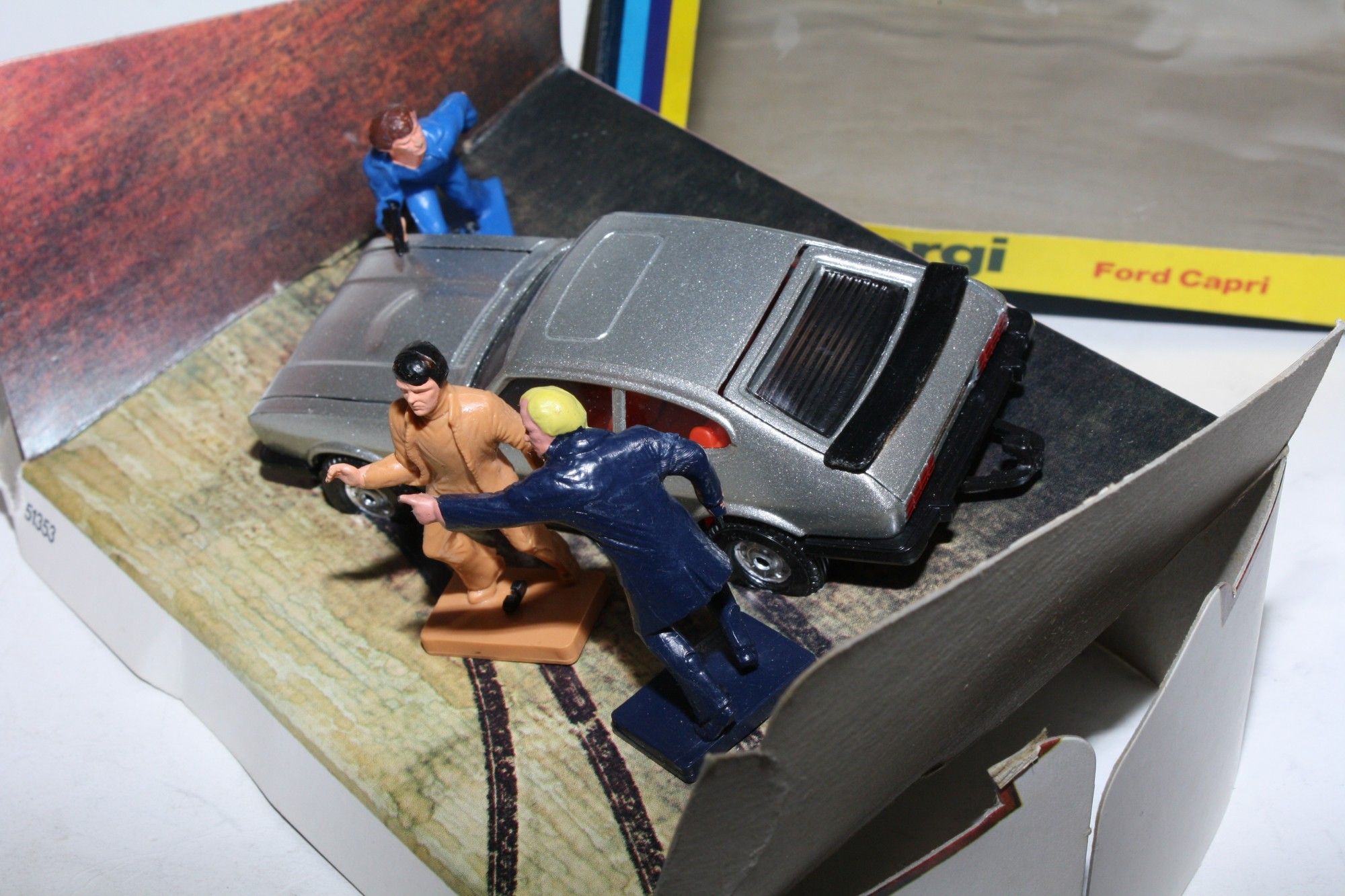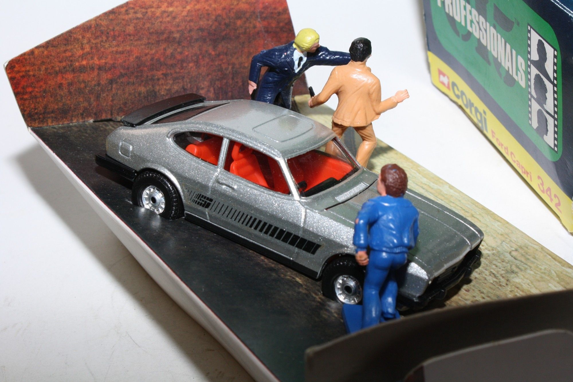 A superb example of this Corgi set from the TV series The Professionals. Gleaming original paint is mint, please study the photos for exact condition. Perfect wheels, crystal clear windows, red interior, mint decals, all three original Bodie, Doyle and Cowley figures are mint and attached to base with correct plastic retainers.